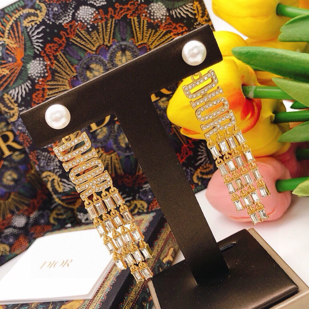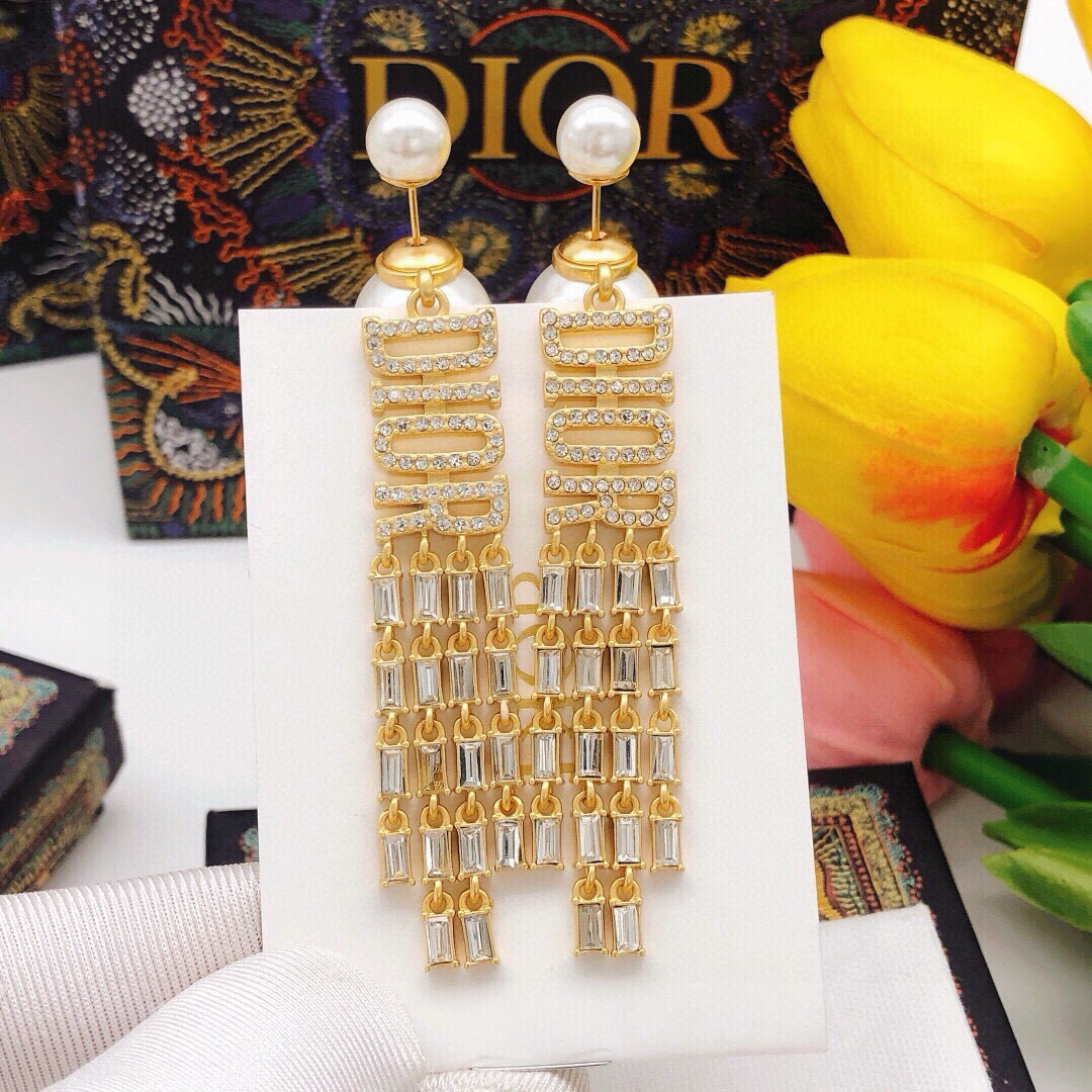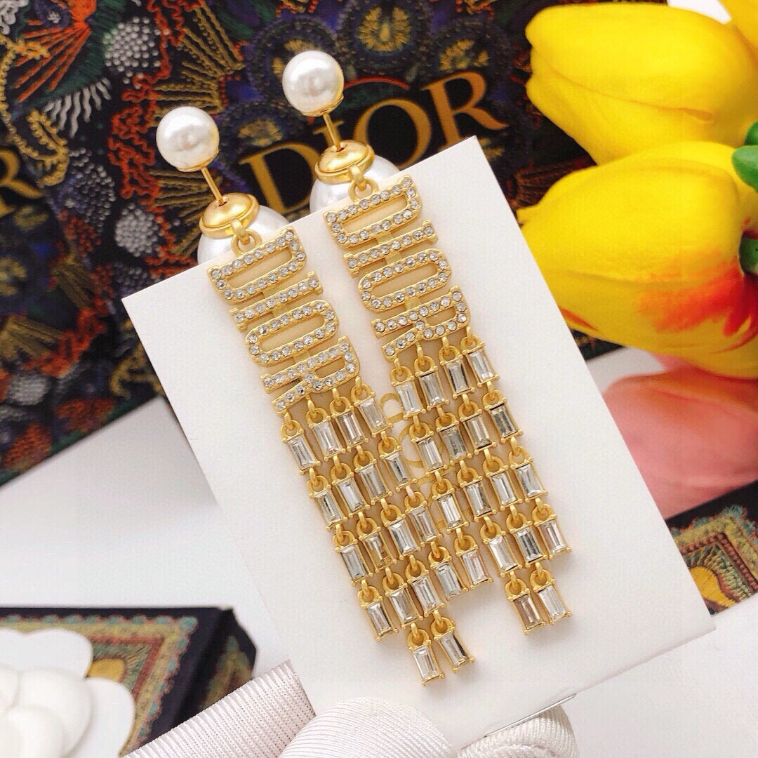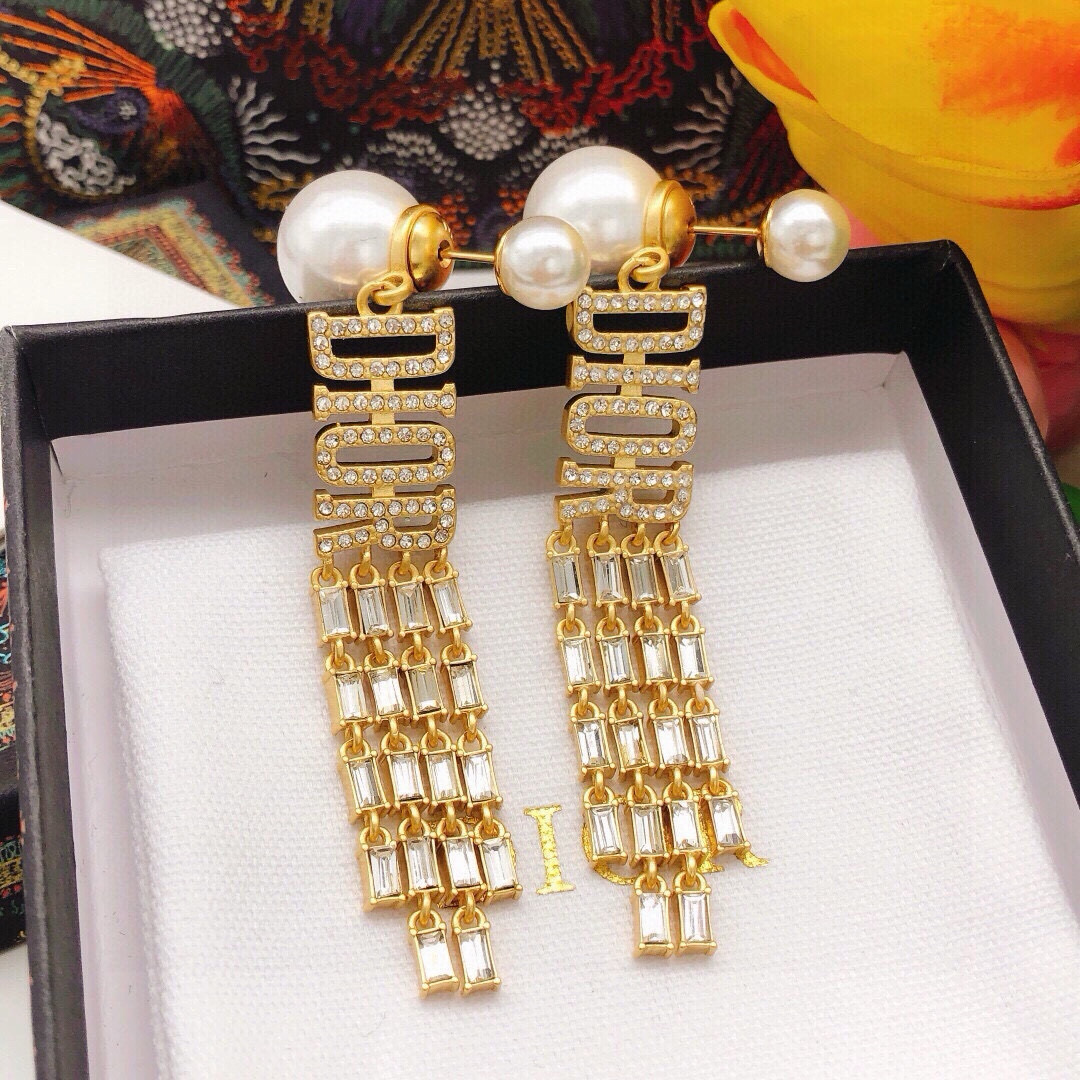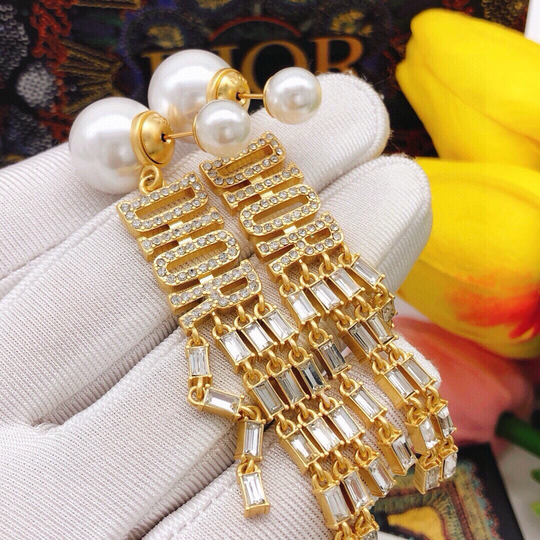 p60 number DED0447 earrings Dior tassel large and small pearl earrings set with diamond crystal CD square diamond tassel series