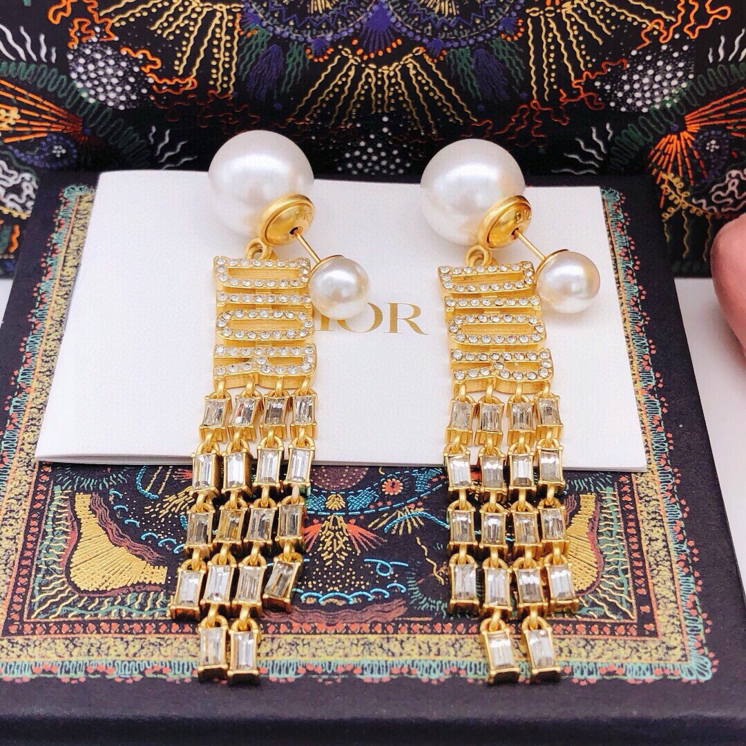 Home ACCESSORIES p60 number DED0447 earrings Dior tassel large and small pearl earrings set with diamond crystal CD square diamond tassel