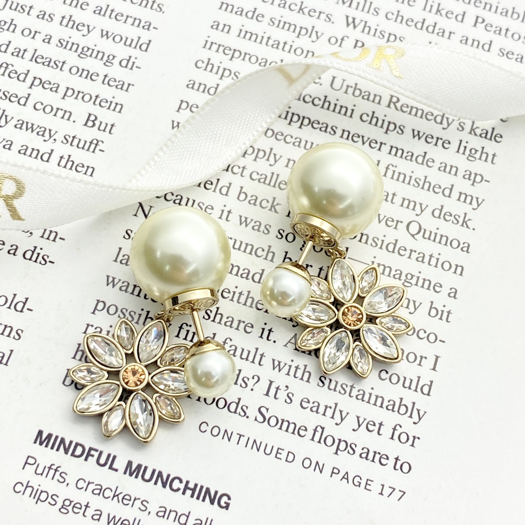 p60DIOR earrings hot-selling model, the new Dior full diamond snowflake double ball pearl earrings🥳Hollow snowflake️ is inlaid with rhinestones, the middle stamen is decorated with orange rhinestones, sparkling and dreamy🤩With the round double ball pearl design, it well highlights the nobility and high-end sense of women