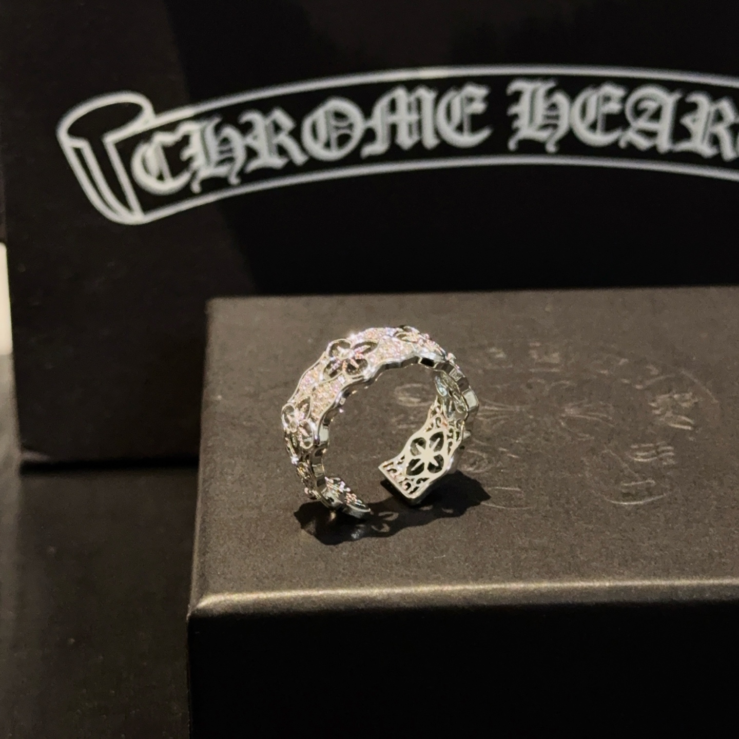 Home ACCESSORIES p65 [Counter Quality] Chrome Hearts Chrome Hearts Cross Flower Open Ring Concave