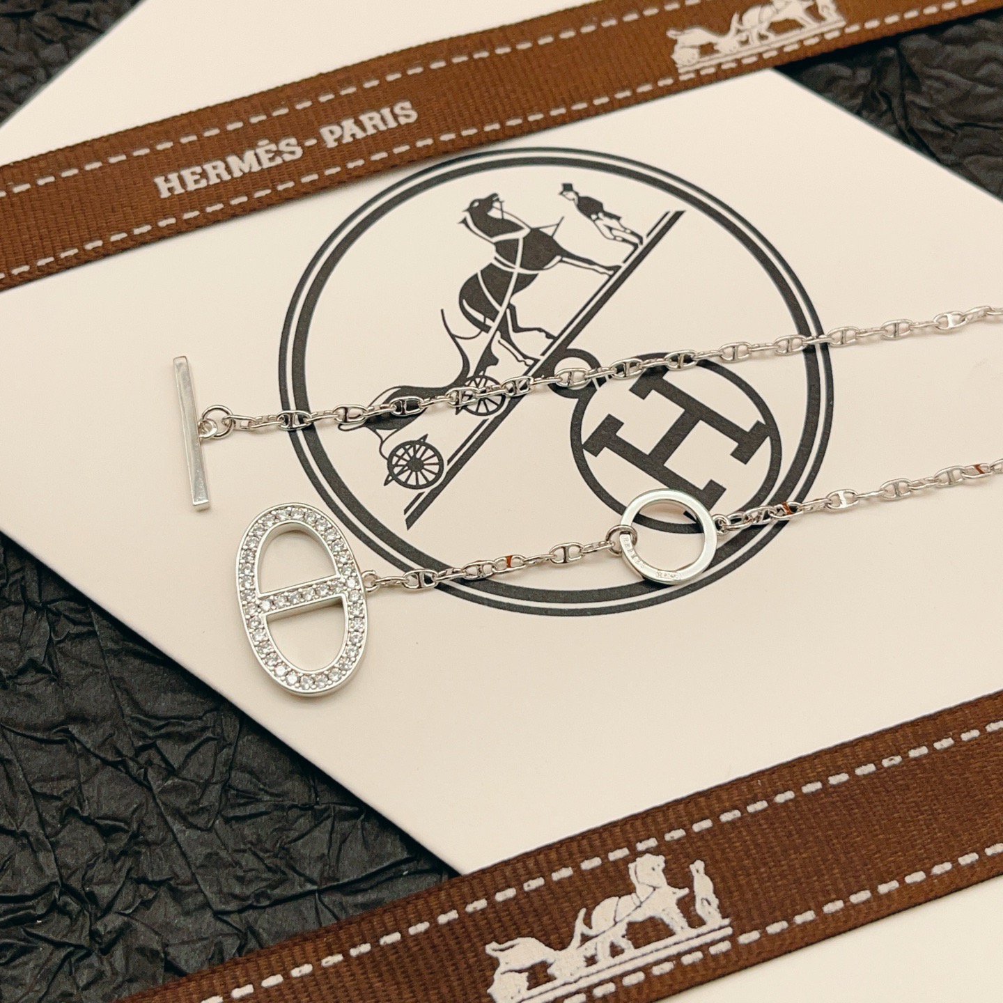 p65HX047 [He@mes latest model [Silver Hammer Set with Diamond Pig Nose Necklace]] is made of Zp brass and is very photogenic‼ ️The design is very special and worth buying the high-end handmade workshop series