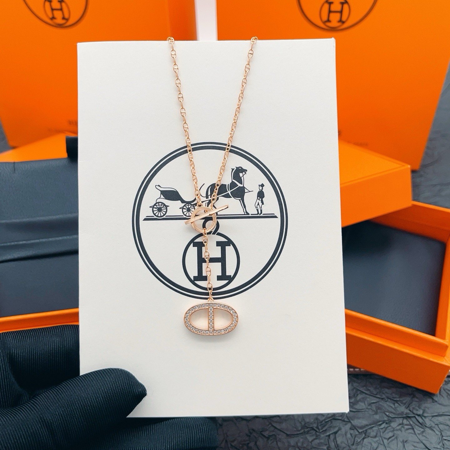 Home ACCESSORIES 65HX049 [He@mes latest rose gold endant hammer set with diamond ig nose necklace] consistent Z