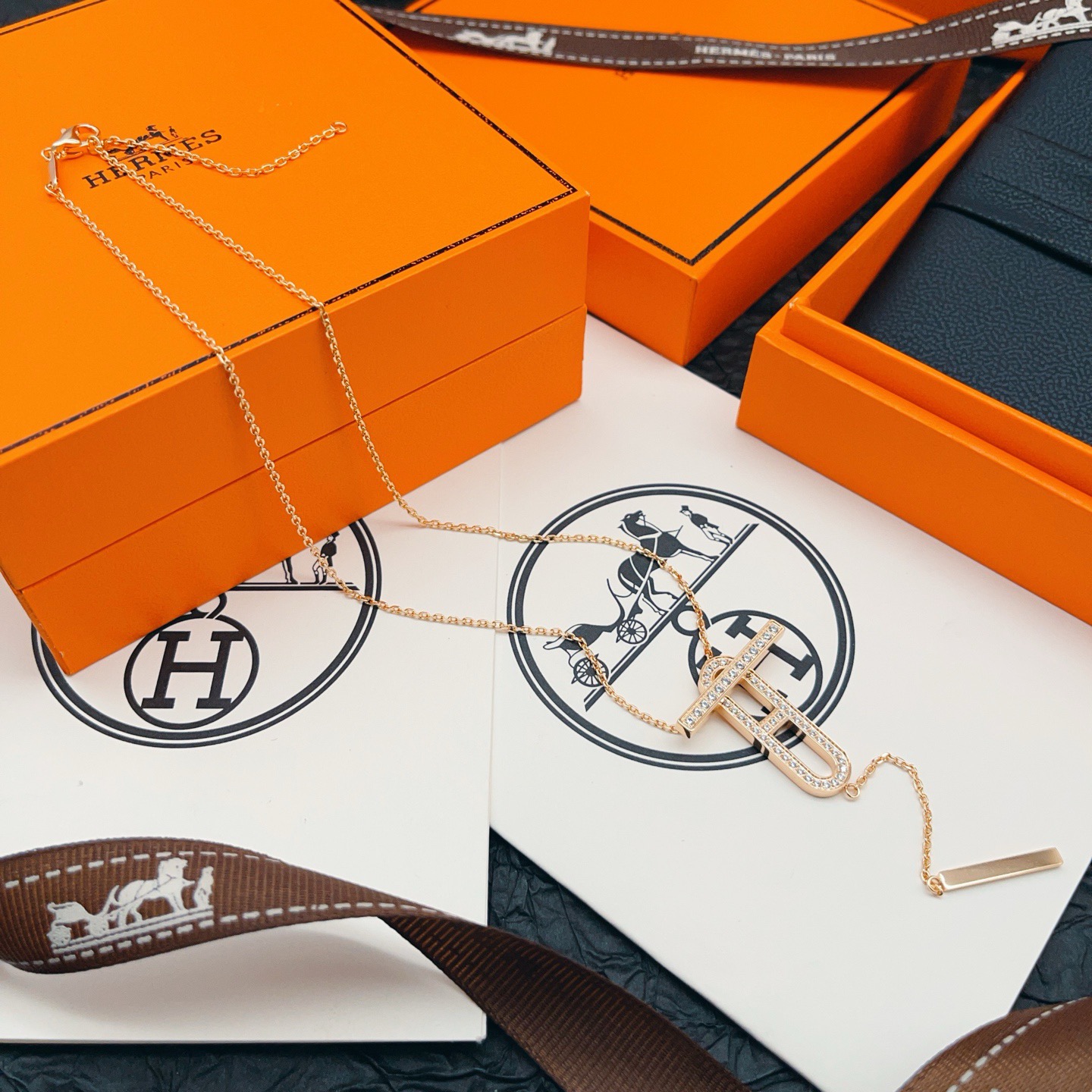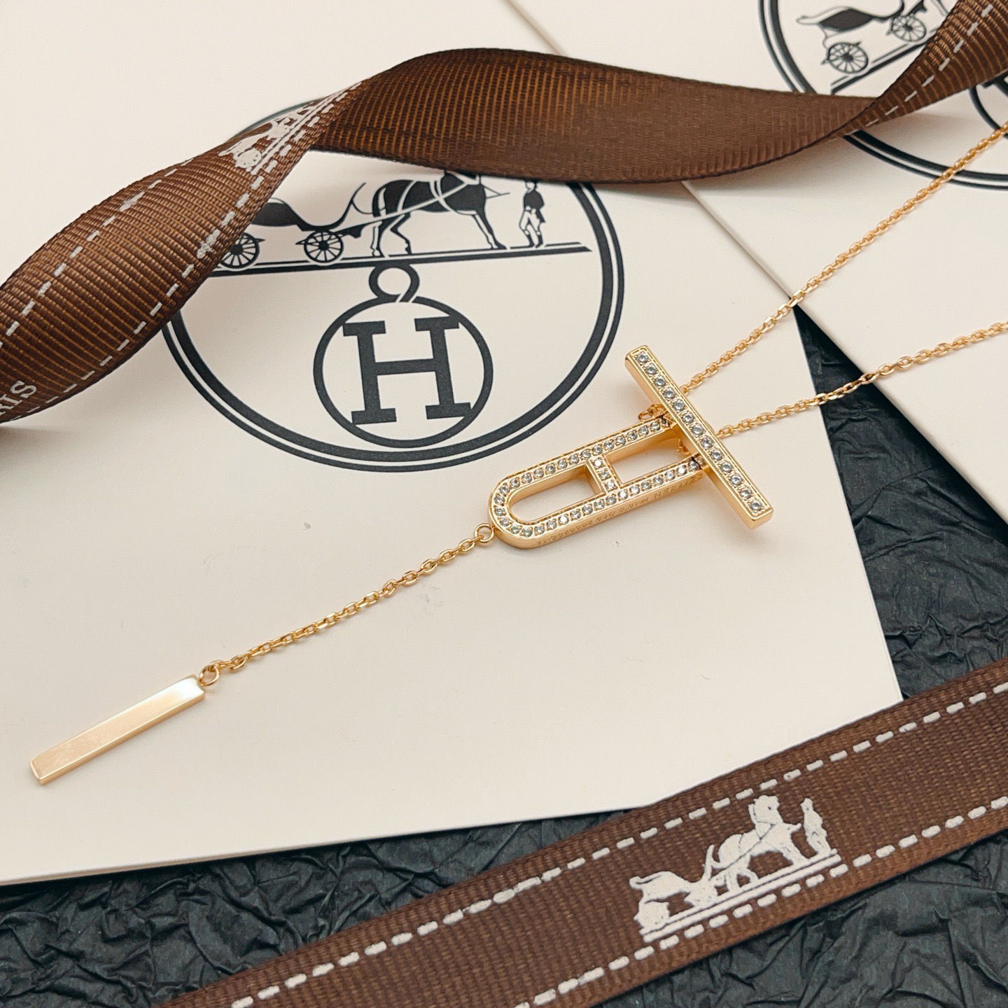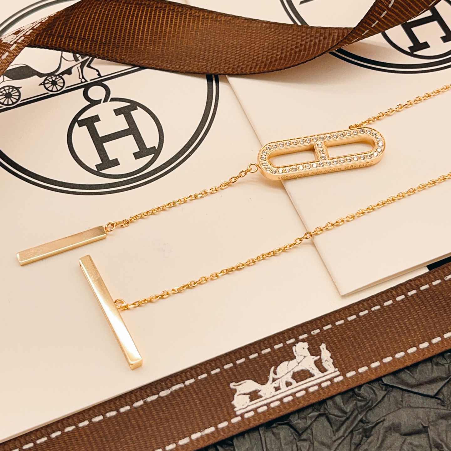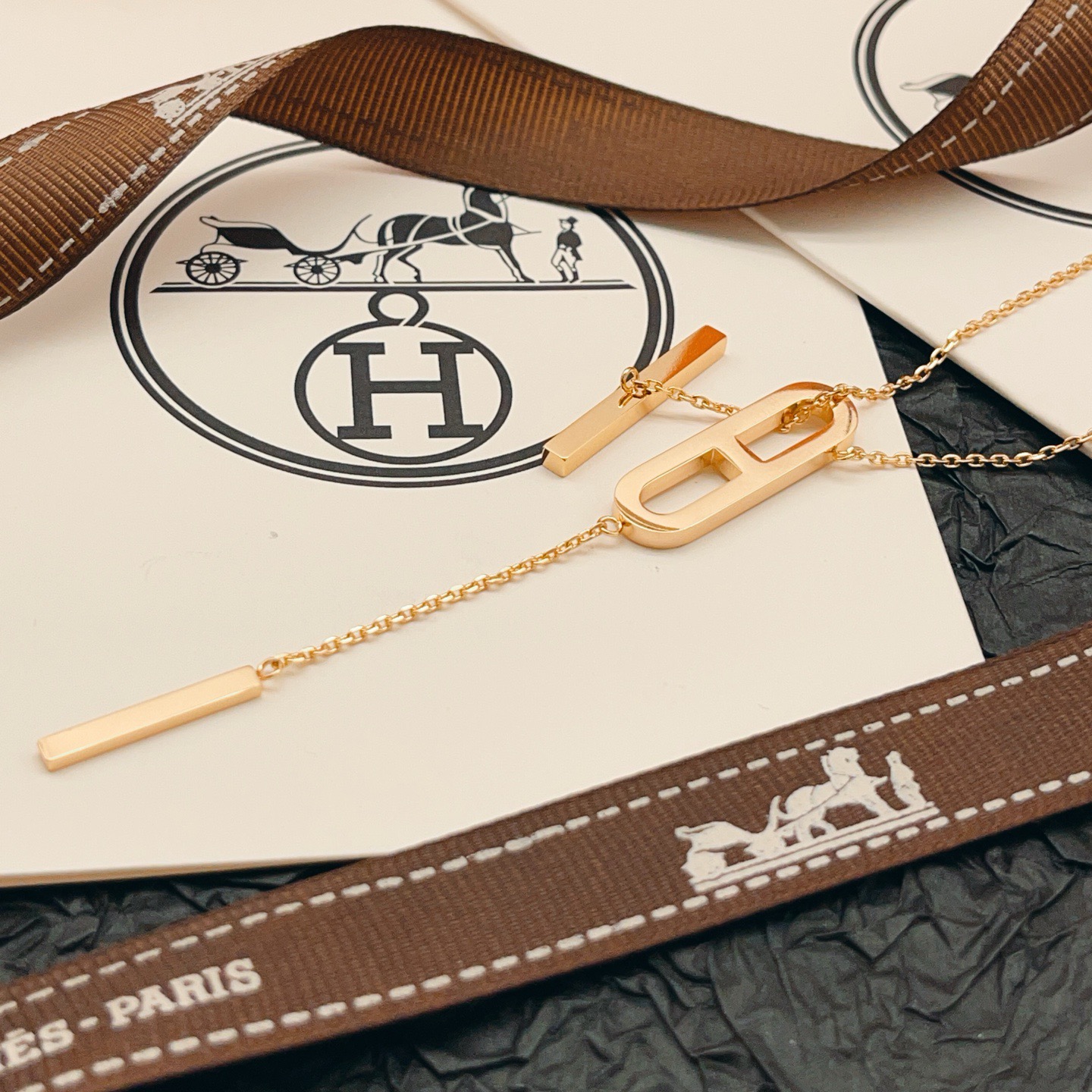 p65HX050 [He@mes latest rose gold pig nose tassel necklace] consistent Zp brass material, very photogenic‼ ️The design is very special and worth buying the high-end handmade workshop series