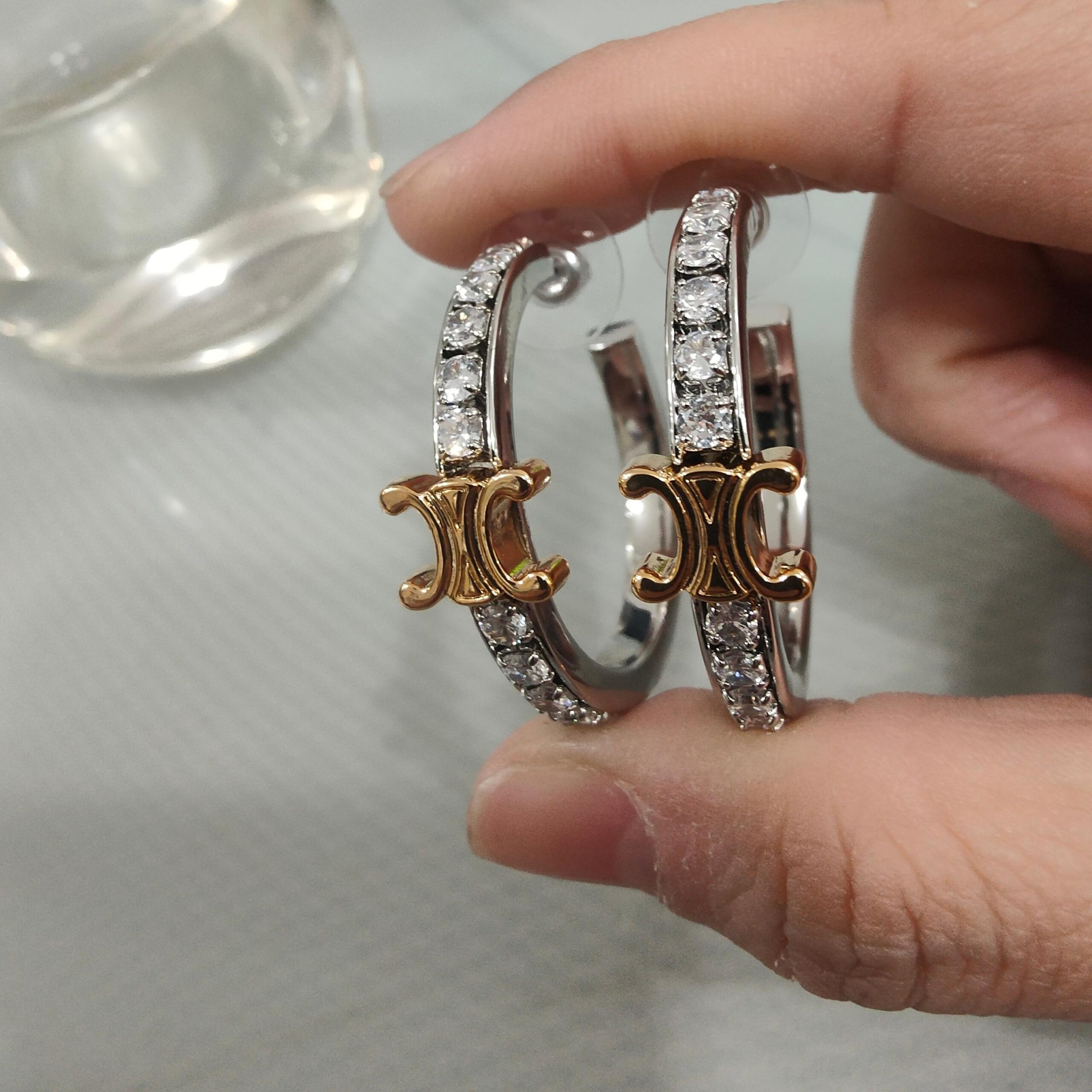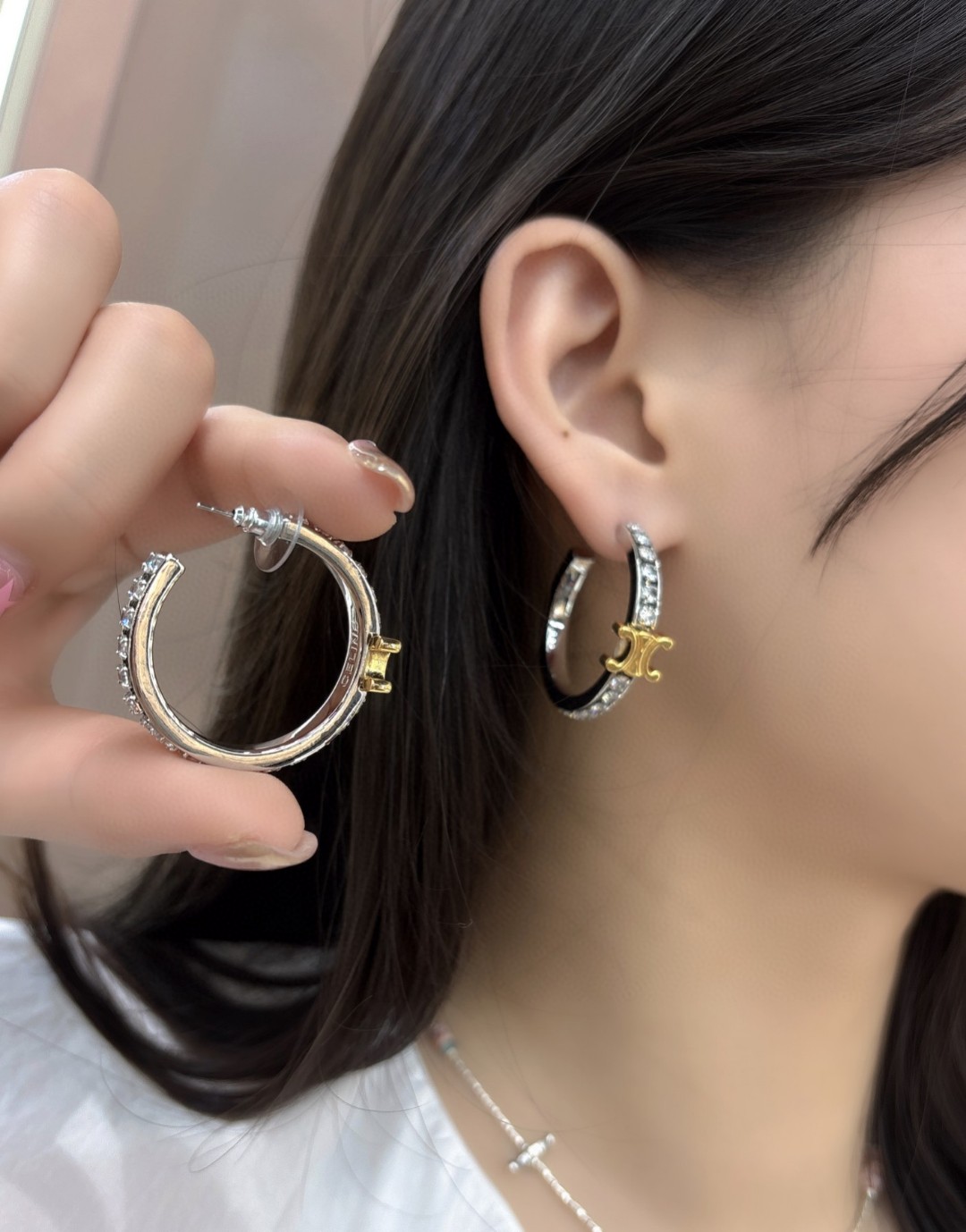 Home ACCESSORIES 70 Xiaohongshu recommends the latest oular Celine Arc de Triomhe carved letter hoo earrings Celine has