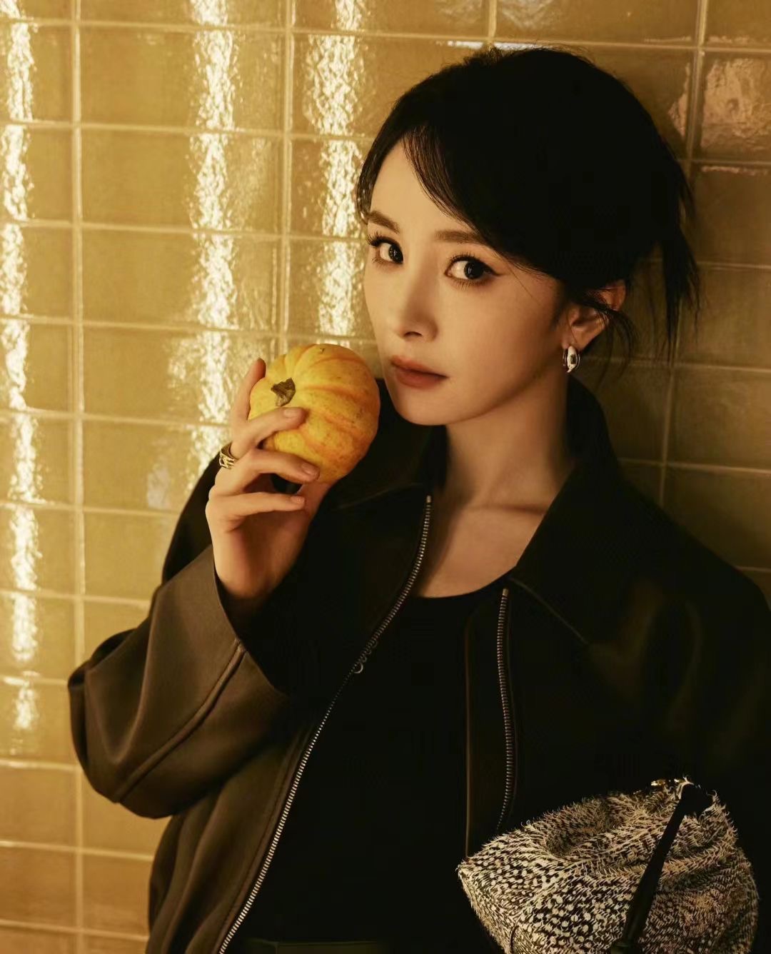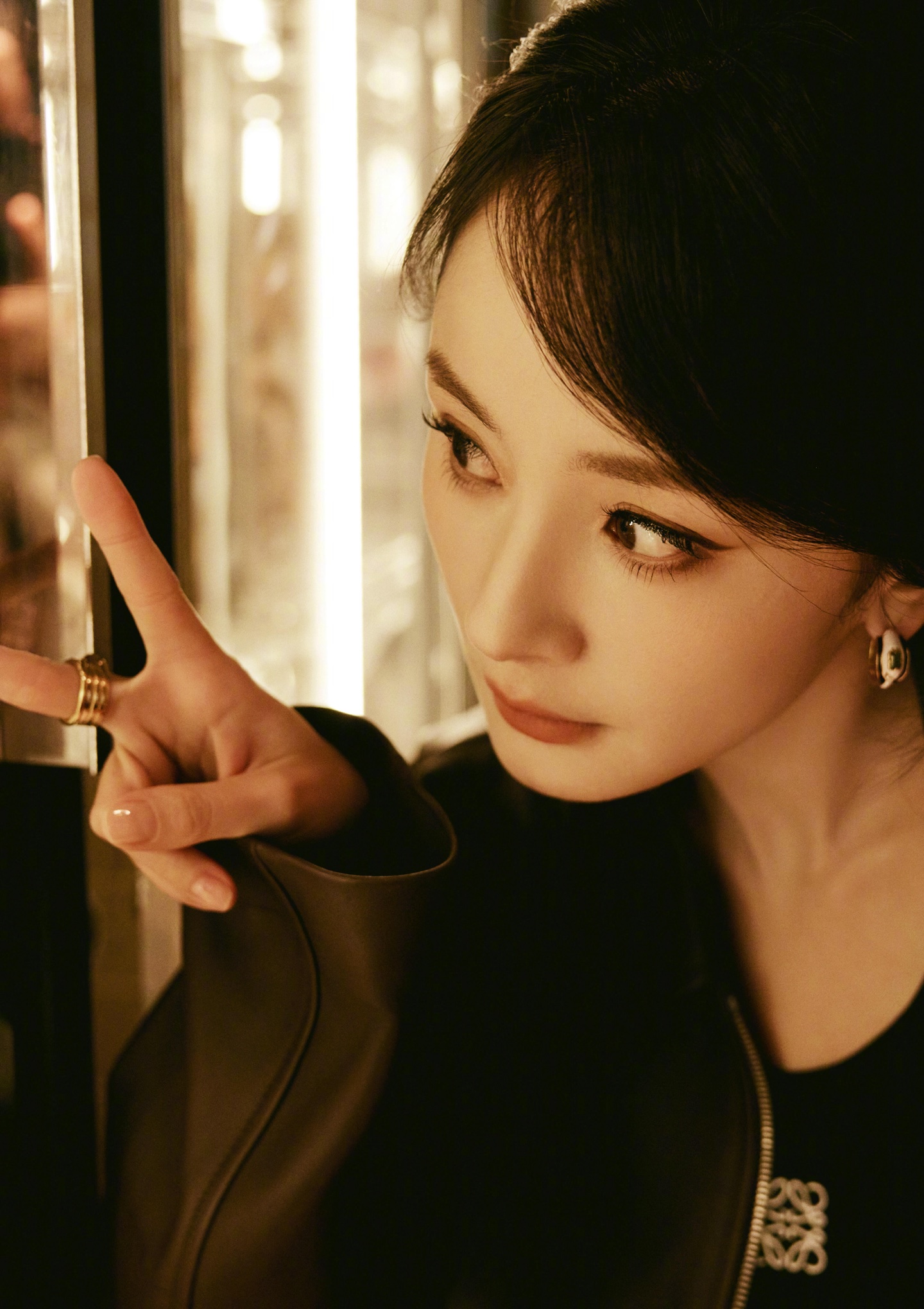 p70 Yang Mi’s same style Loewe’s new metal snake-shaped colored diamond earrings are designed with a minimalist sculptural feel. Multi-colored glass combined with irregular curves shows a surreal artistic style. Create a mysterious atmosphere