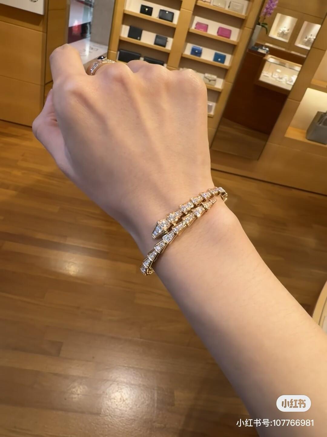 p70BZ005 [BVLGARI’s latest rose gold diamond snake head bracelet] consistent Zp brass material, very photogenic‼ ️The design is very special and worth buying the high-end handmade workshop series
