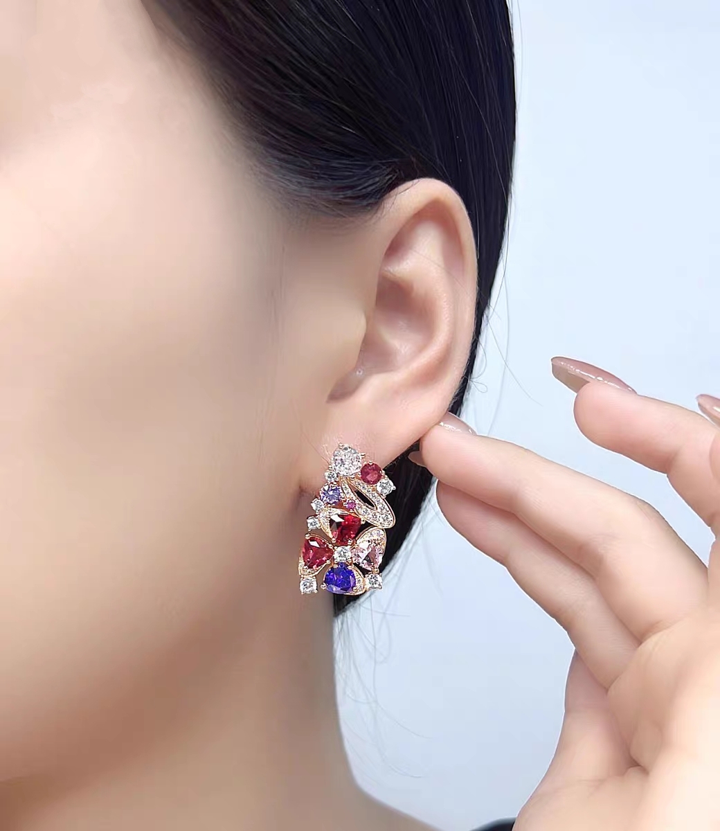 p75 Tong Liya’s same style colorful treasure earrings Bvlgari Bvlgari diva series high-end customized popular counter tassel colorful treasure earrings inlaid with imported gemstones the same style as celebrities, a must-have for luxury and beautiful dinners, noble atmosphere, beautiful and versatile style