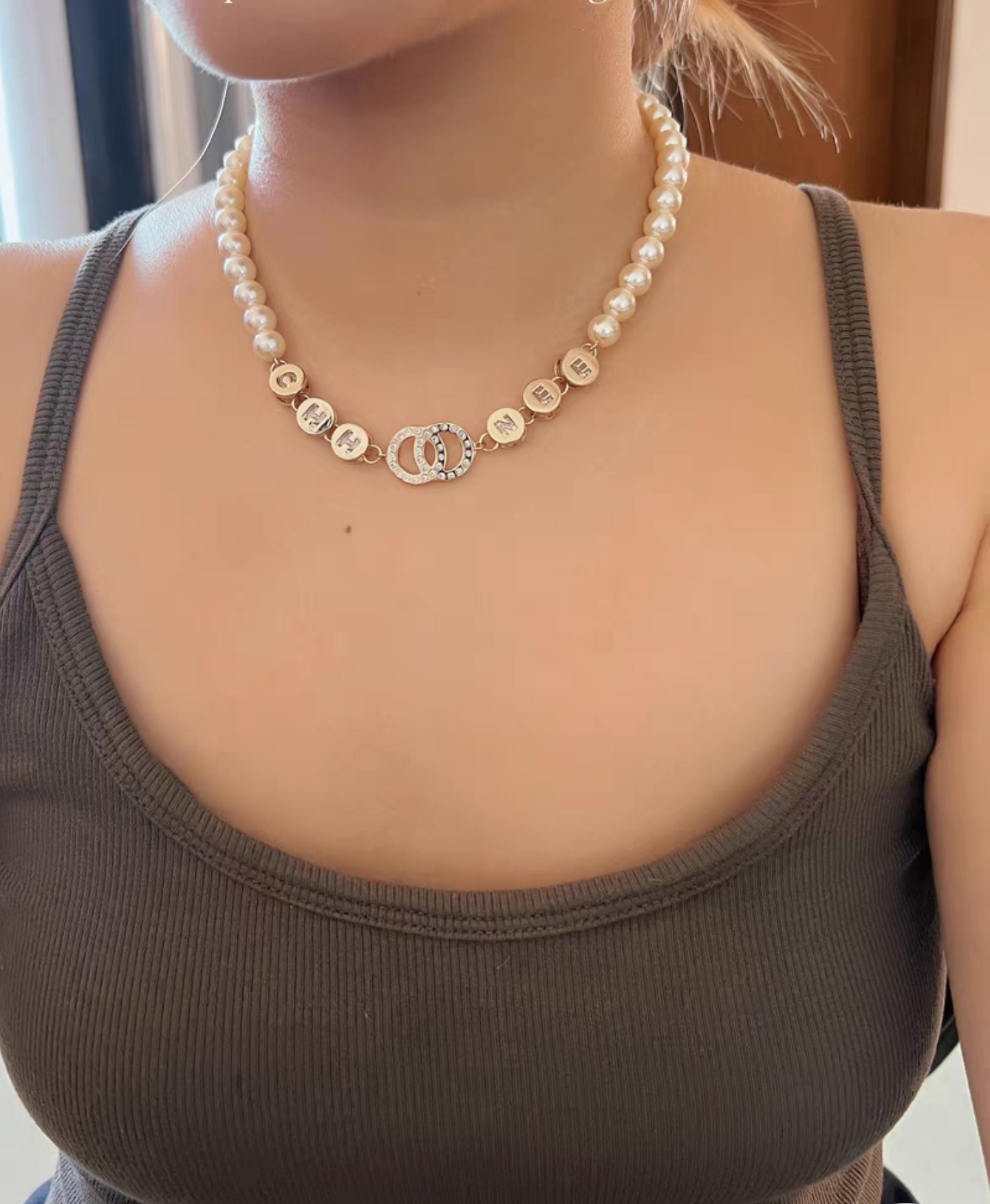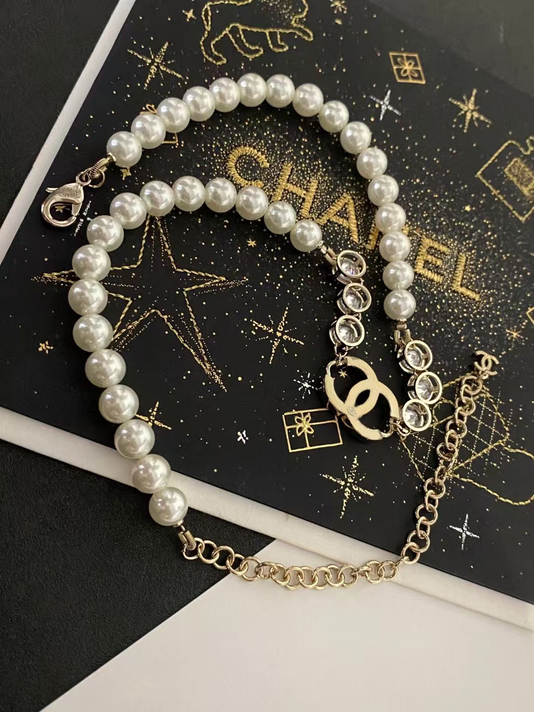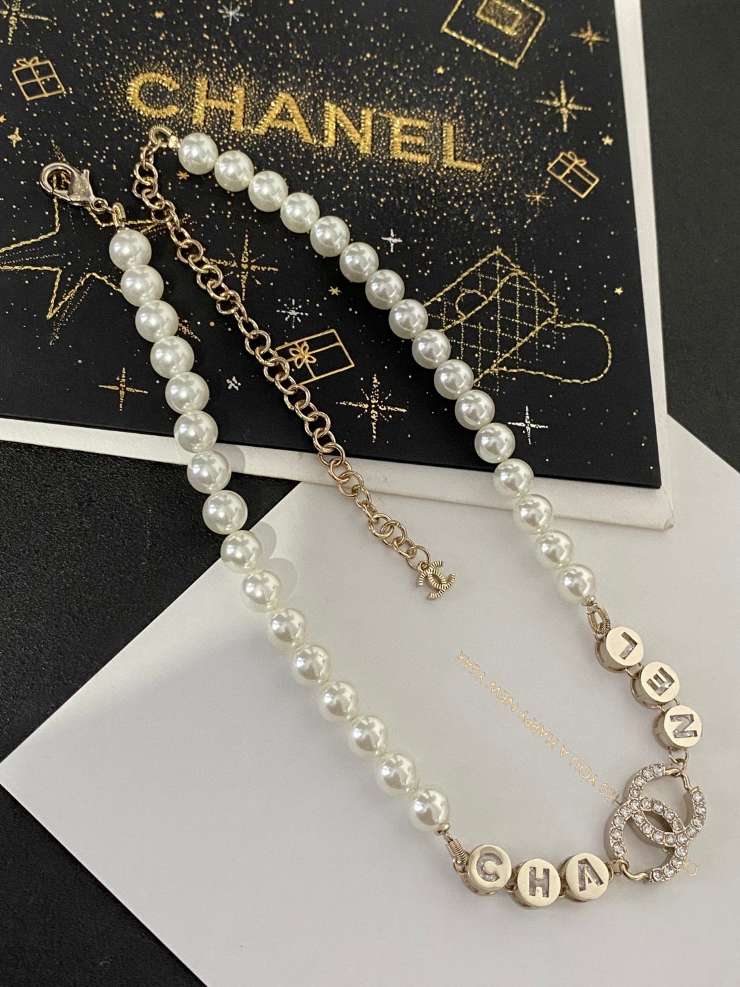 p75ZP pattern making Xiaoxiang CHANEL Swarovski Crystal Diamond Pearl Letter Necklace Elegant and refined design and carving very flattering body shape youthful vitality I was attracted by this one at first sight very beautiful color combination fashionable and playful