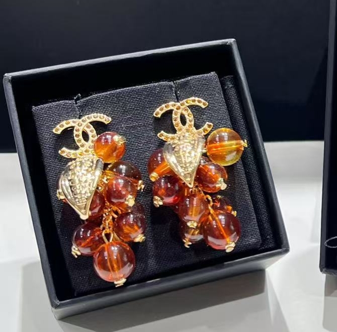 p85 Today’s new products???? High-end hand-made customization???????????????????? 25A new brown citrine beads full of diamonds and double C letter earrings Gold and brown color beads mean fruitful and full harvest. Matched with gold crescent moon, it has a vintage taste. This season, zp is super expensive. The customized model is very cost-effective. The same brass material as yb, citrine grape