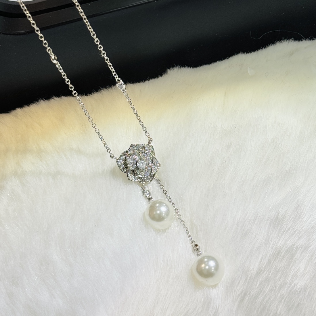 Home ACCESSORIES 90 Piaget New Camellia Pearl Tassel Necklace V-neck Tube To Best Comlementary Full Body 92