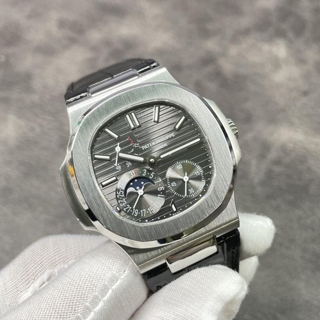 Patek, Nautilus series nautilus 5708 hours) The lower left corner is the calendar display (pull the head out and the second gear is down to adjust manually) The lower right corner is the second hand. Actual photos of shipment