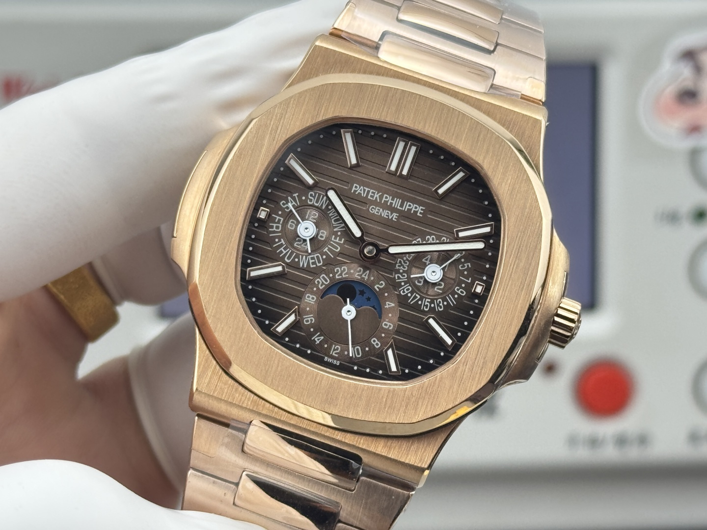 Patek Philippe 57400mm has the following functions: the year is displayed in the left window, the month is displayed in the right window, the day of the week is at 9 o’clock, and the automatic winding movement is perfectly interpreted on the premise of achieving a realistic appearance. 3⃣️Modification masters and independent watchmakers participate in customizing and modifying the dial color, adding an interesting soul to the unique watch!