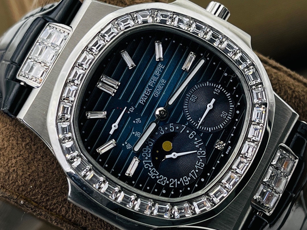 [PFF Factory202 digit kinetic energy display, 7-digit calendar and moon phase, 4-digit small seconds), with the same horizontal embossed pattern and fluorescent scale as the original! 2⃣️Diameter 40 mm, 904L gold-plated stainless steel, sapphire glass mirror. The outer diamonds of models 722 and 5724 are Swarovski diamonds, which are transparent and shiny, with extraordinary temperament. As close to the original as possible within the current state of the art, this watch is ready for all occasions! PFF’s ingenious work welcomes your appreciation!