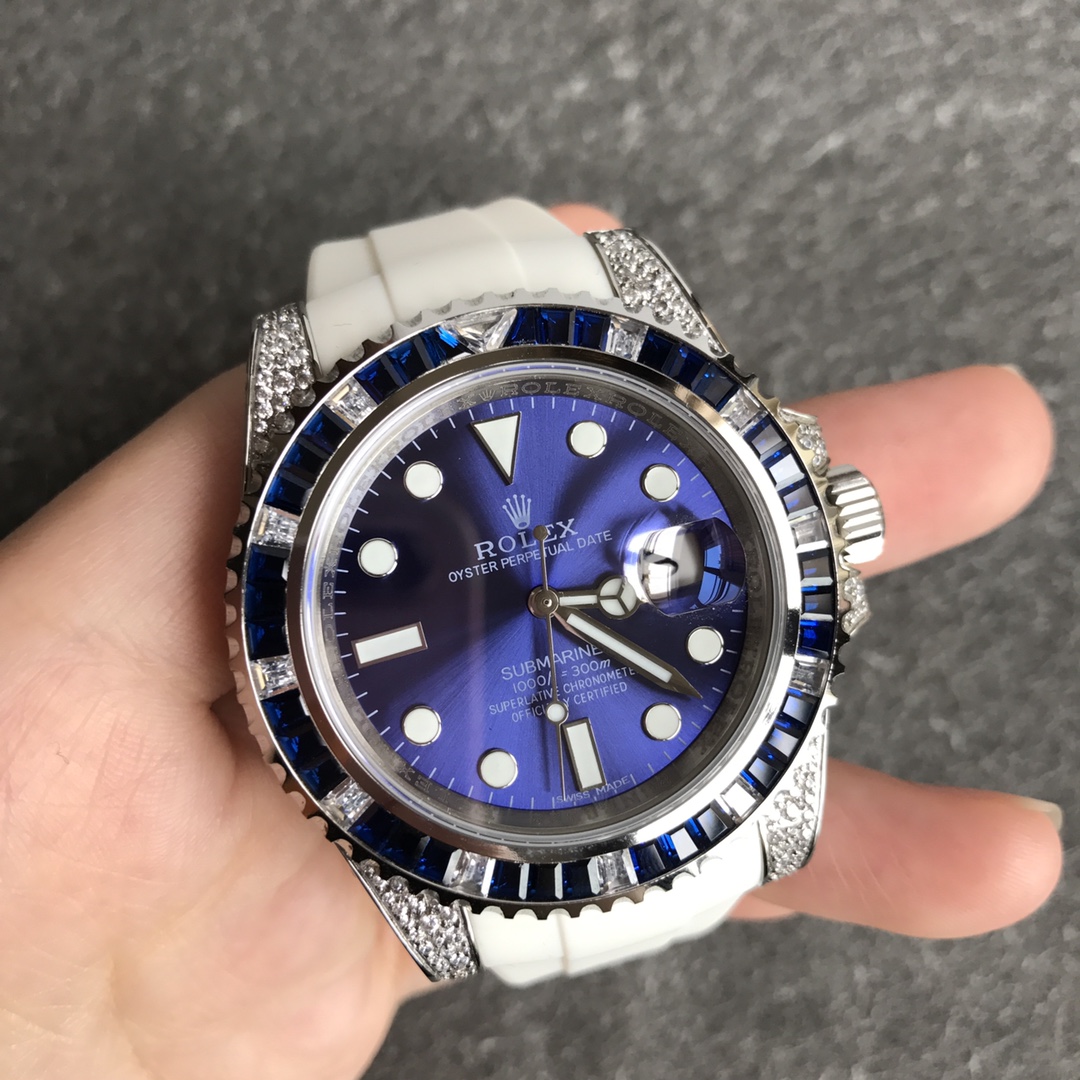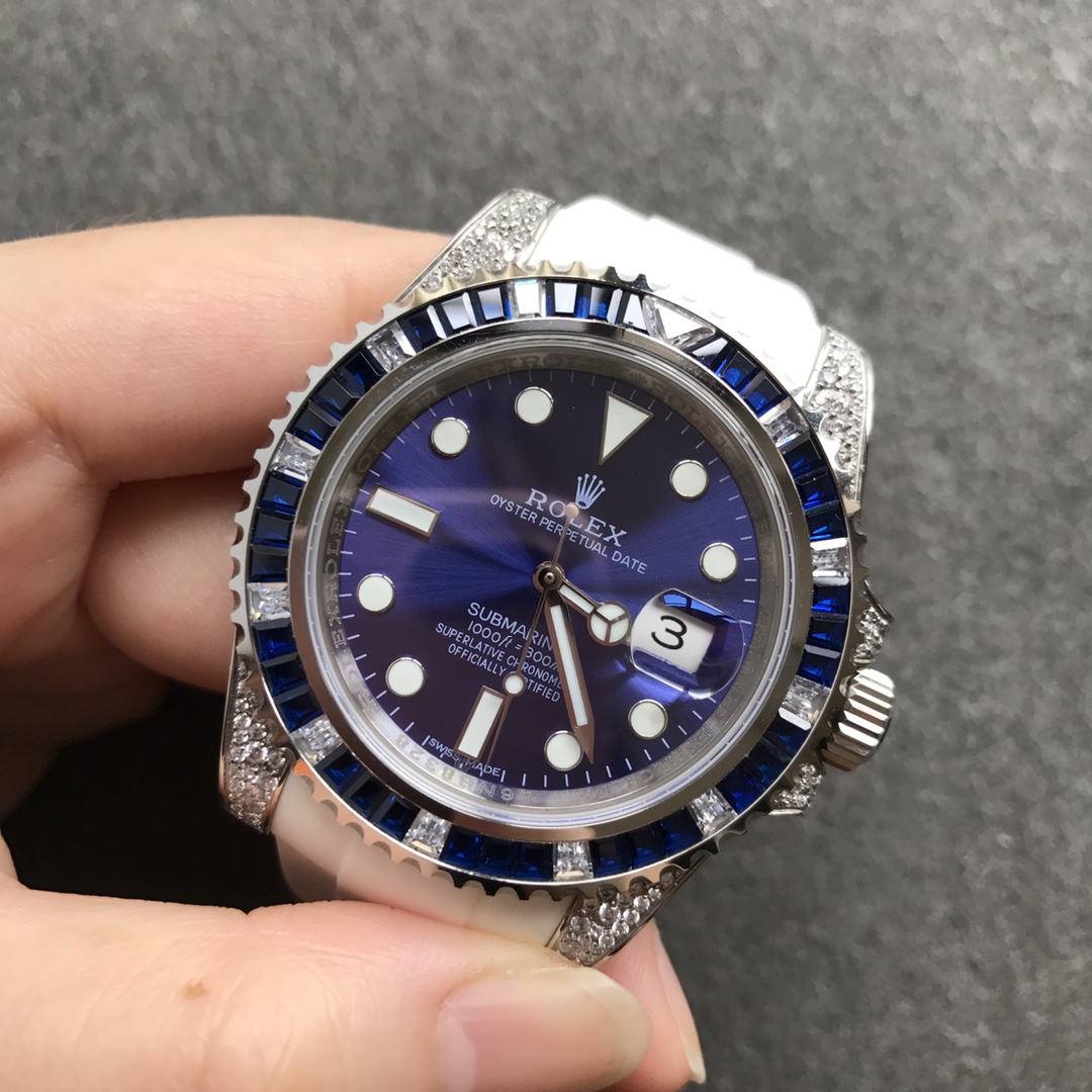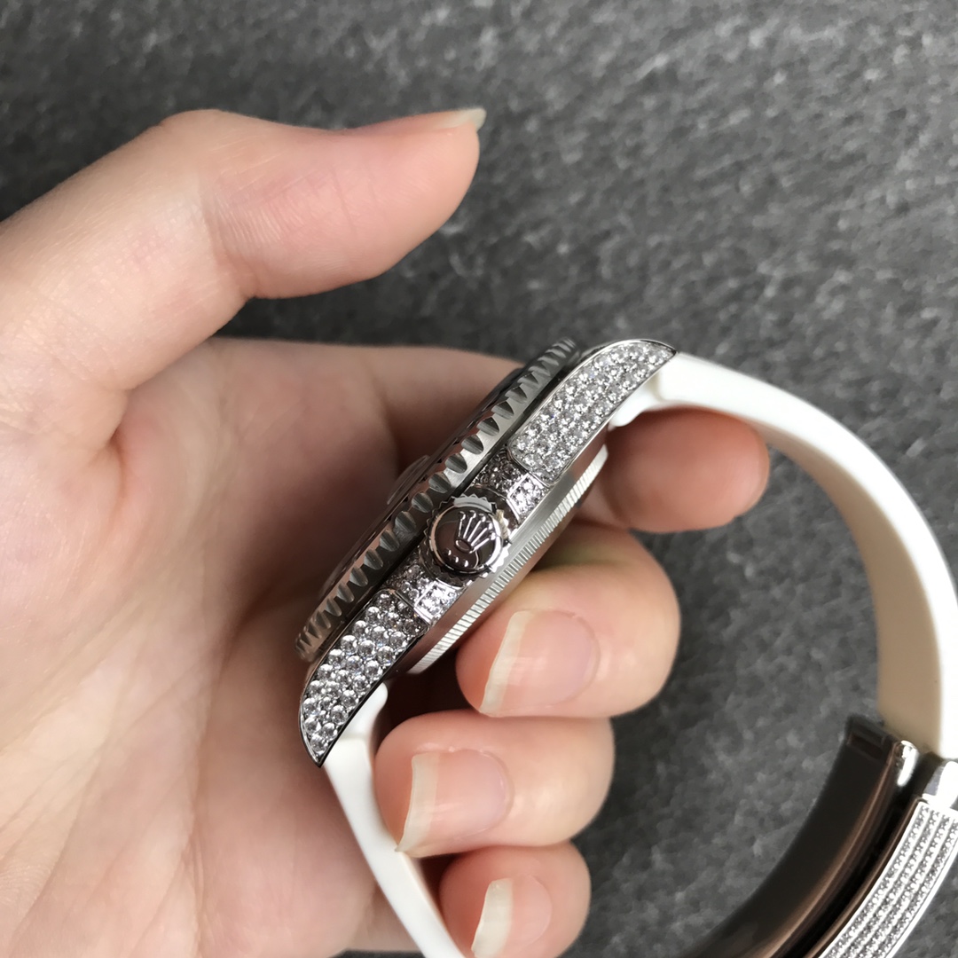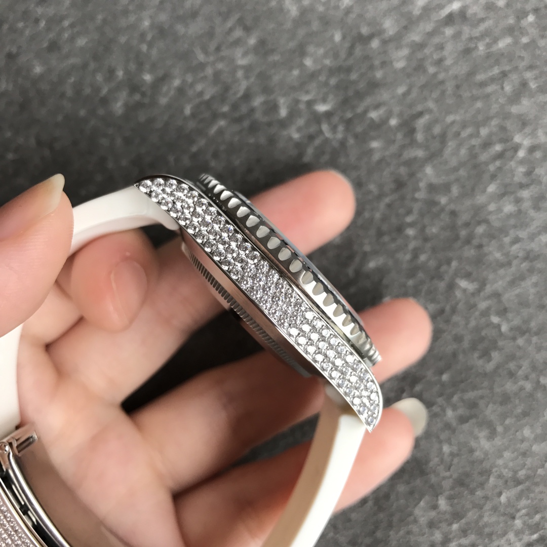 [Player’s Poison] Rolex’s top toy, V-degree diamond-encrusted, sparkling with no blind spots! Luxurious buckle studded with diamonds! 40 mm in diameter! If you don’t like flashy water ghosts, she is definitely your first choice! 4 steel, after the second modification of the ring, inlaid with top-quality natural bright stones, it is very shiny and extremely difficult. Currently, the same material has the most sparkling craftsmanship. 2⃣️The movement adopts etc2824 fully automatic mechanical movement! Meters deep waterproof! 5⃣️Standard equipped with crocodile strap + free silicone strap! 6⃣️The watch strap connector is made from an ingenious custom mold and fits the watch case perfectly, giving the wrist the highest comfort. The 2cm flexible adjustment buckle within the buckle makes it easy to adjust the size! Ingenious masterpiece, welcome your tasting!