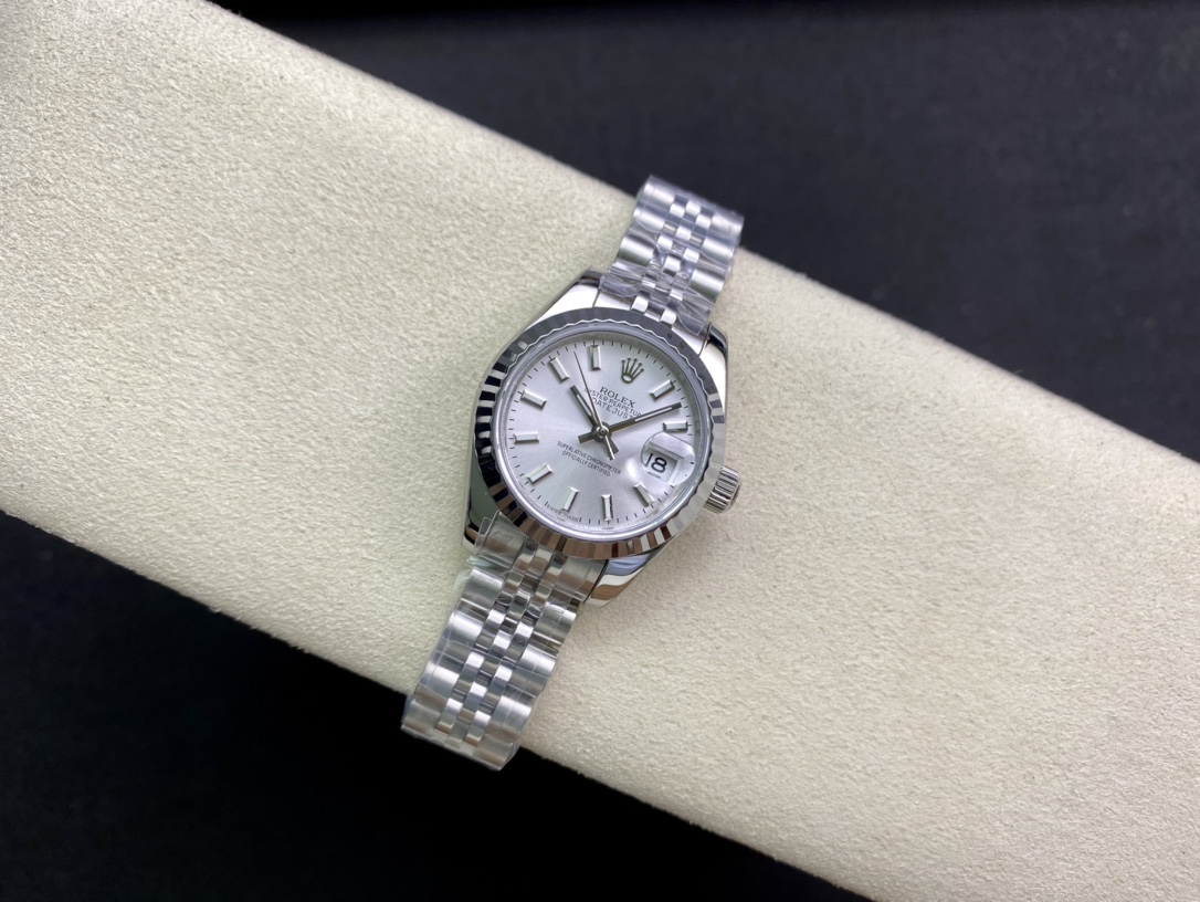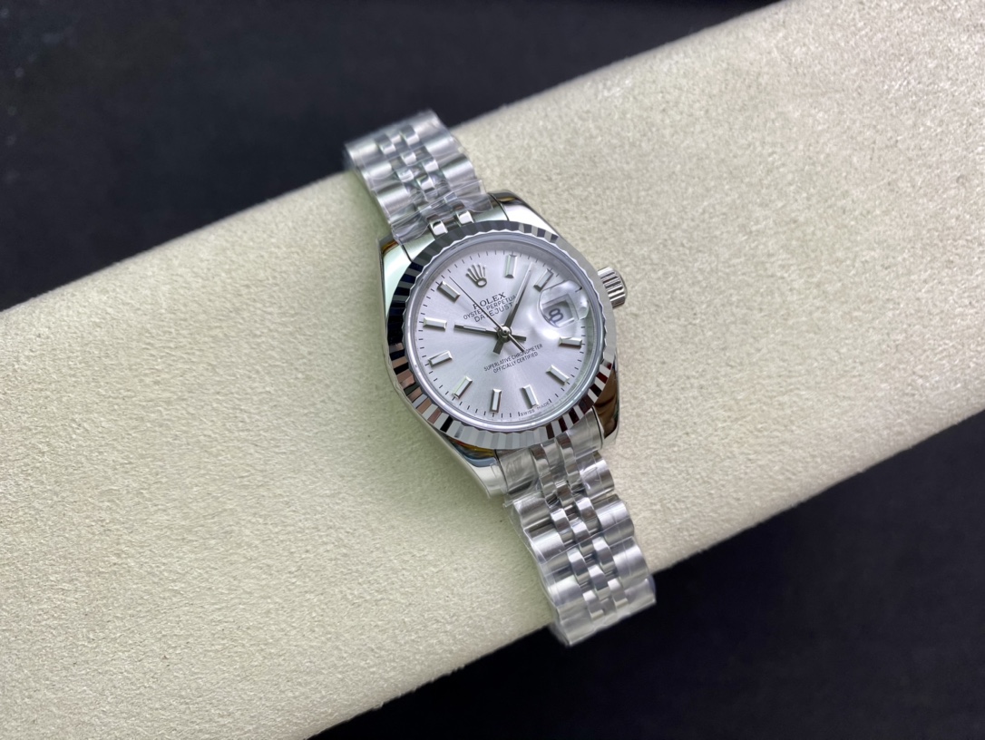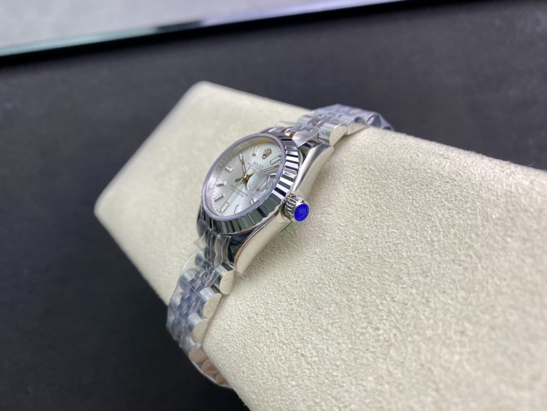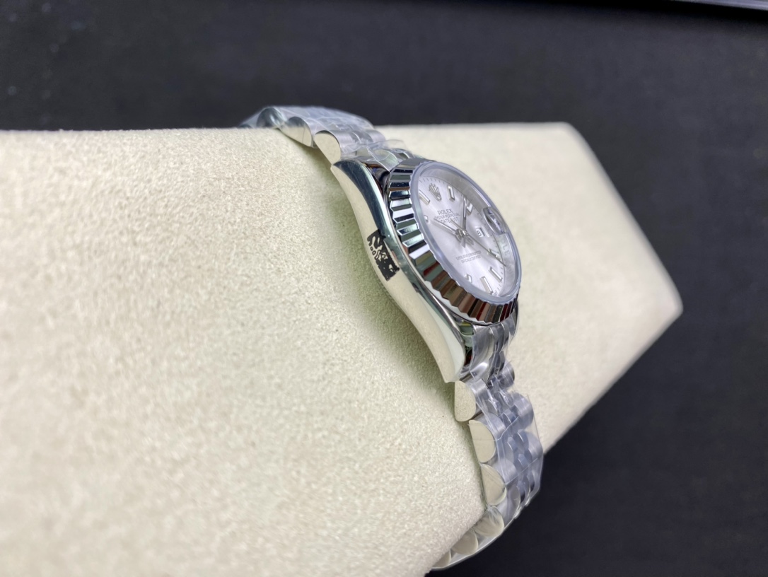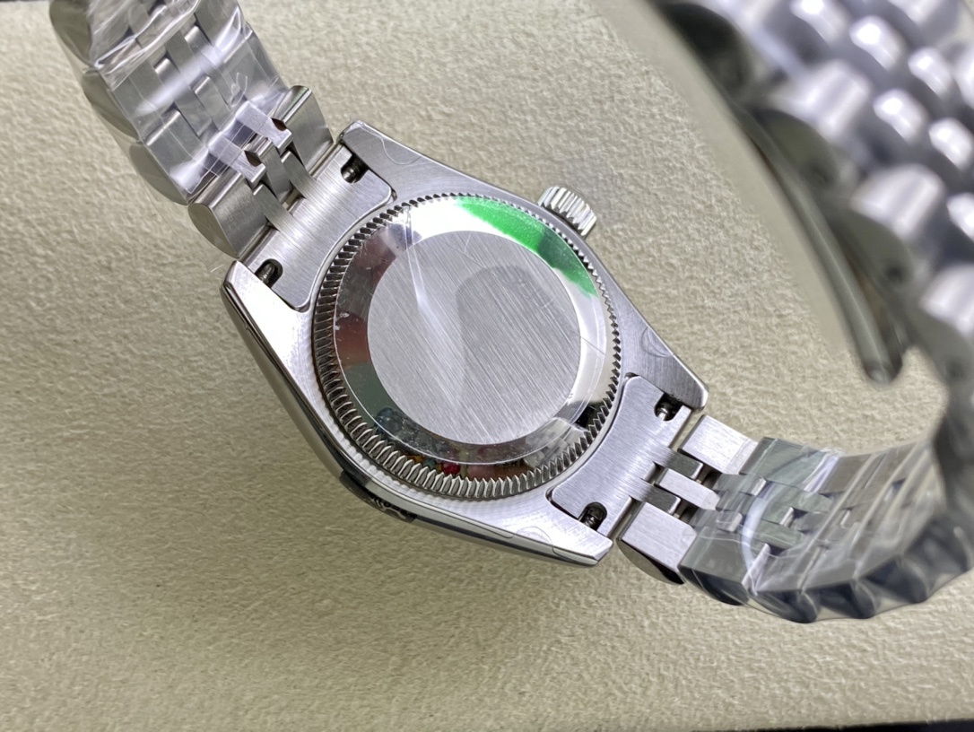 Produced by WF, Rolex Women’s Datejust 28mm Datejust 279009 ①: The Oyster case of the Women’s Datejust is a model of solid elegance and perfect proportions. Using the 3671 movement, the performance is extremely stable. Its shock resistance and geometric structure allow the movement to maintain regular operation in any position. ③: The triangular grooved bottom cover is tightened with special tools to completely seal the watch case. The winding crown adopts a double lock double waterproof system and is firmly screwed to the watch case, making it more waterproof. ④: The mirror is made of scratch-resistant blue crystal, and a small window convex lens is installed at 3 o’clock for easy reading of the date. The waterproof Oyster case of the women’s Datejust provides the best protection for the high-precision movement. ⑤: The new hidden connection method under the watch strap and outer ring ensures a seamless visual effect between the strap and the watch case. The redesigned commemorative strap features a new generation concealed crown buckle, opening with an articulated Rolex crown logo. The Oyster strap style is equipped with a folding Oyster buckle. The Rolex S classic women’s watch has always been synonymous with elegant style and accurate timepieces. It condenses the elegance and unique functions of the Datejust into a small and exquisite case, which is more suitable for women’s slender wrists.