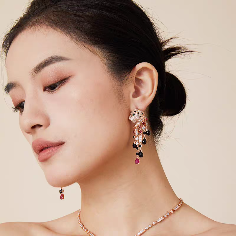 pV gold high version Cartie Cartier black onyx red diamond leopard earrings, super domineering leopard, each