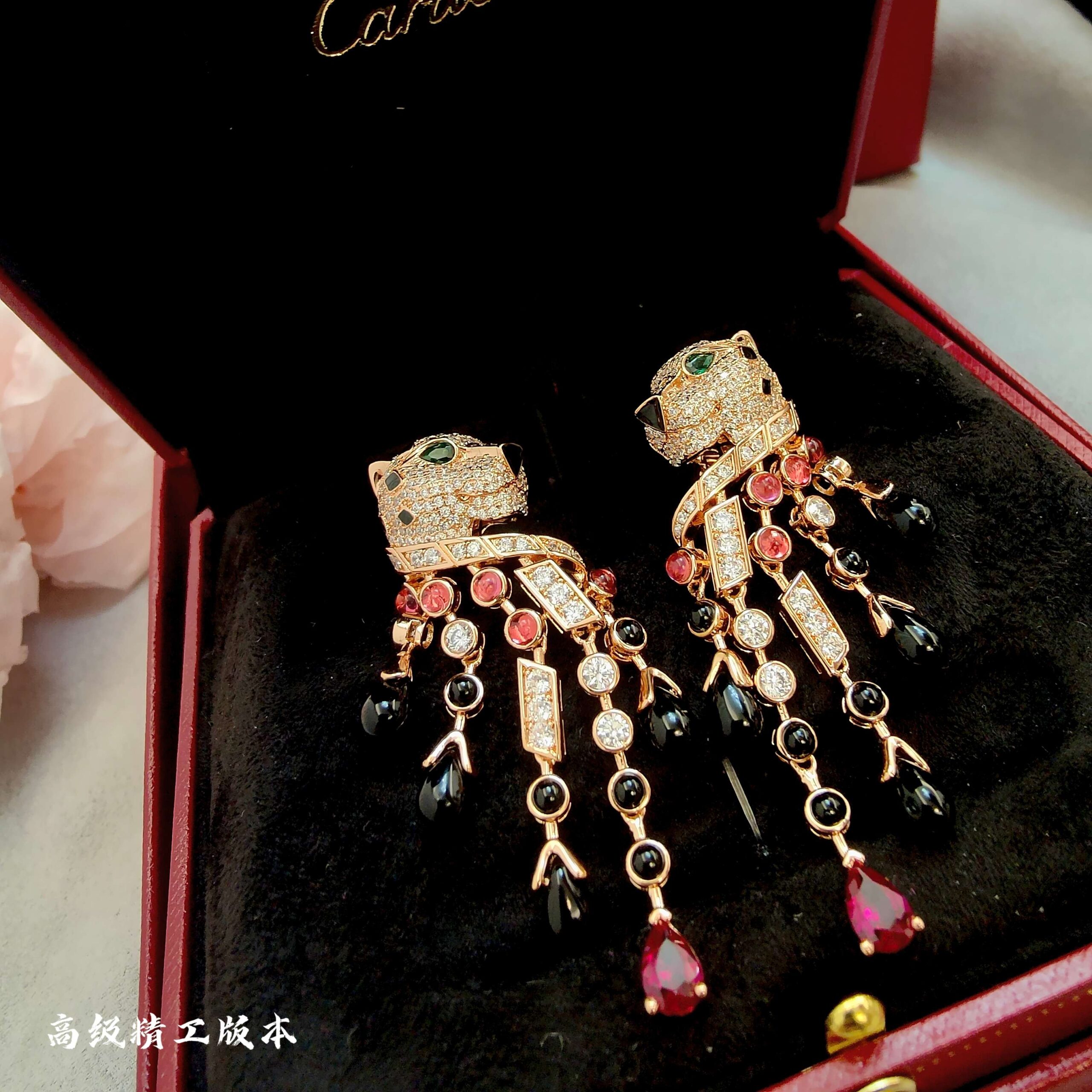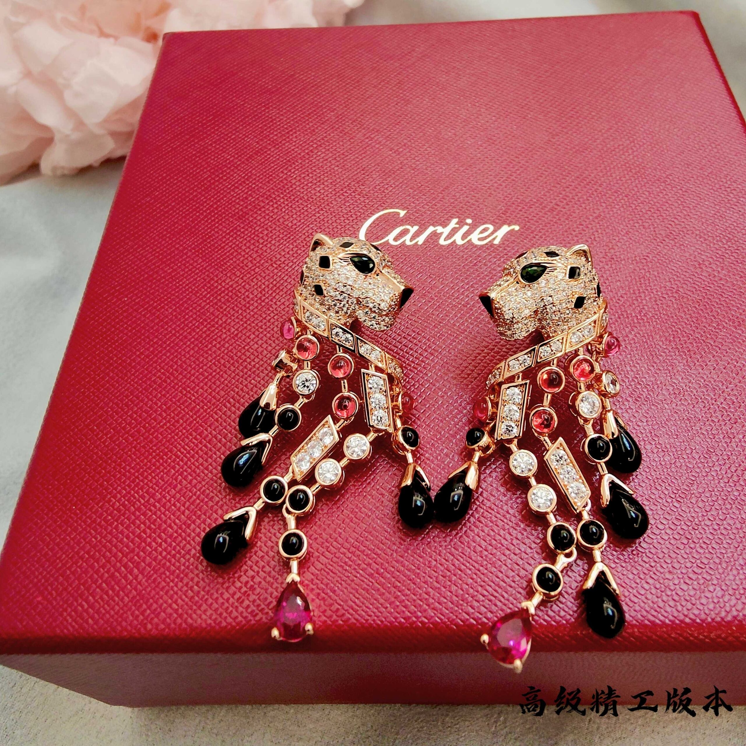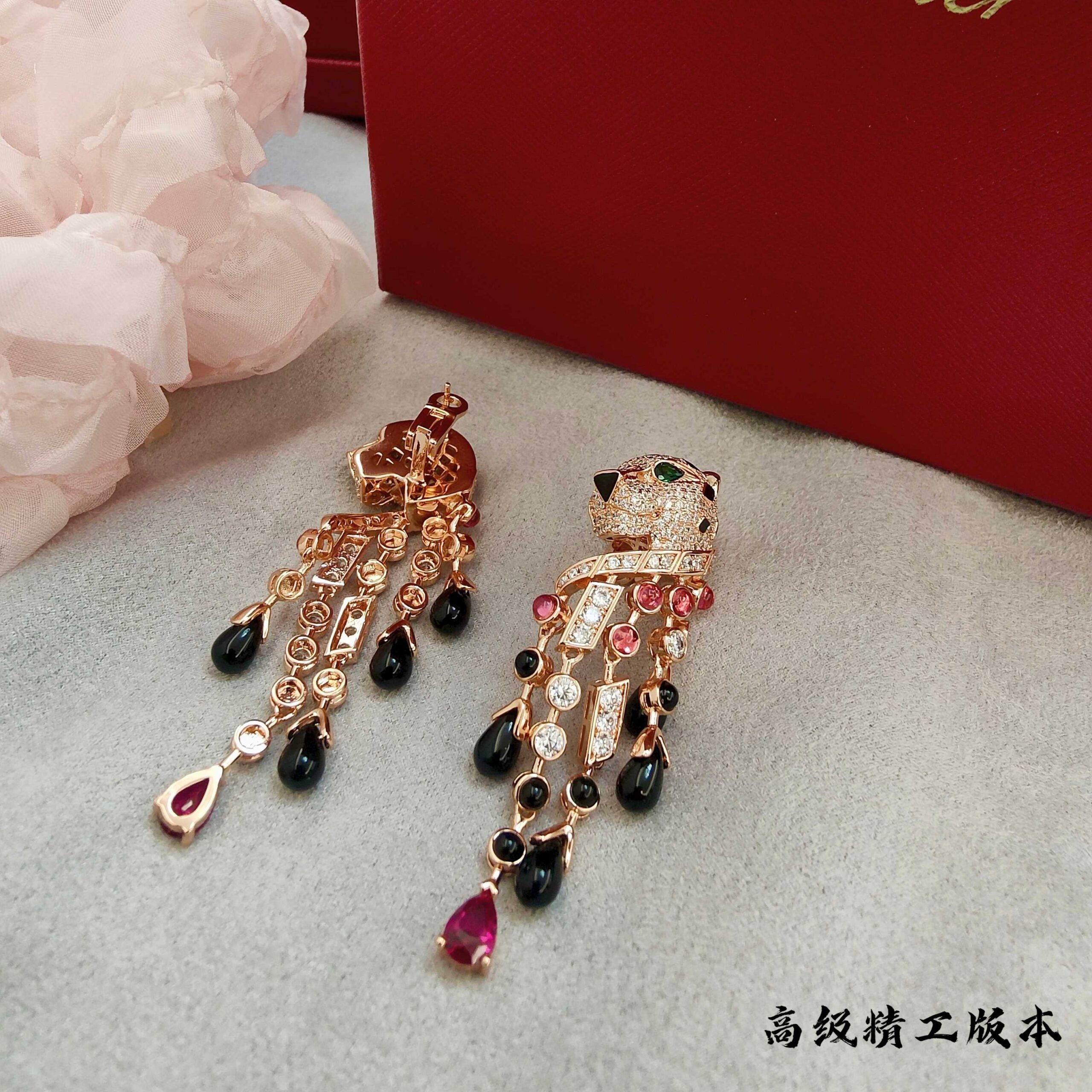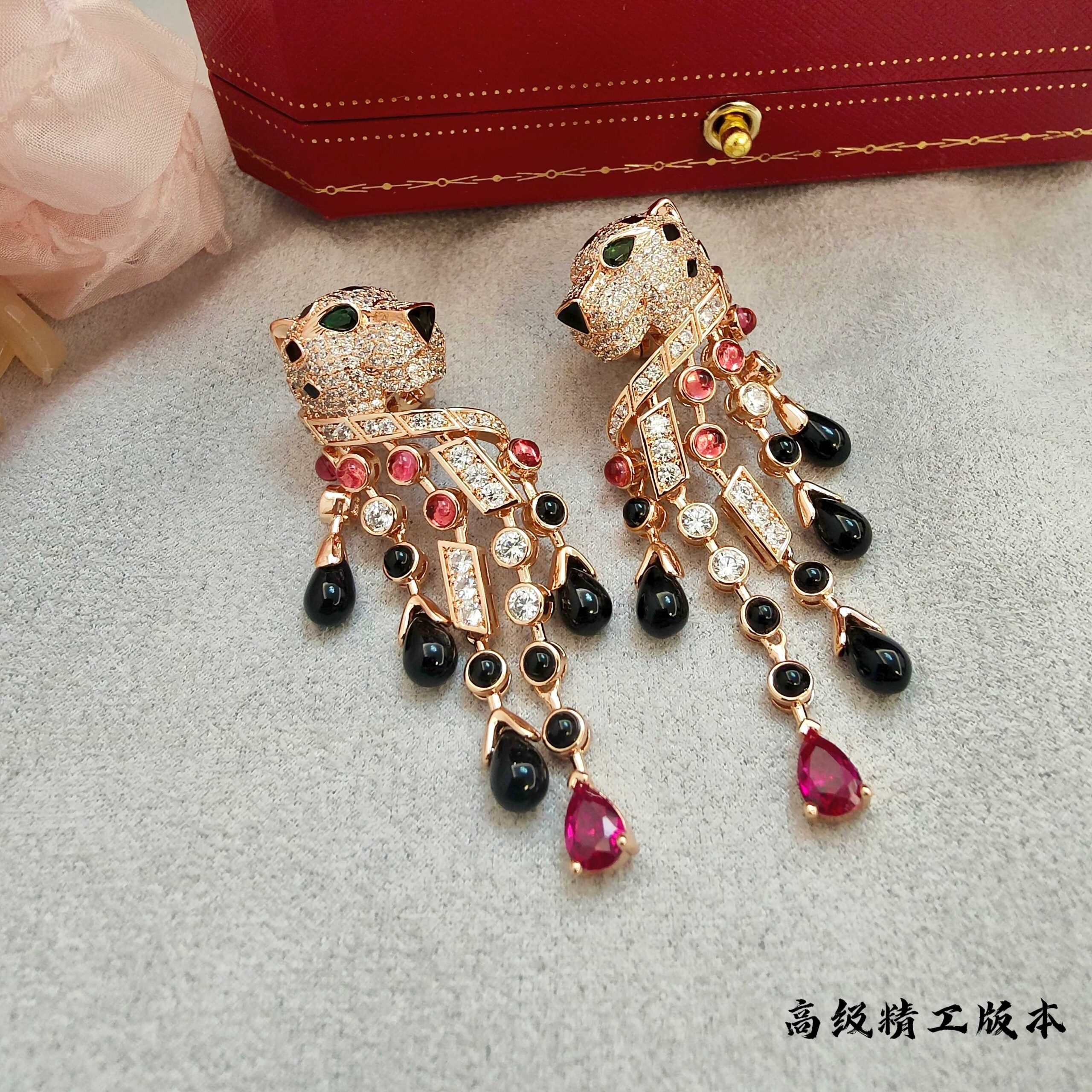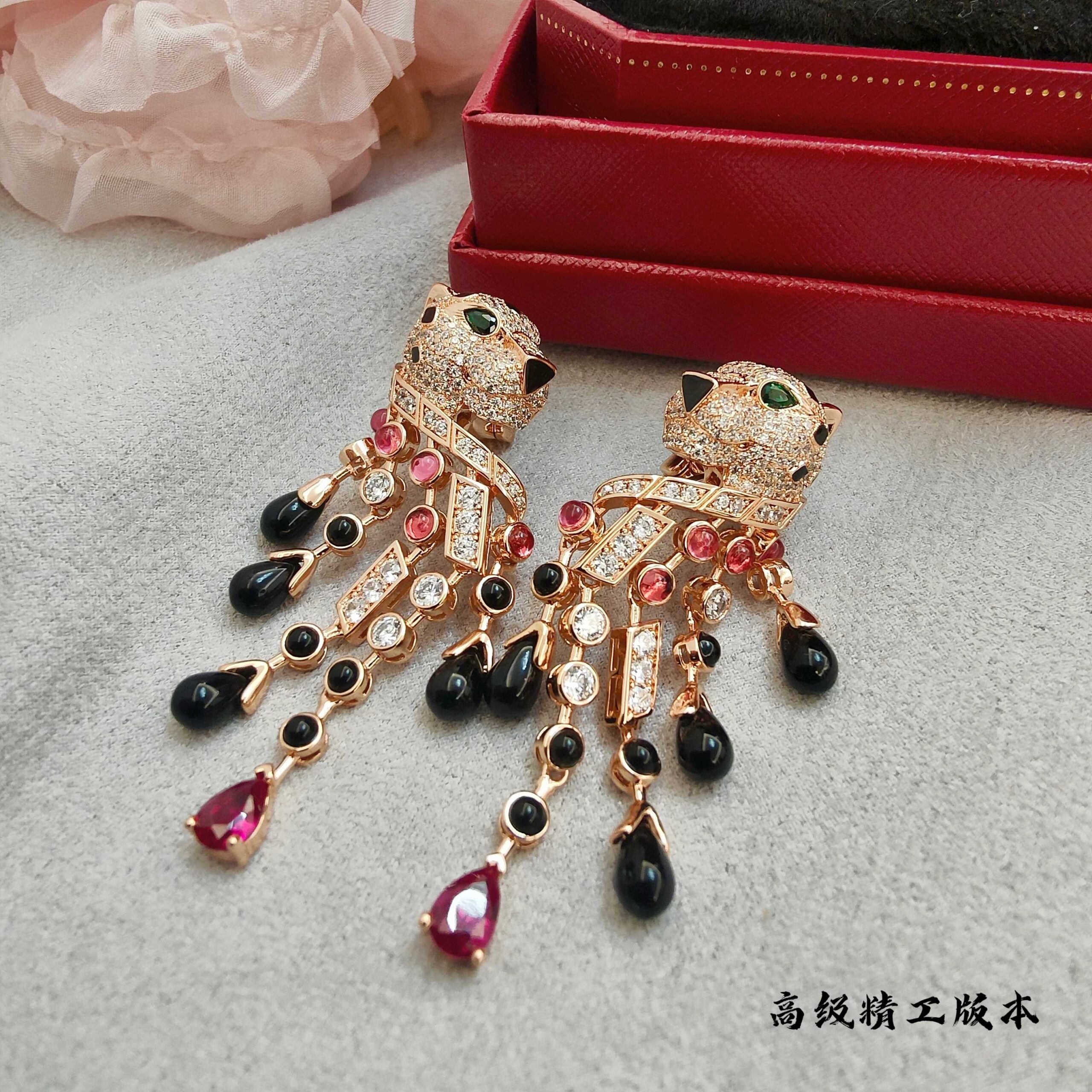 p2V gold high version Cartie Cartier black onyx red diamond leopard earrings, super domineering leopard, each product is carefully crafted by master craftsmen to present the most perfect product! Absolute poison level!
