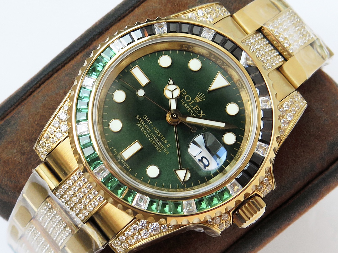 ROF’s luxury masterpiece, a customized version of the Rolex GMT Master II set with diamonds on the back! It is the best choice for luxury, sparkle and classic trend! [Case] ​​Watch size 40mm. Every diamond and colored gem comes from Austria (the origin of Swarovski) and undergoes strict screening to ensure uniform color, size and fire, and is carefully set by ROF jewelry setters. [Movement] It adopts the 2836GMT automatic winding movement widely used in the replica industry. The king of ROF cost-effectiveness is here, please appreciate it from all watch friends.