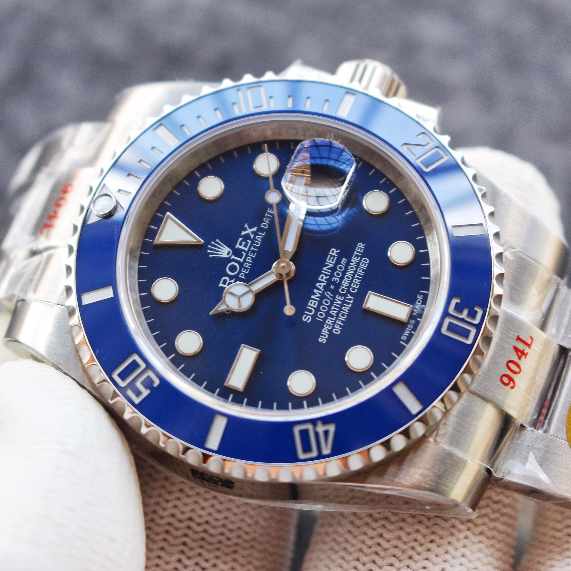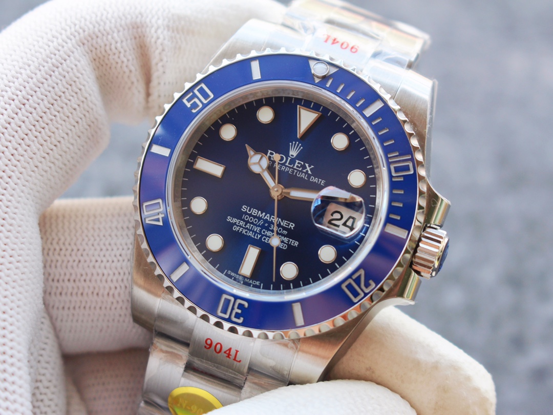 The Rolex Blue Submariner is by far the most powerful Submariner ~ the top version is made of finely polished 904 steel and is more comfortable to use. The ceramic ring is synchronized with the authentic wear-resistant sapphire mirror and is paired with a coated calendar magnifying glass. The Swiss luminous material shows synchronized authentic super blue-green luminous light. The 6-digit anti-counterfeiting crown logo is hidden on the mirror surface, making it suitable for everyone to wear. Unique inner wall engraving exclusive to the original Water Ghost series. Double inner shadows