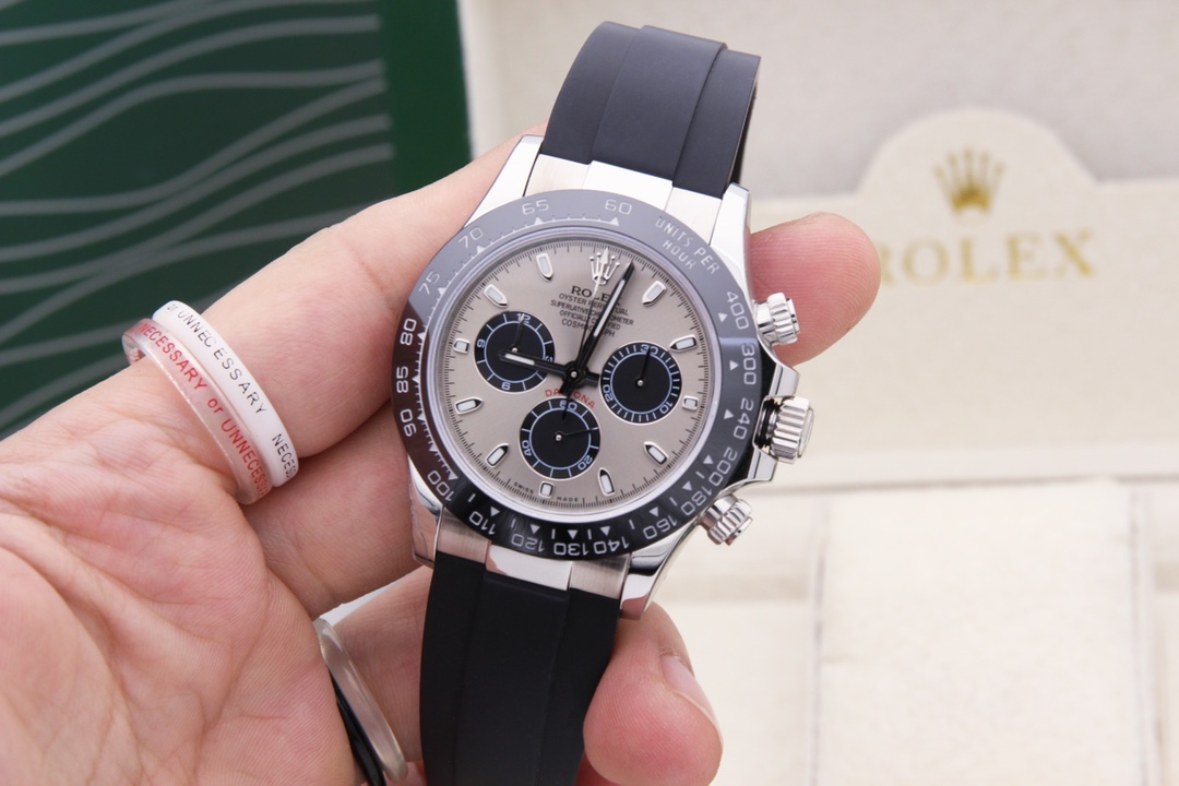 Rolex Daytona Series Type: Top luxury Cosmograph Men’s Automatic Mechanical Watch Mirror: Imported sapphire crystal Mirror Hands: Hours, minutes, seconds, 3 small seconds Surface: Gray surface with black eyes Case: 3mm×automatic (all counters have complete styles_all equipped with counter transport box tag cards_detail processing can be comparable to the original_GTG products are not afraid of counter comparison)
