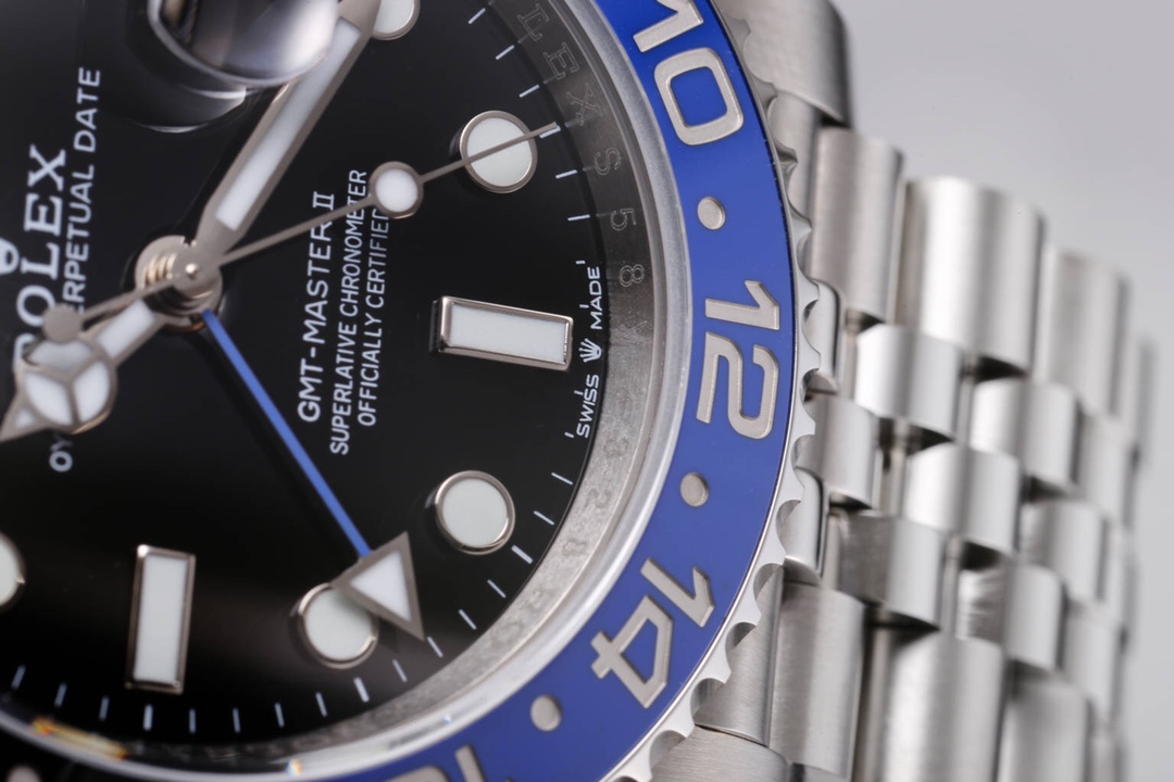 Rolex GMT Greenwich red circle and blue and black circle upgraded version. Made of genuine 904L steel, the one-piece ceramic bezel is consistent with the genuine product, 40mm, 904L steel case bracelet, sapphire mirror, super luminous, ceramic rotating bezel, original folding clasp.