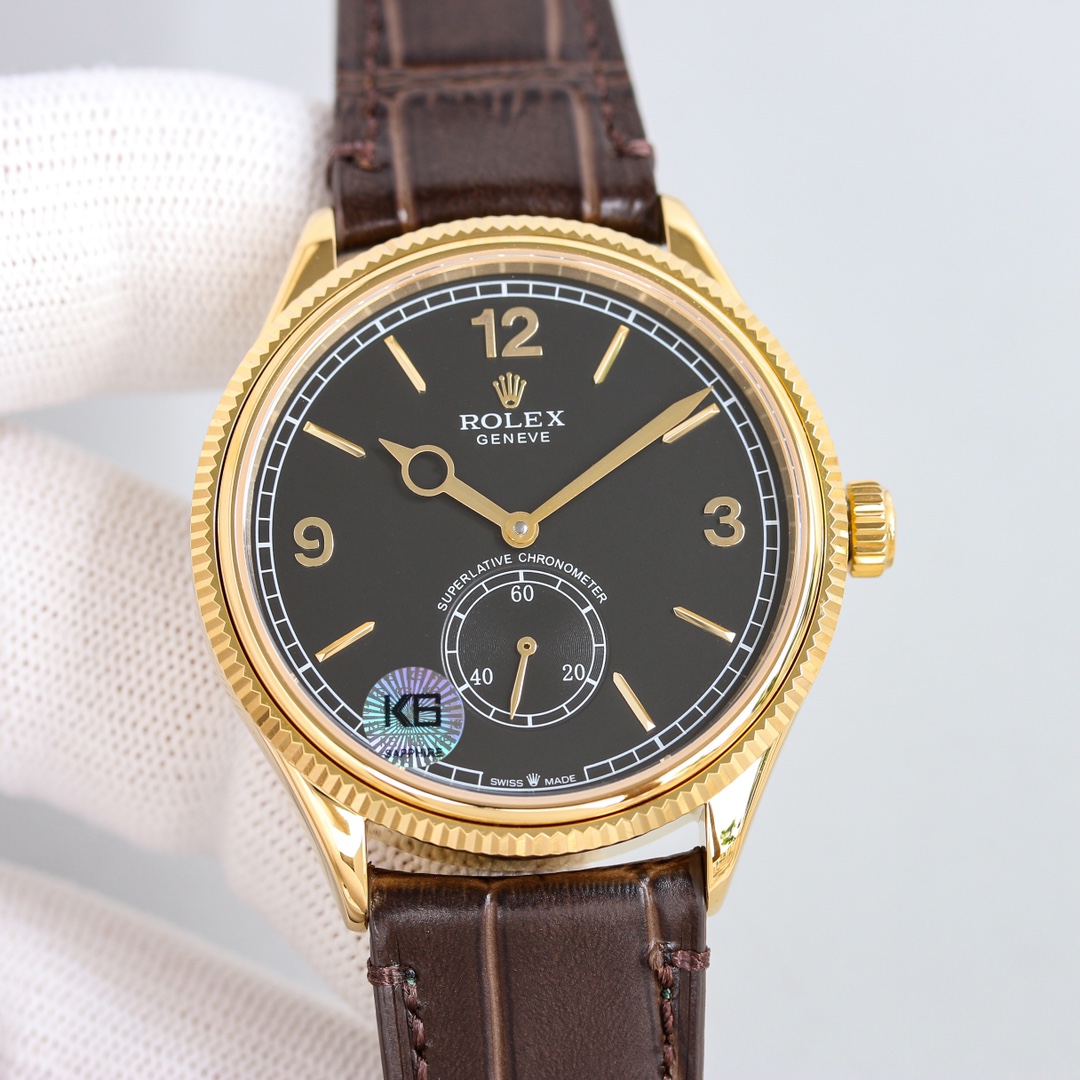 Rolex Perpetual 8 model from Rolex, m52508-0006 small second watch, is Rolex’s first transparent watch in hundreds of years. Watch size: mm. Exclusively customized Cal.7 original movement. The function and appearance are consistent with the original; the travel time is accurate and stable! 3. Red gold technology, the thickness reaches the standard of gold-plating, and the weight of the watch is optimized! 4. Made with Italian calfskin and double pleated buckles, the leather is soft and delicate and fits your wrist better, giving you a comfortable wearing feel! Inheriting craftsmanship and focusing on quality products