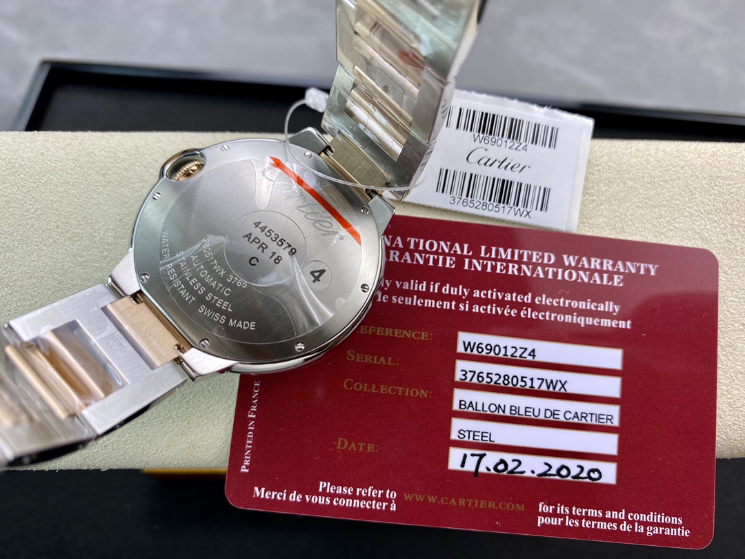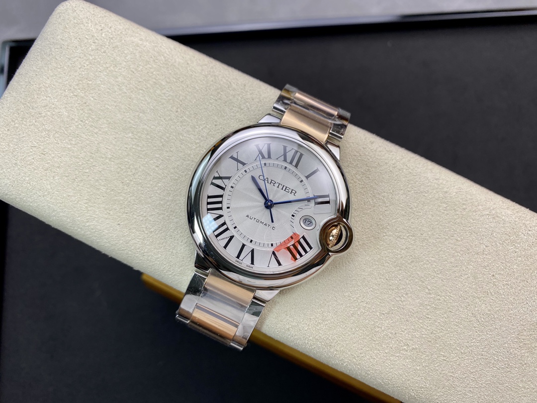 The rose gold blue balloon 42MM enjoys the prosperity of the world. The elegance of the blue balloon allows you to feel the true charm of the Cartier blue balloon! ! ! Cartier Blue Balloon 42mm series W690Z4 watch (stainless steel-silver white dial, silver-plated guilloché dial, sword-shaped steel blue hands, 2824-2 fully automatic mechanical, 42 mm).