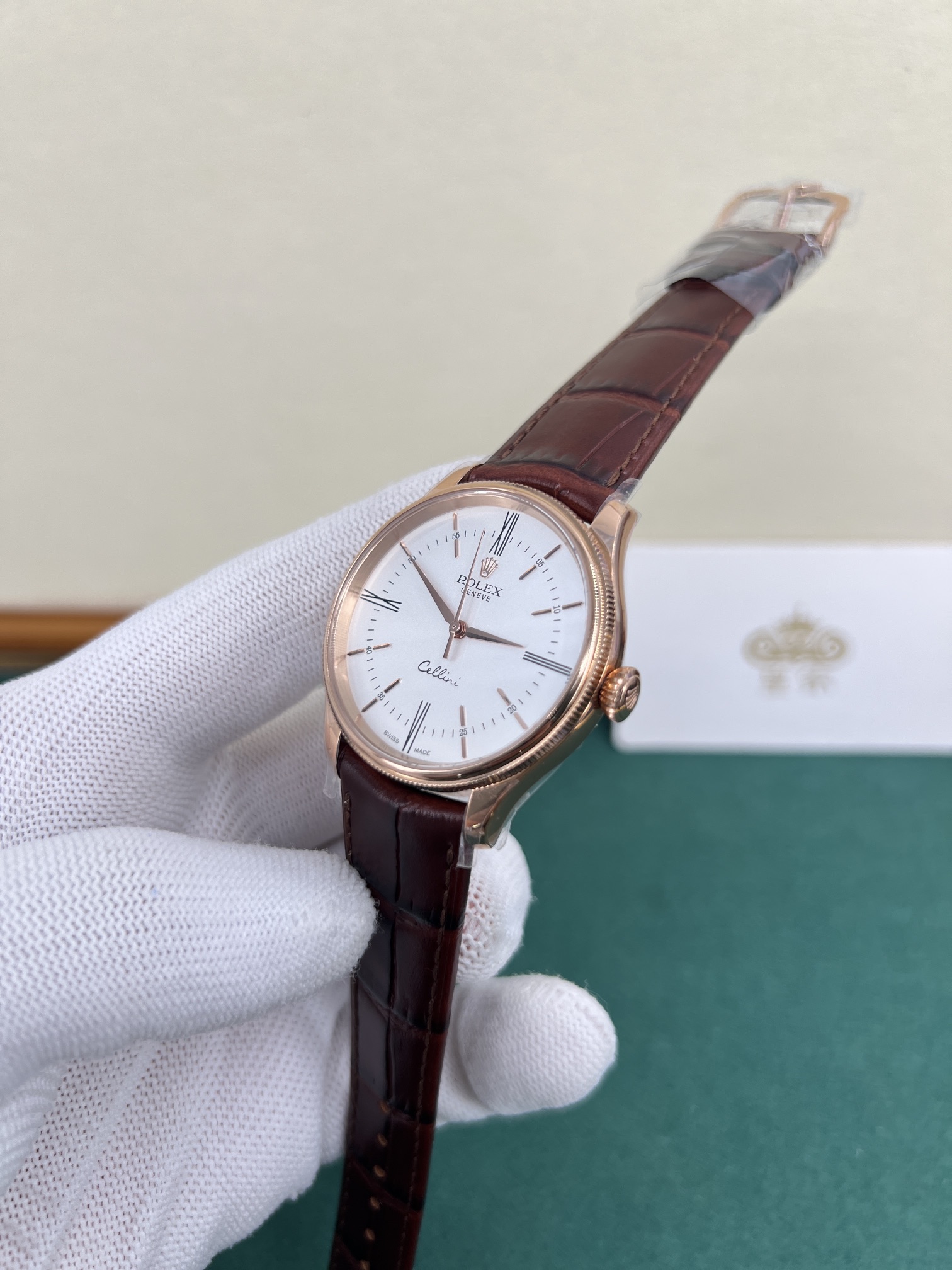 Royal real shot Rolex Cellini series, rose gold Roman numerals