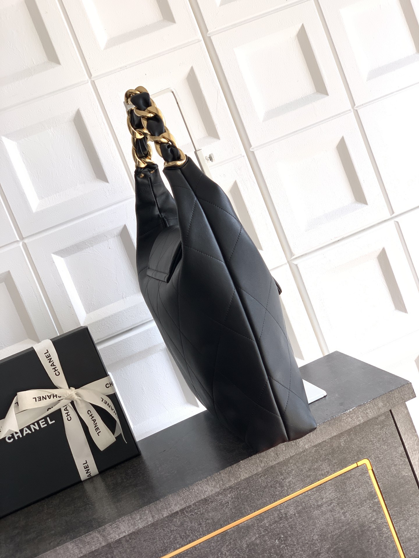 Size 970: X47 X9cm OHANEL 25K hippie hobo bag! Autumn and winter catwalk style hobo maxi! Extra large size ten thick gold chain! A style that is suitable for both men and women with full aura, shiny calf leather “delicate and soft” hobo bag shape “lazy” thick chain “cool”! From commuting to the workplace, to going out, it has its own fashion script. The double C buckle is inadvertently low-key and sparkling. The capacity space can satisfy commuting and can store an iPad! Size: X47 X9cm