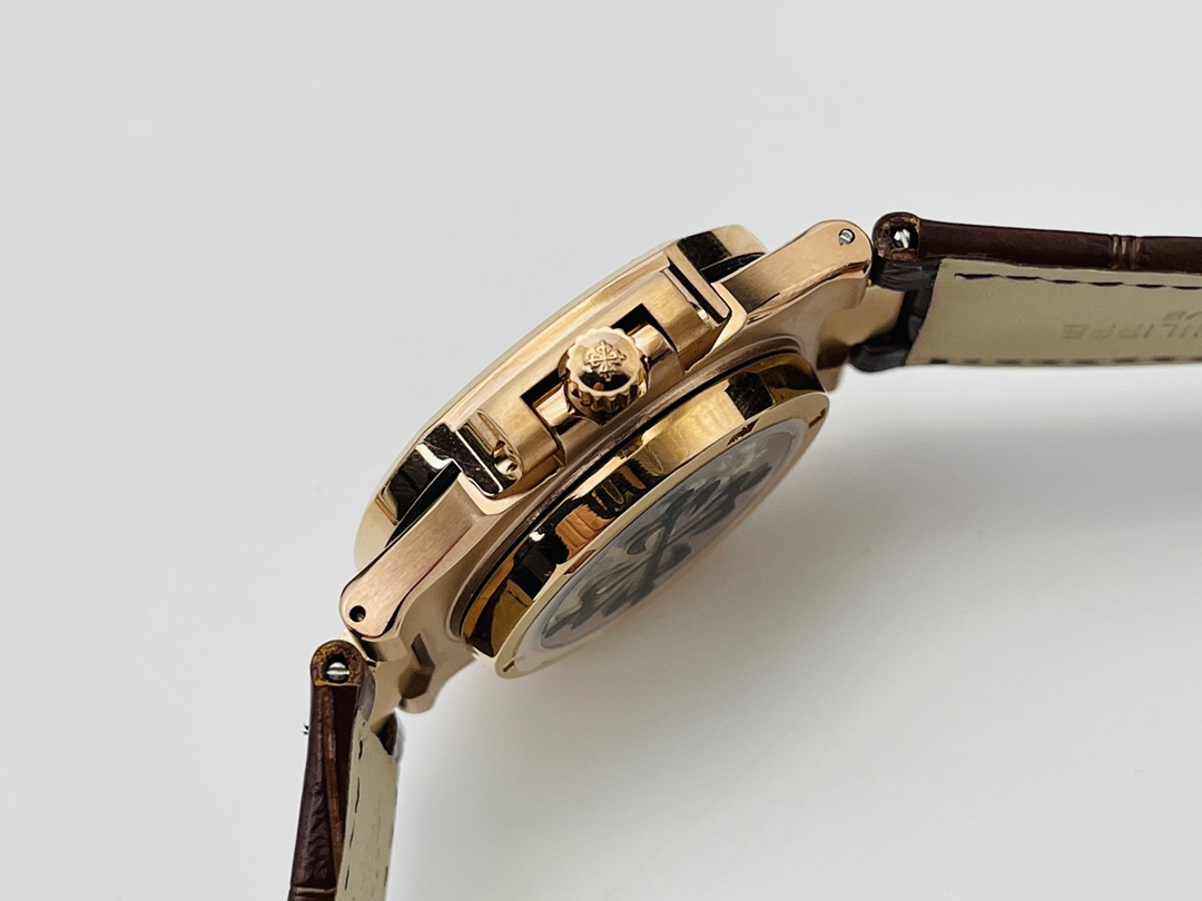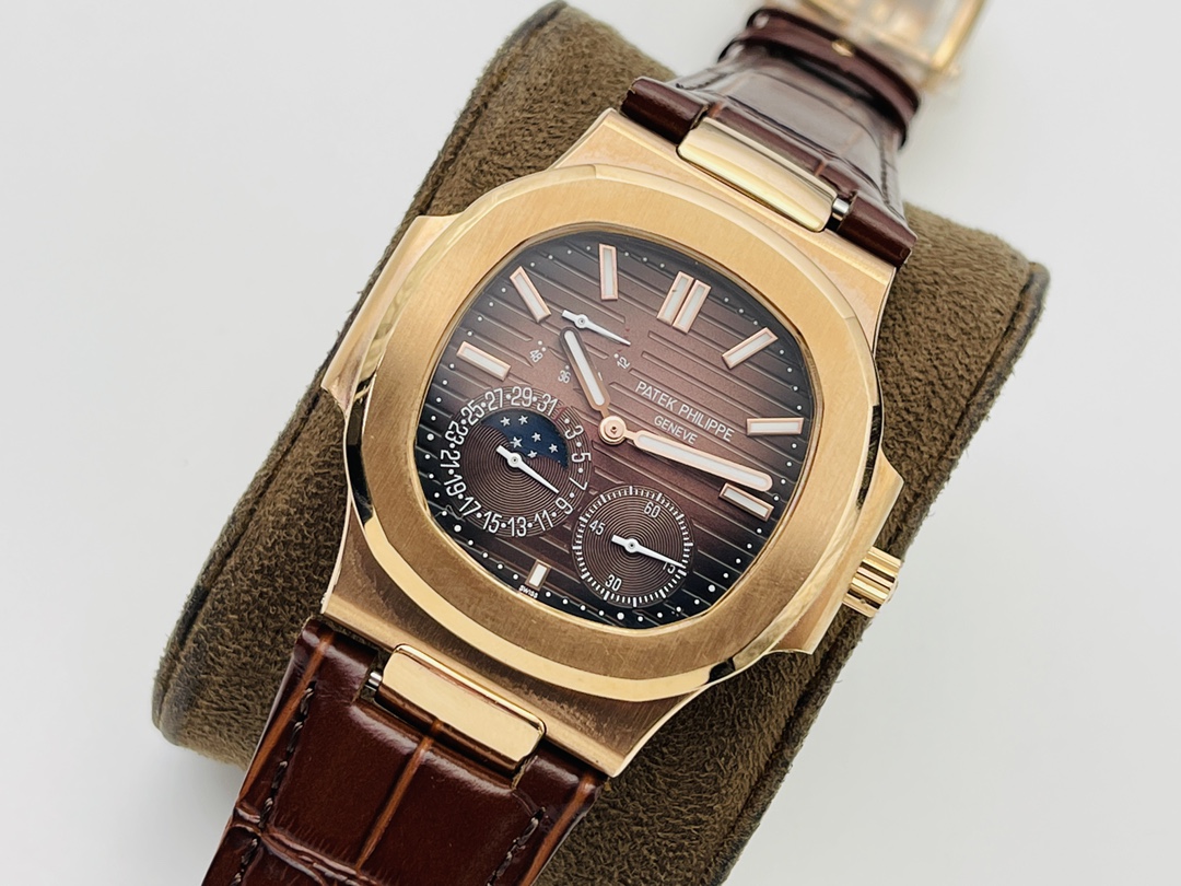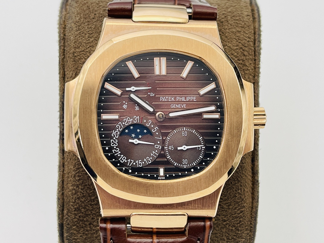 Sports Series (Nautilus) 5724 (Domineering President) Upgraded Pearl Top! Dynamic energy display, 7-digit calendar and moon phase, 4-digit small seconds), the same horizontal embossed pattern as the original, with fluorescent scales! 2⃣️Diameter 40 mm, 904L gold-plated stainless steel, sapphire glass mirror. The outer diamonds of models 722 and 5724 are Swarovski diamonds, which are transparent and shiny, with extraordinary temperament. As close to the original as possible within the current state of the art, this watch is ready for all occasions! PFF Factory’s ingenious work welcomes your appreciation!