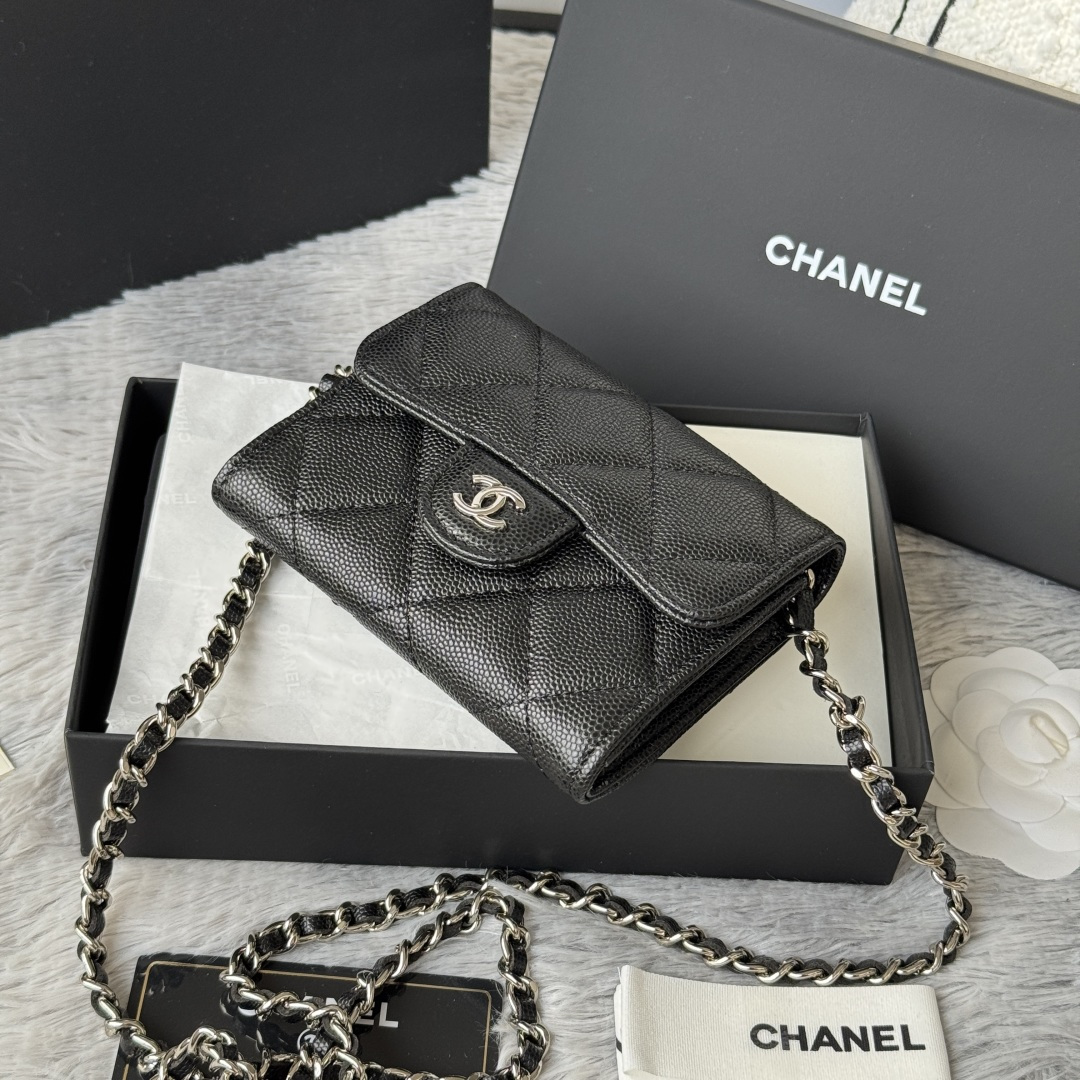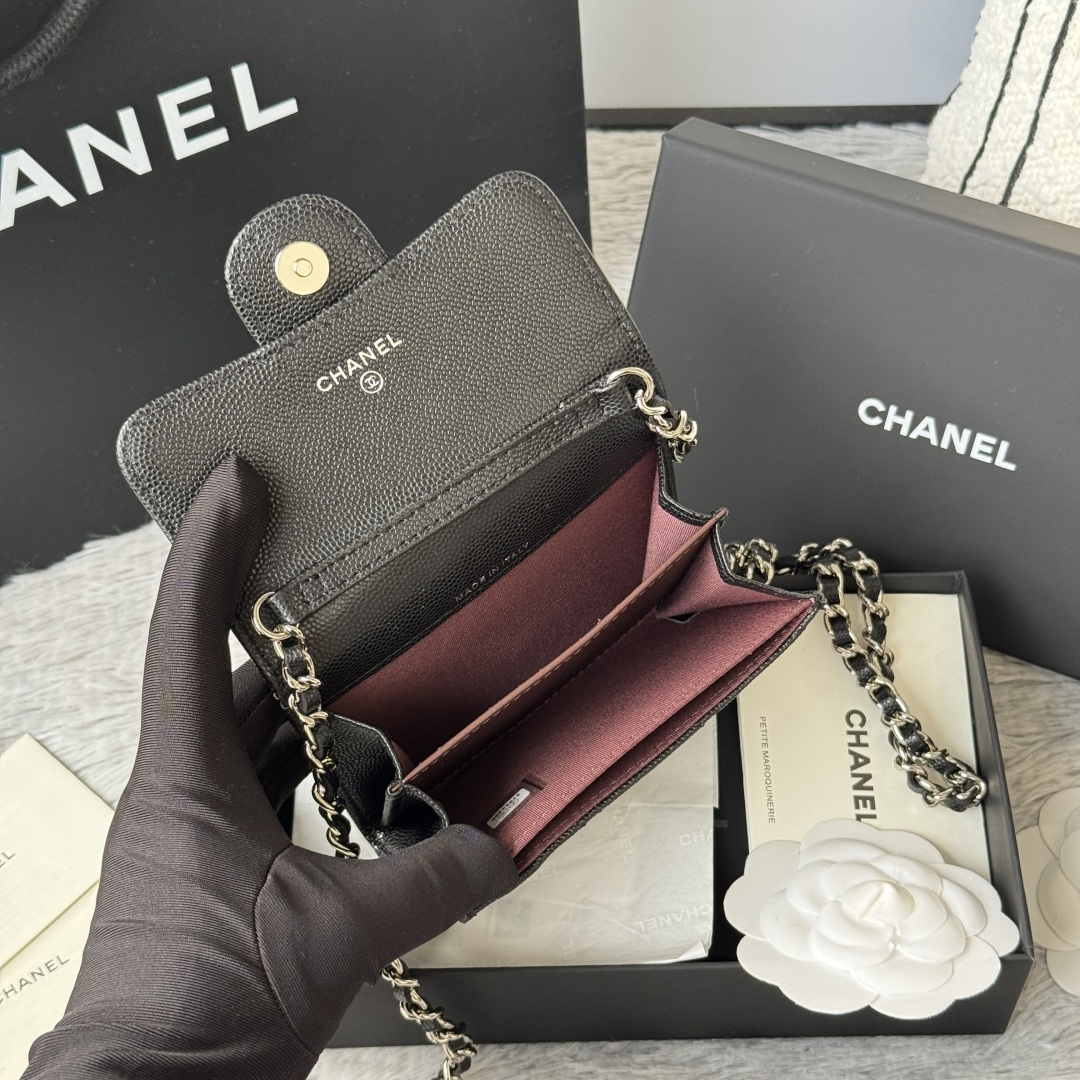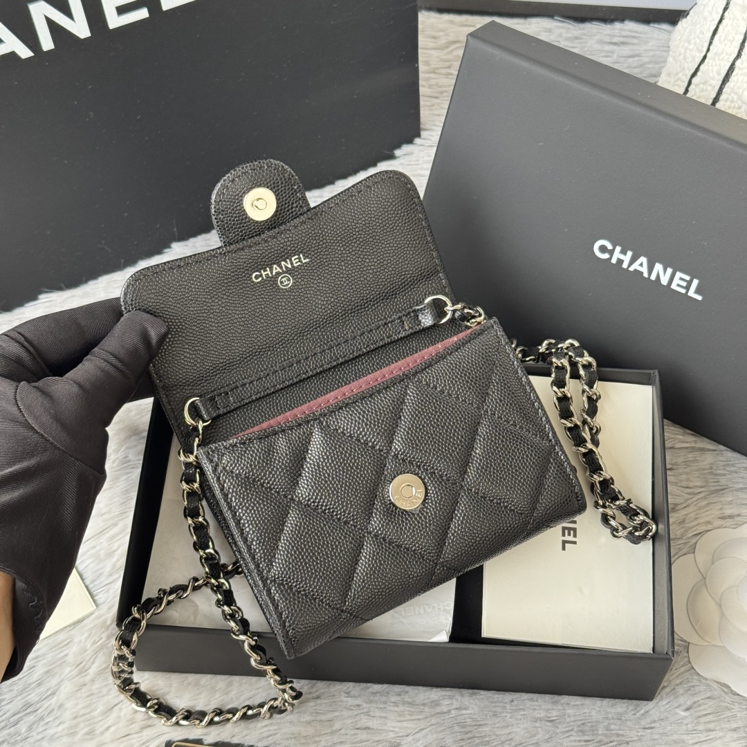 250 SS25 newly upgraded small fragrance chain bag with magnetic suction buckle, made of caviar cowhide, can hold lipstick, credit card and some small change. No.: 02.52.5cm full set of packaging, box card, ribbon and cloth bag all have exclusive photos