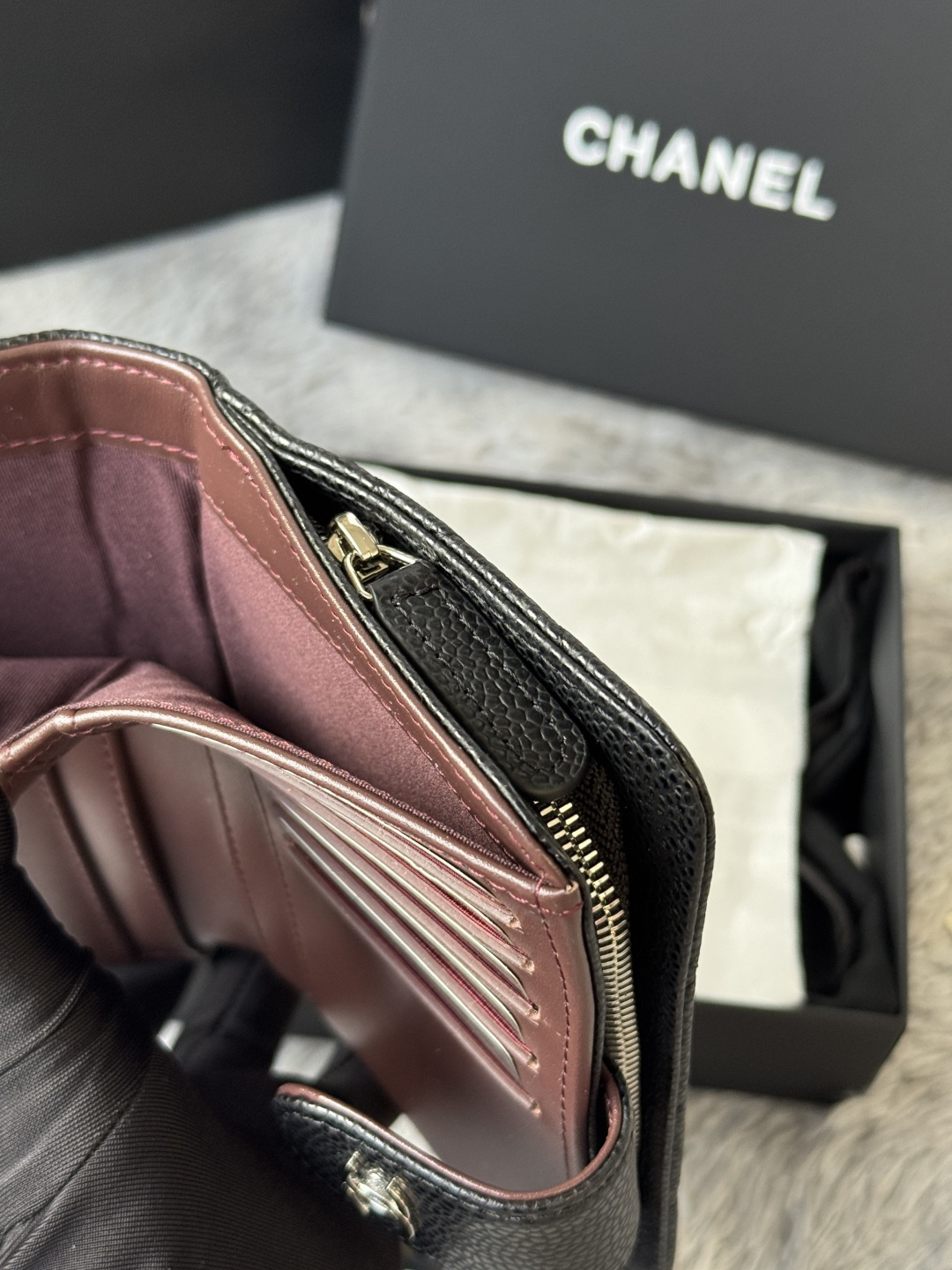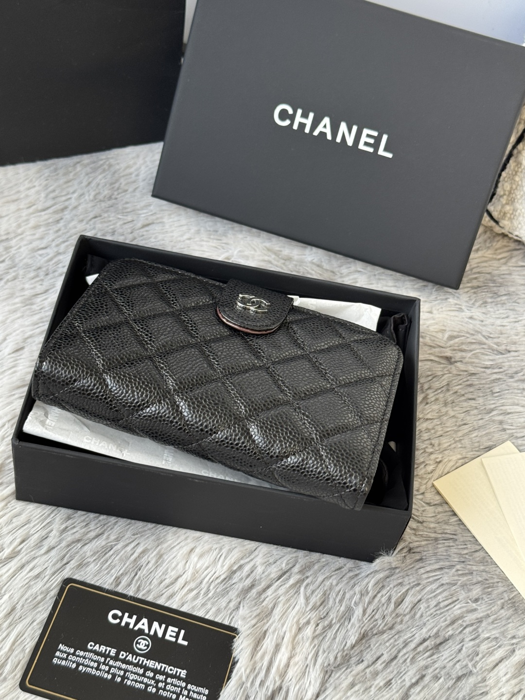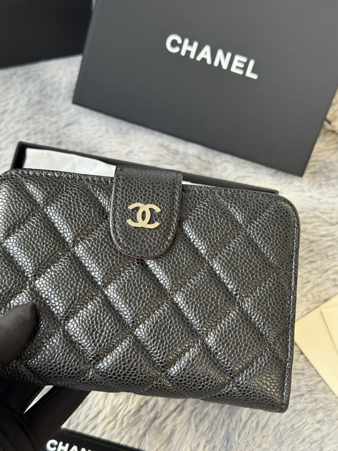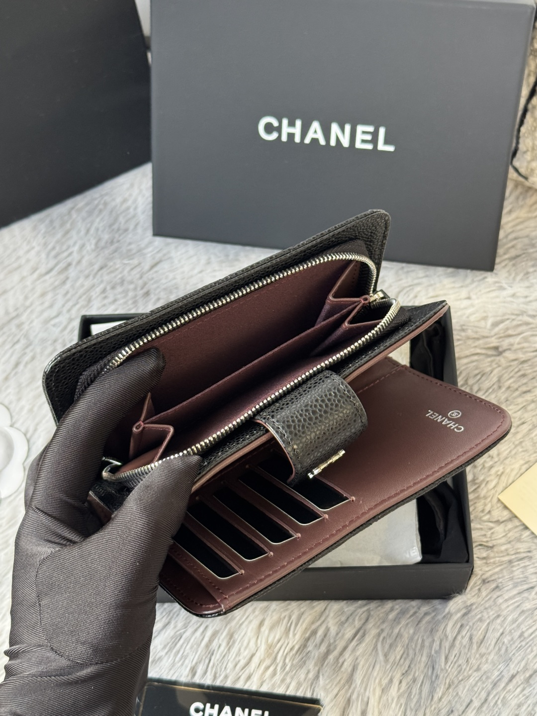 240 Classic Medium Double Layer Wallet Arrived! The rhombus pattern of imported cowhide with caviar ball pattern is very eye-catching! Bright gold hardware is so trendy! The card slot is very high-end and is out of stock at the counter. It can hold credit cards, coins, hundred-yuan bills, and snaps. Item number: A48667. Height: w×d2.5cm.