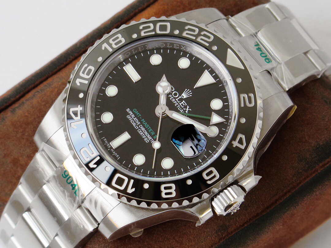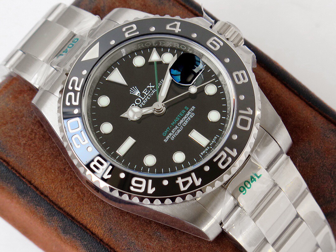 The GMT-Master II GMT series watches launched this time are made of LN_ BLNR_ m mm 4-millimeter consumable stainless steel, which restores the excellent structure of the genuine consumable case. It is first-class polished and has the same waterproof performance as the genuine product. 2. Equipped with a high-tech two-way rotating ceramic bezel. 3. With traditional hour, minute and second hands, triangular arrow 24-hour hand, and two-way rotating outer ring. Can display two time zones at the same time. [Movement] It uses a three-blue hairspring integrated movement. The debugging and winding are consistent with the direction and feel of the original movement.