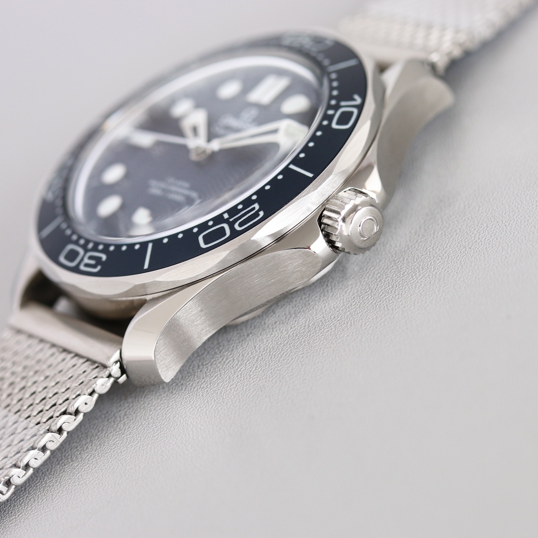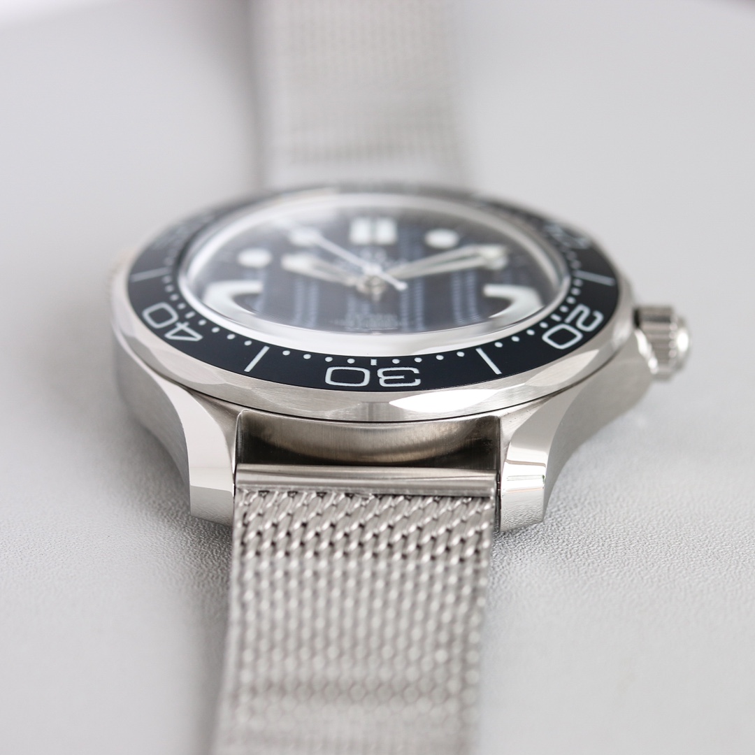 The latest Bond 60th Anniversary Edition is released! The ring mouth is the same as the original version, the two-color luminous ring and dial! 007 movie “No Time to Die” themed version watch – “Seamaster Diver 0M 007 Edition”, this watch is designed by OMEGA and Bond actor Daniel Graig Designed in cooperation, the retro and solid style is eye-catching. The 42mm case is made of a material that is often used in space technology. It is strong and ultra-light. The exquisite blue dial is equipped with hollow rhodium-plated hour and minute hands, which contrasts with the aluminum “lollipop” minute hand covered with white lacquer. Pot lid with sapphire glass. It is equipped with the customized replica 8806 integrated movement exclusively developed by AG Factory. AG Factory takes you to experience the original texture. Comes with nylon strap. Factory quality!