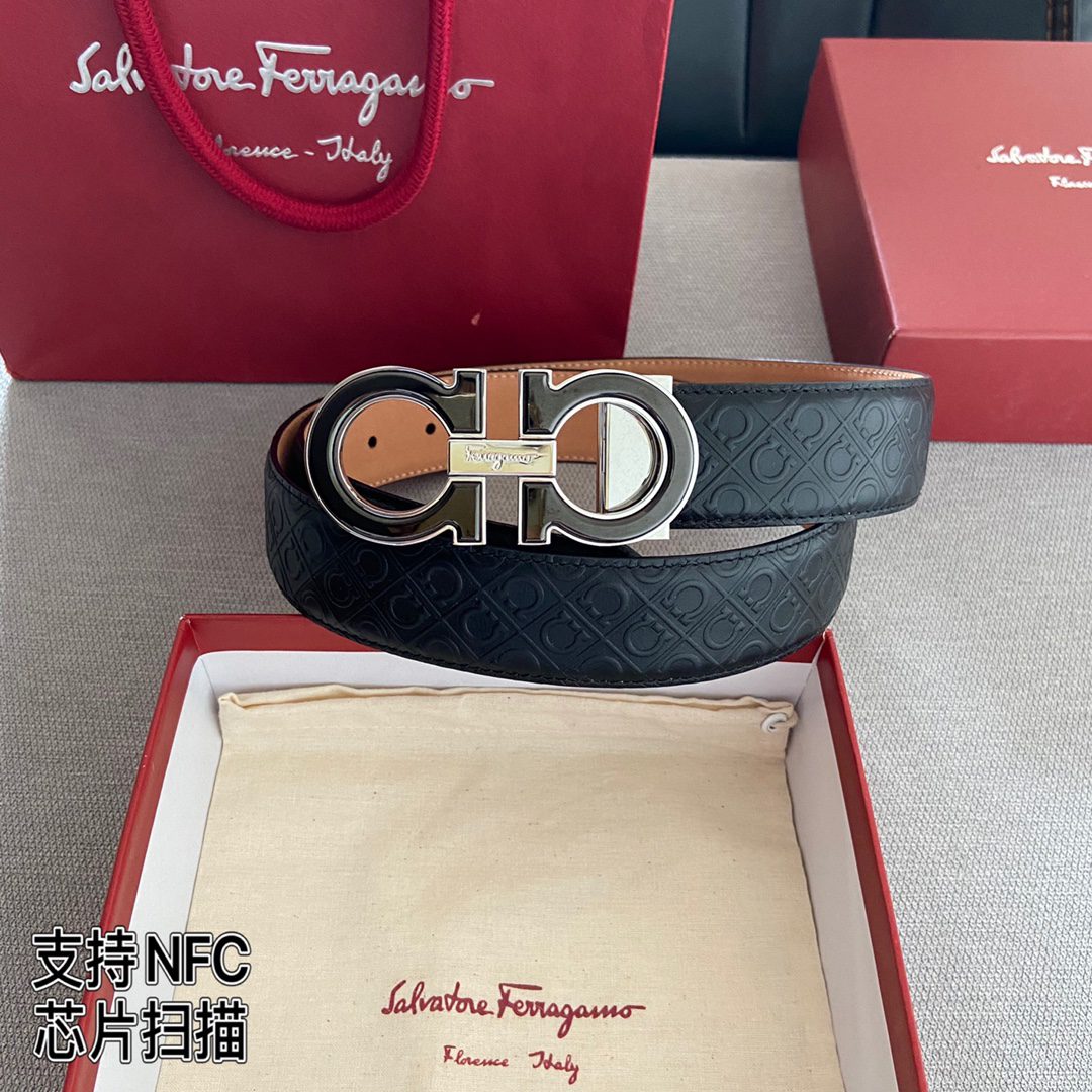 The new Ferragamo belt supports NFC and chip scanning! The original steel buckle is made of % imported original cowhide. The buckle is made of pure steel structure. It is durable and will never fade. It shows class and taste. With the new buckle, it is fashionable and versatile. It has excellent upper body effect and is versatile for leisure and business. Best choice for gift giving and personal use! Hot style, hurry up and share the picture. D