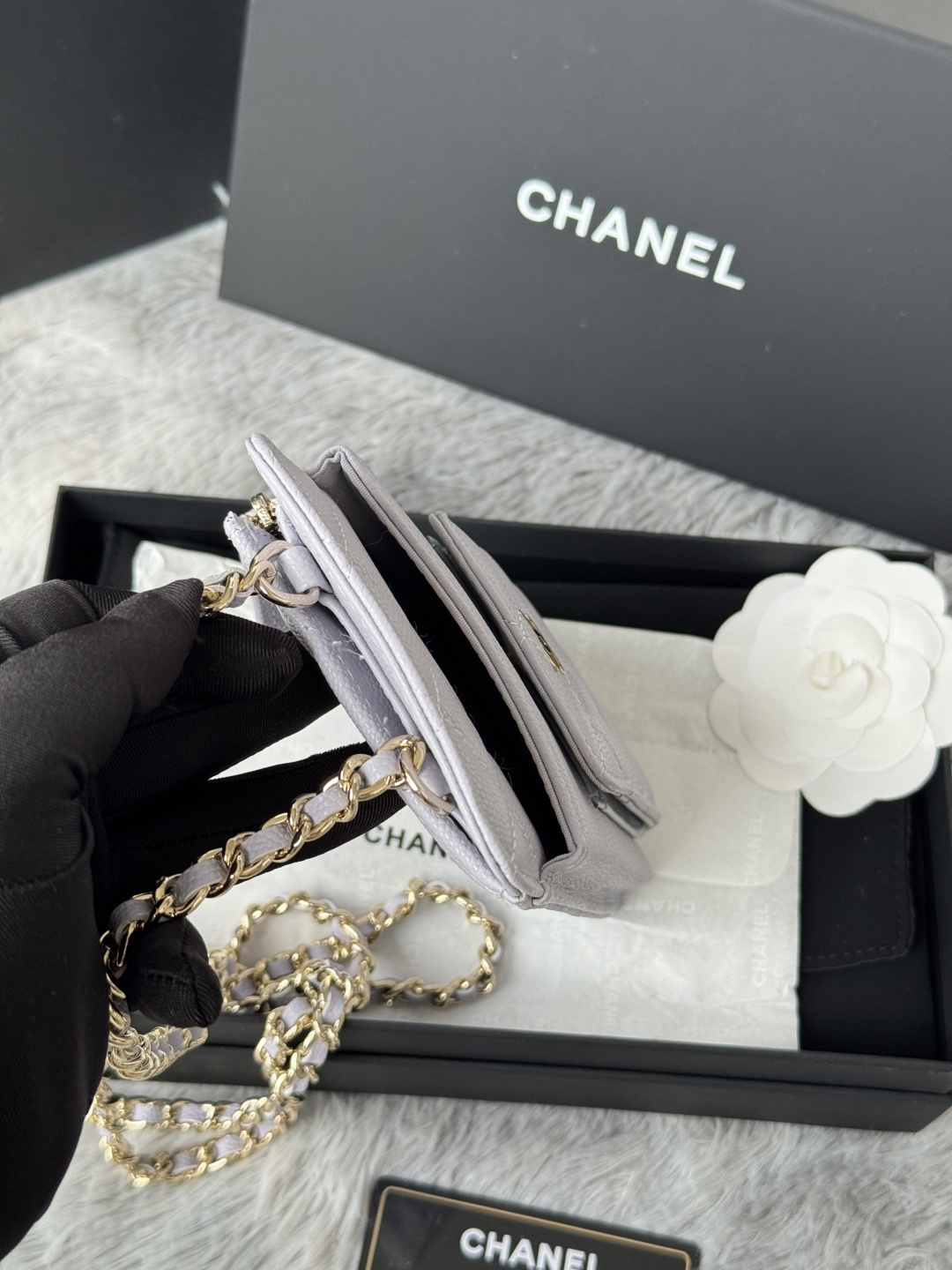 780 26C series blue suede CF bag, classic diamond pattern + light gold hardware, retro and high-end! The suede is