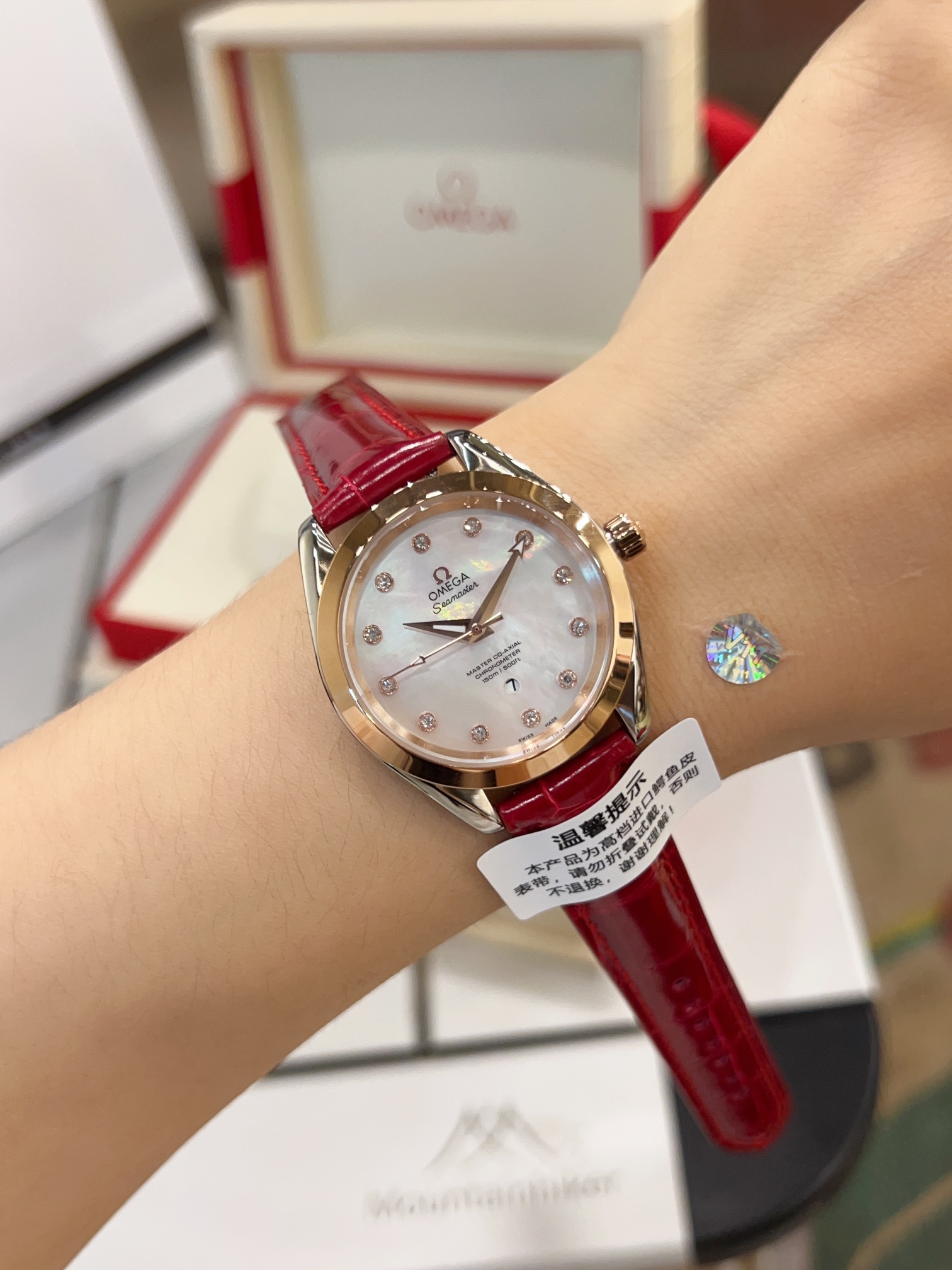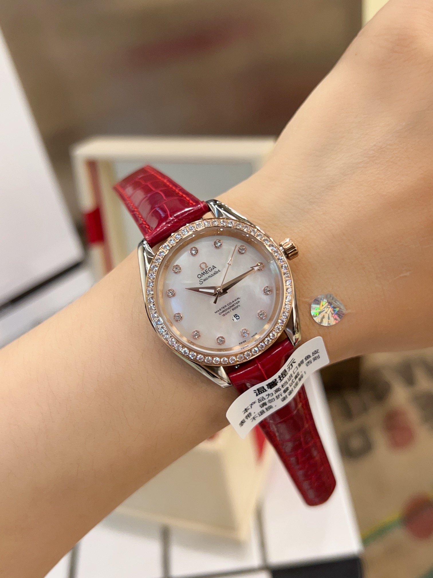 The new Oujia Haima series is a hit at counters, and will be available exclusively for the first time! The European Seamaster Aqua Terra women’s watch is set with brilliant diamonds, interpreting exquisite and charming style. This stainless steel watch adopts a symmetrical design, which is very delicate and exquisite! Equipped with a glossy deep-sea pearl oyster dial and rhodium-plated dot hour markers. The hands are also rhodium-plated, and the back of the case is embossed with the Omega Seamaster badge pattern on a corrugated background.