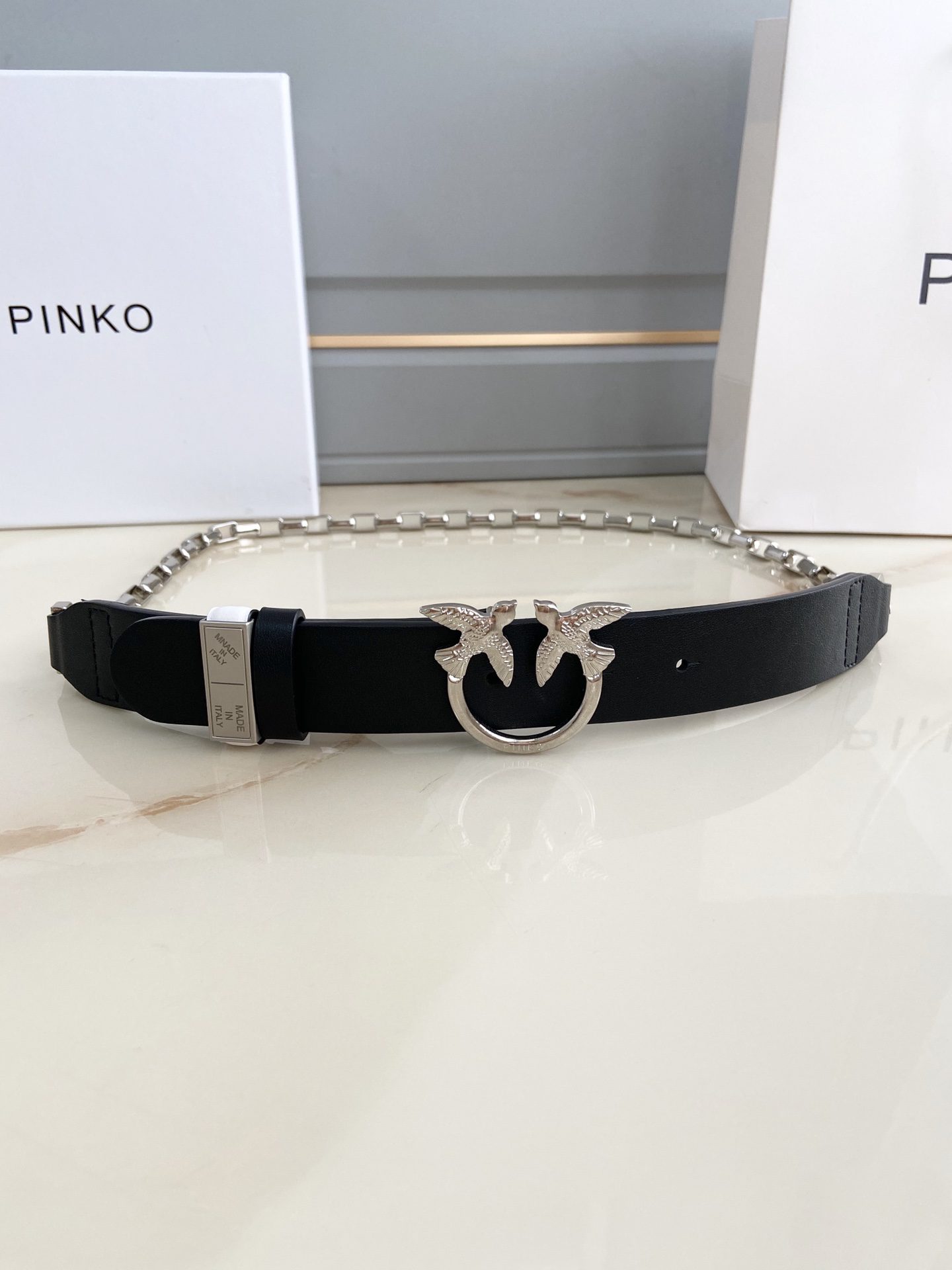Belt The official website of Yanzi PINKO is the latest women’s model. The strap is made of first-layer cowhide and is paired with a pure copper chain. The buckle is wide.