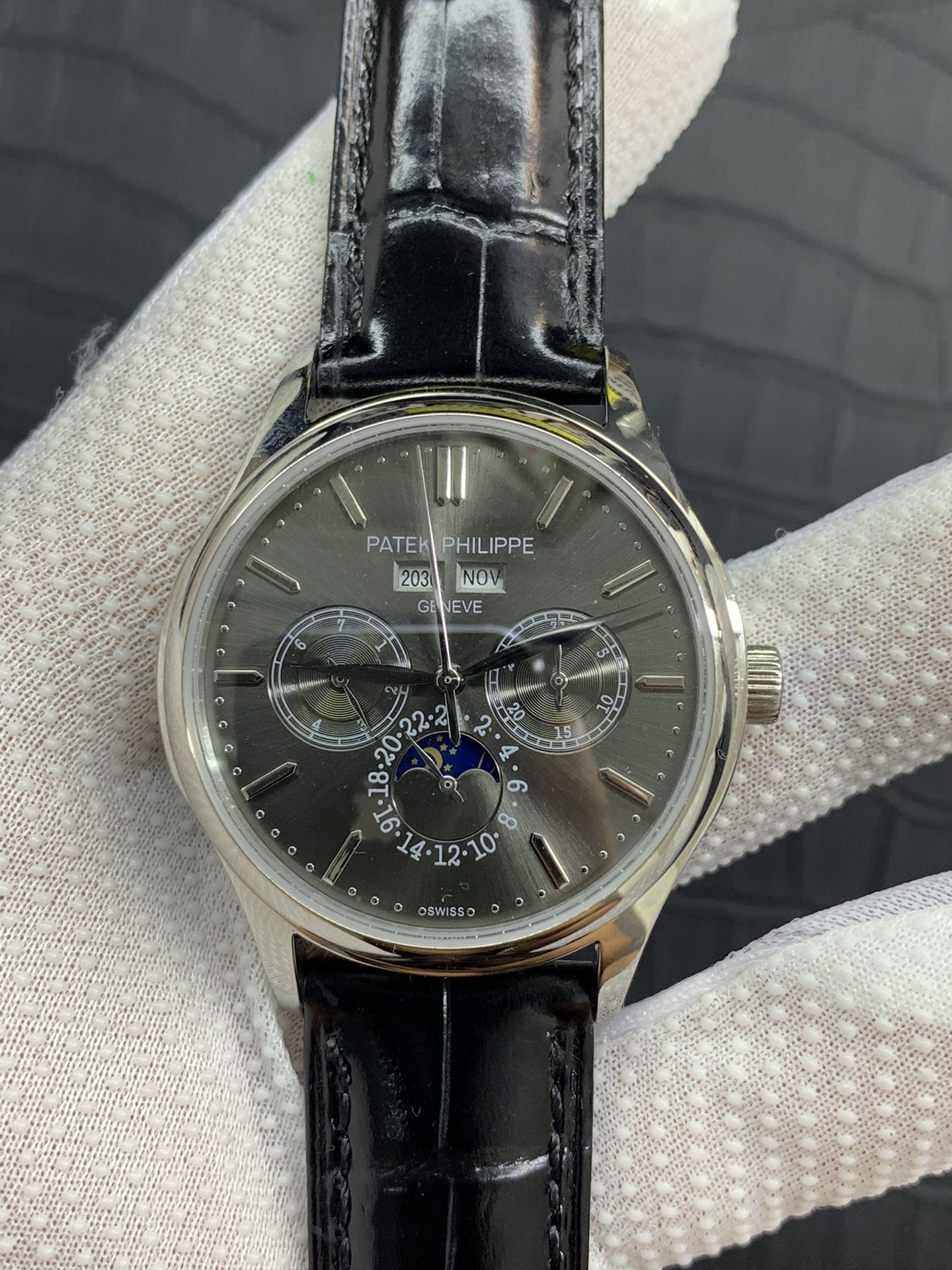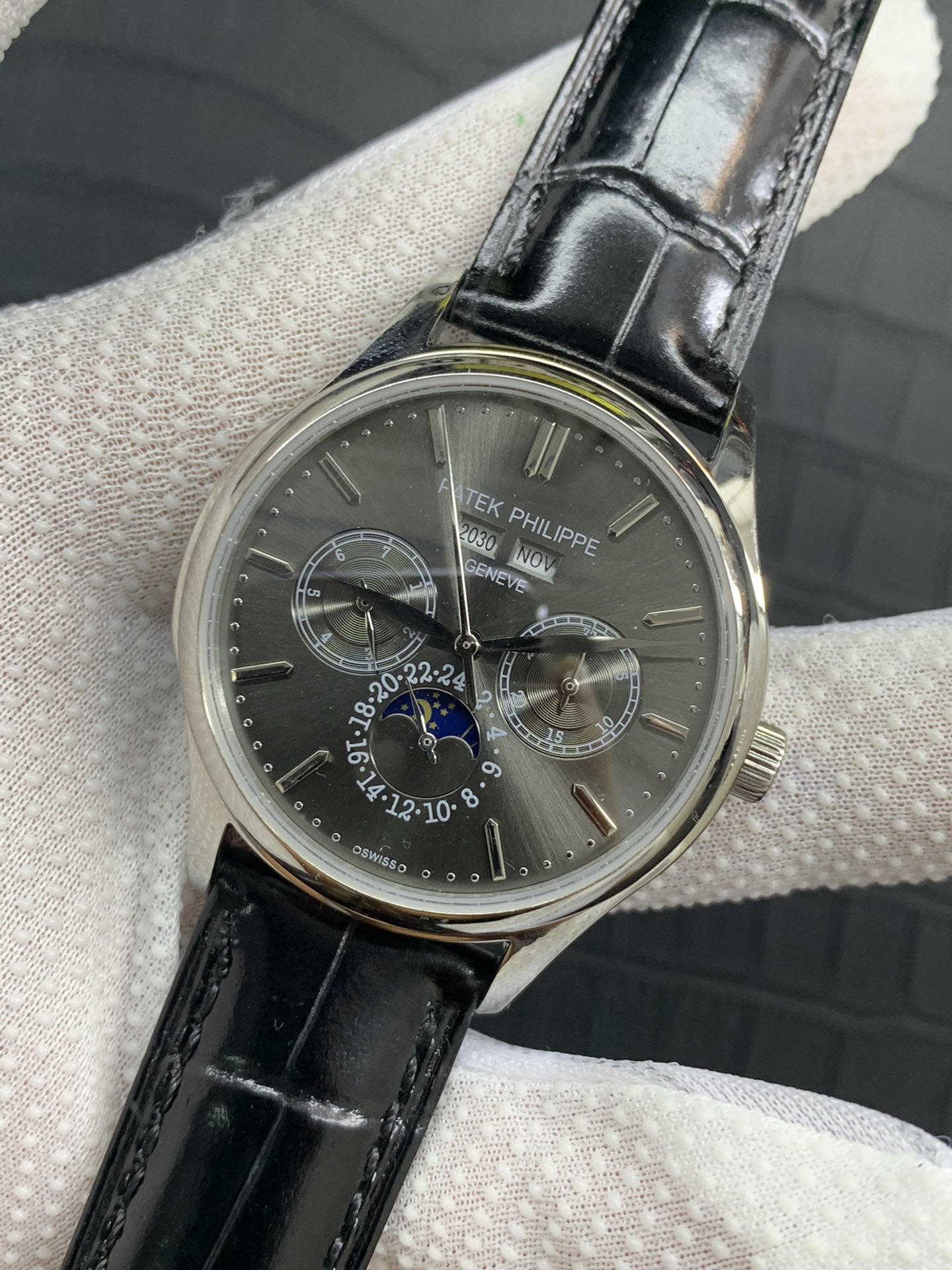The Patek Philippe super complex function chronograph series was carefully designed by the team for three years, regardless of cost, daring to be the first, striving for perfection, overcoming many difficulties, breaking through multi-layered technical bottlenecks, and designing for the first time a model that integrates complex functions such as year, month, week, calendar, moon phase, etc. The movement model is 29-5mm, and the thickness is A-level. Photographed in pure natural light. Zero P picture produced by AFD
