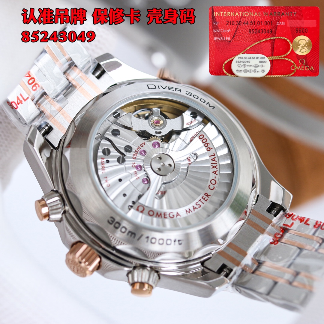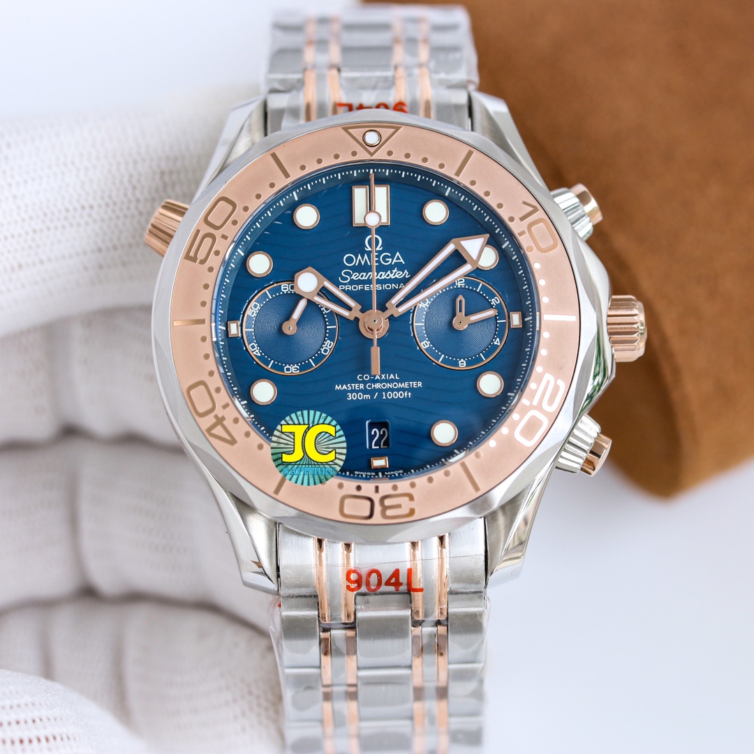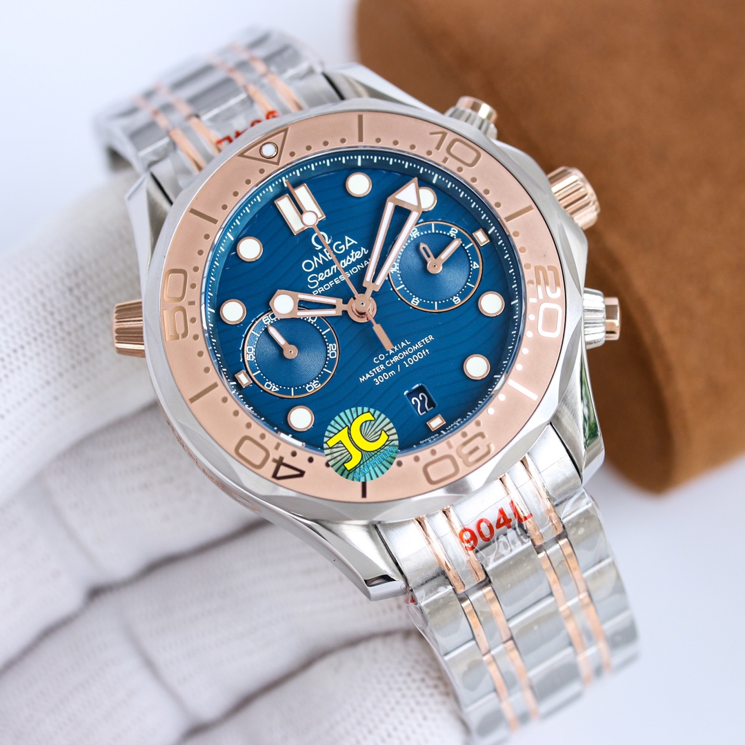 TW Europe’s new Marine Series 0m chronograph men’s watch is the highest version of the chronograph 0m chronograph movement currently on the market, with a 44mm 904 fine steel case and a natural imported rubber strap. OMEGA’s exclusive Sedna gold is naturally the most important decorative metal. You can see this charming and warm golden red on the bezel, crown buttons, and dial. The scale ring of the bezel is laser-ablated to create a sandblasting effect, and the polished numbers and scales protrude like reliefs. 2: The blue zirconia ceramic dial is decorated with a wavy texture, with hollow hour and minute hands and a central chronograph second hand. It has a 0-Zhizhen Observatory self-winding movement with a swing frequency of 20.28800 vph. Double barrels in series provide a 60-hour power reserve. The sapphire case back is decorated with a white lacquered OMEGA seahorse pattern.