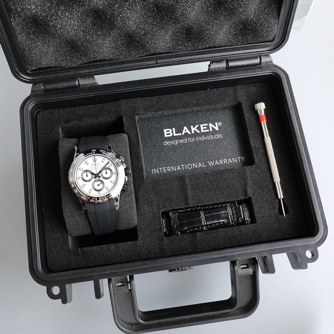 Ultra-thin upgraded rainbow diamond mm high-end quality real shot! All Black Steel Rainbow Daytona! Using the latest improved version of the movement (non-market 4L stainless steel polishing, each case is fully CNC processed with all details, and then polished and inspected through manual processes to ensure fine workmanship!! The ultra-thin movement is mechanical, the timing function is synchronized with the counter, and the strap is equipped to prevent The adjustable Oyster safety clasp and elegant solid link strap are comfortable to wear and very easy to operate! ⌚️ Comes with BLAKEN fever modification storage box tool and a pair of valuable straps! (If the accessories are lost, they are not refundable!) A sincere work, all watch friends are welcome to taste it!