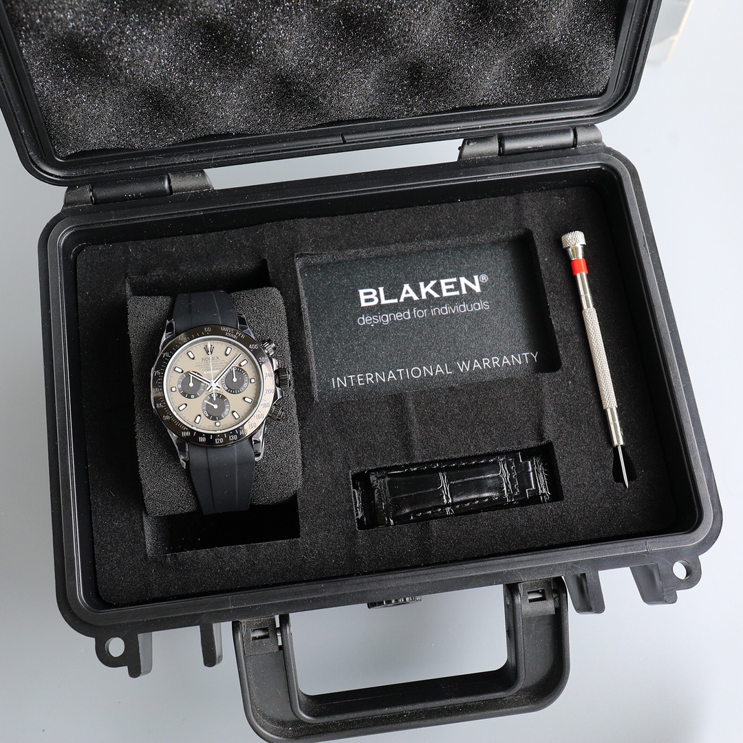 Ultra-thin upgraded rainbow diamond mm high-end quality real shot! All Black Steel Rainbow Daytona! Using the latest improved version of the movement (non-market 4L stainless steel polishing, each case is fully CNC processed with all details, and then polished and inspected through manual processes to ensure fine workmanship!! The ultra-thin movement is mechanical, the timing function is synchronized with the counter, and the strap is equipped to prevent The adjustable Oyster safety clasp and elegant solid link strap are comfortable to wear and very easy to operate! ⌚️ Comes with BLAKEN fever modification storage box tool and a pair of valuable straps! (If the accessories are lost, they are not refundable!) A sincere work, all watch friends are welcome to taste it!