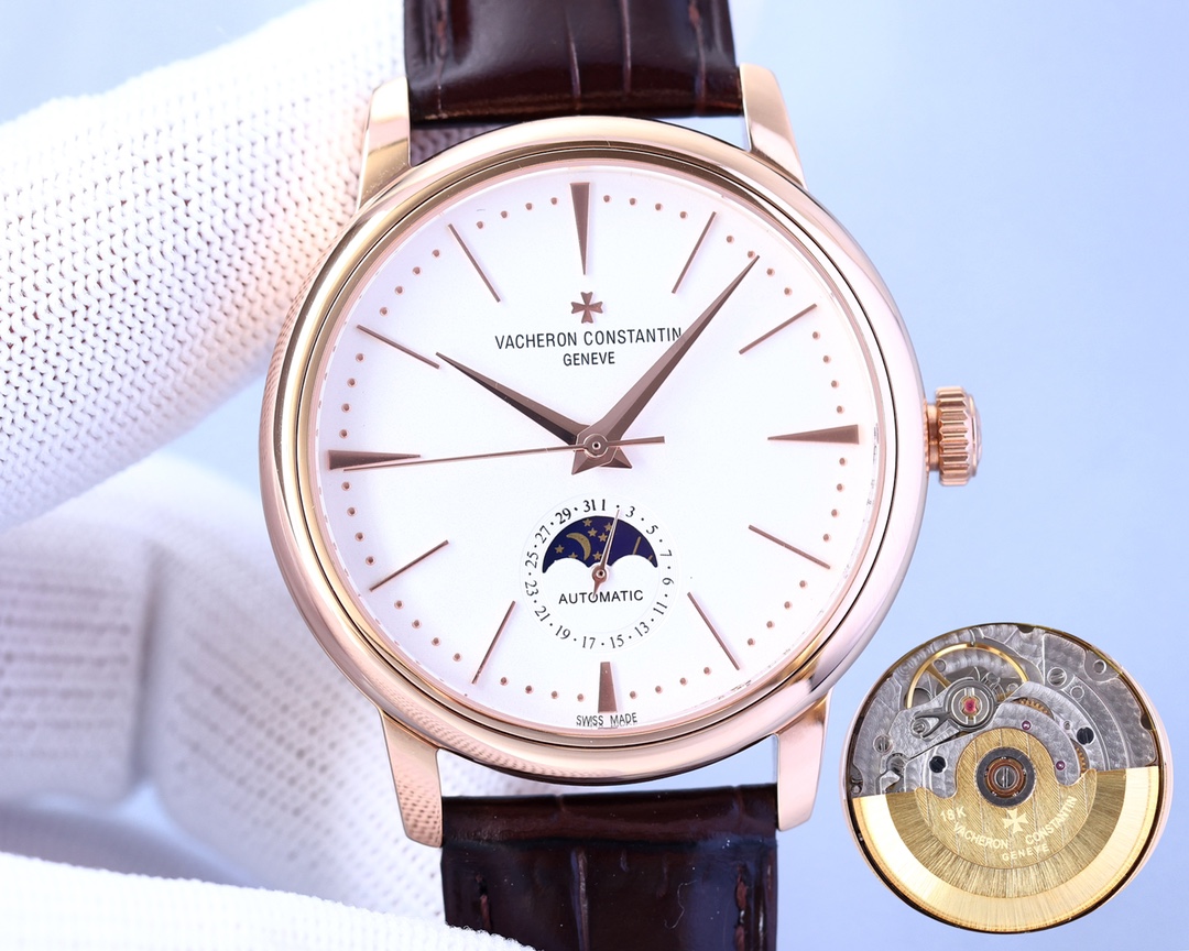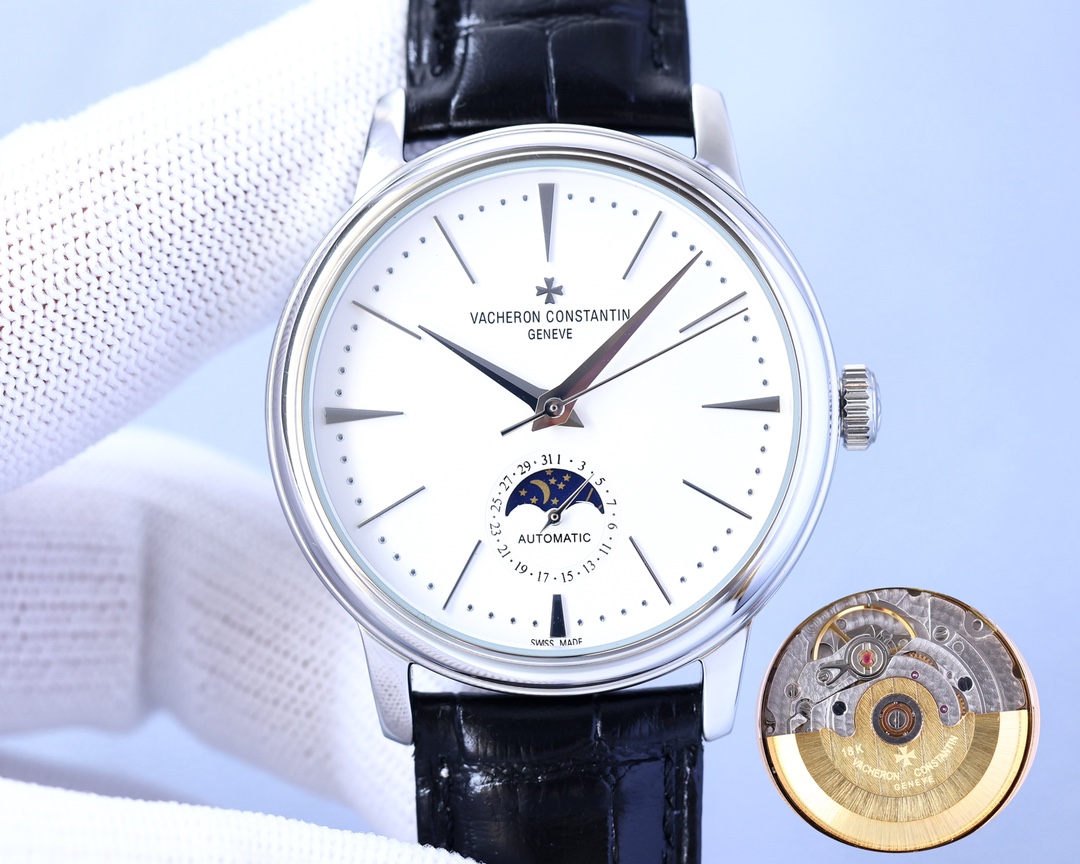 2025 Vacheron Constantin [VACHERON CONSTANTIN] Heritage Series Men’s Watch! Brand new complex sun, moon and stars multi-function watch with super luminous light. Equipped with the original imported 2824-2 self-winding mechanical movement, it integrates month display, sun and moon phase display and other functions. It is perfect. It adheres to Swiss watchmaking technology, all-steel nano-plated platinum watch technology, PVD furnace electroplating process, French sapphire scratch-resistant mirror, imported Italian calfskin with original buckle, creating a top-notch perfect product, size: 40mm, top-quality products.