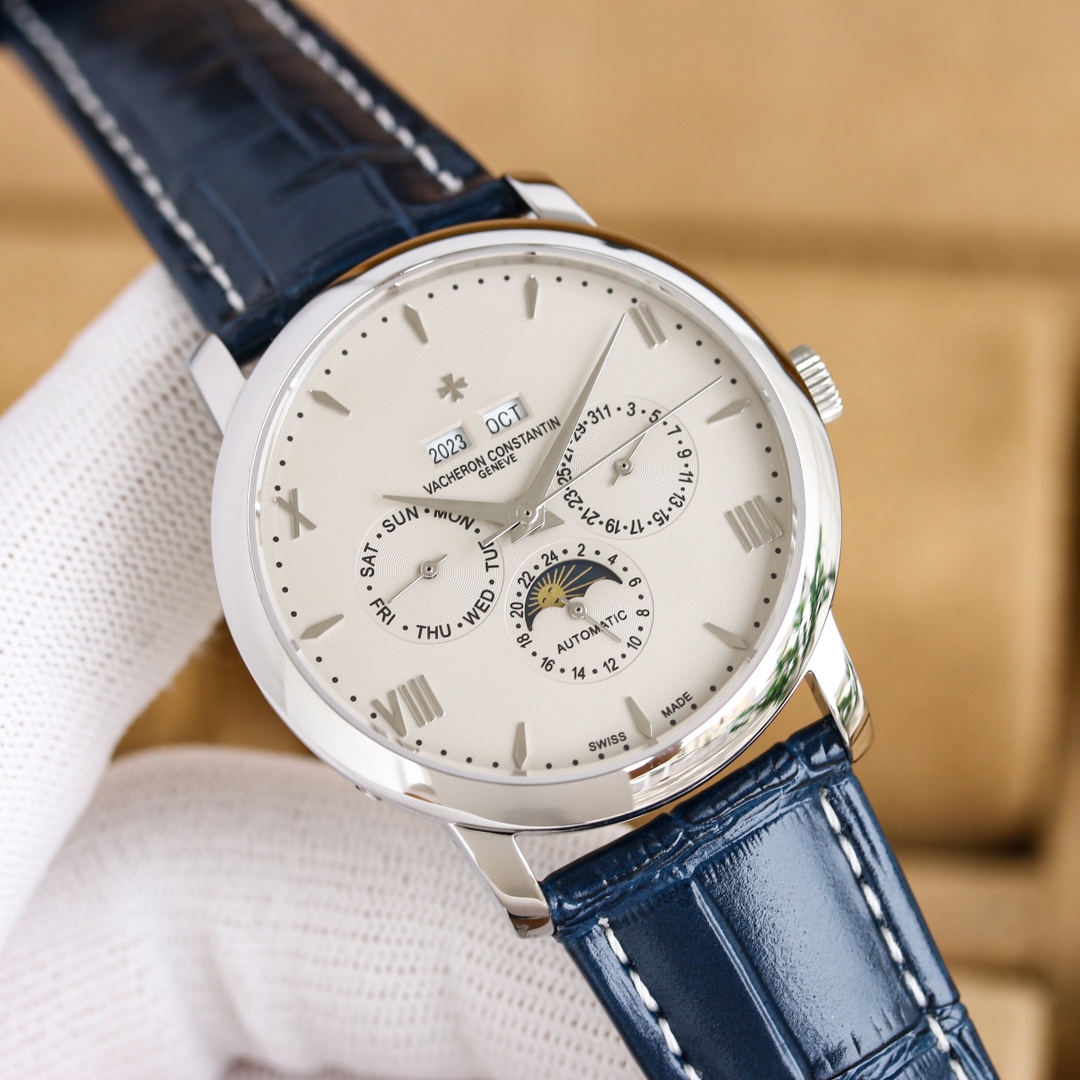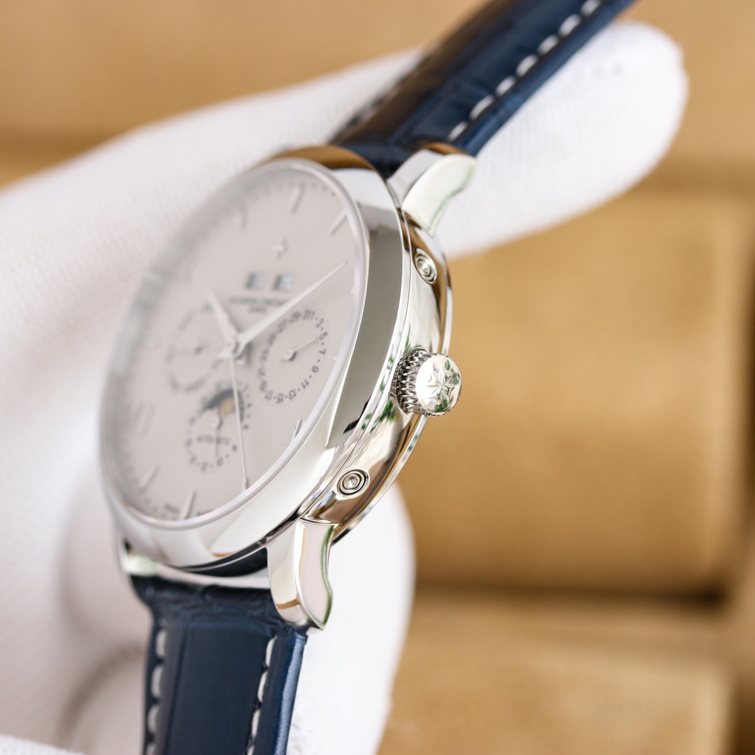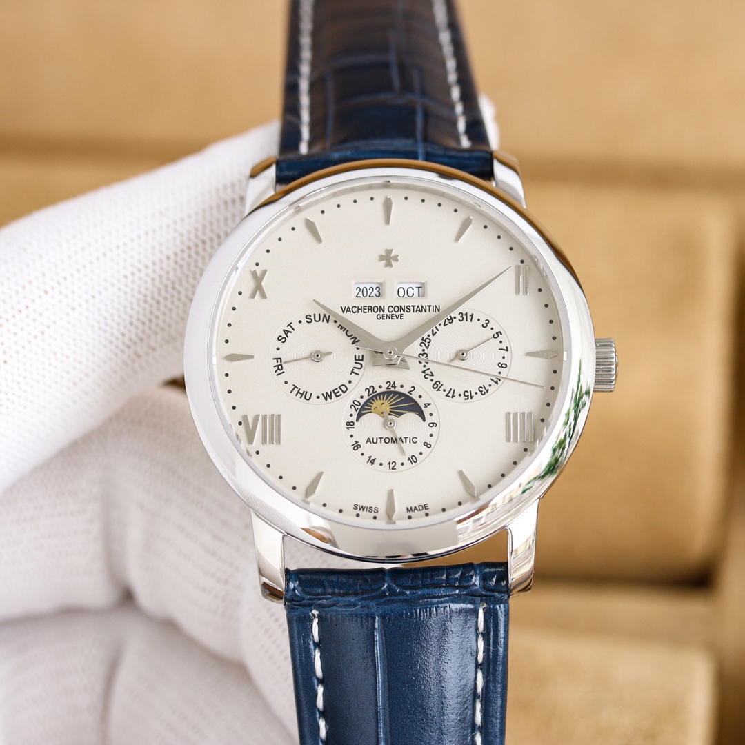 Vacheron Constantin Perpetual Calendar Multi-Function Watch, with its unique round case, its pure lines and beautifully balanced proportions make it a timeless formal watch! All functions can be used normally, and the Italian cowhide leather makes the wrist more comfortable! Fully embodies the purest tradition of fine watchmaking industry! Suitable for various business occasions, simple and refined yet elegant!