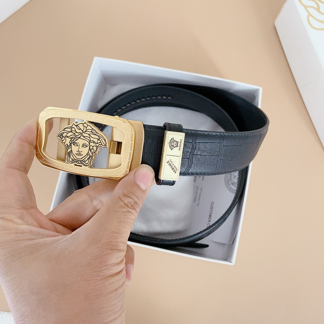Versace automatic belt with steel buckle, this Greek key embossed belt is equipped with an eye-catching Medusa head buckle, which can add some three-dimensional elegance to any look. cm width D