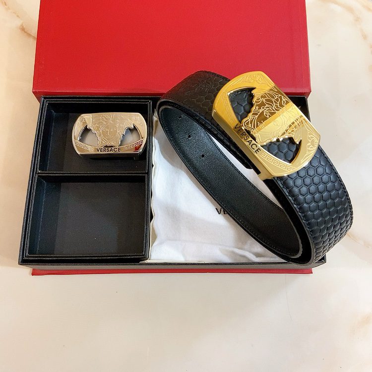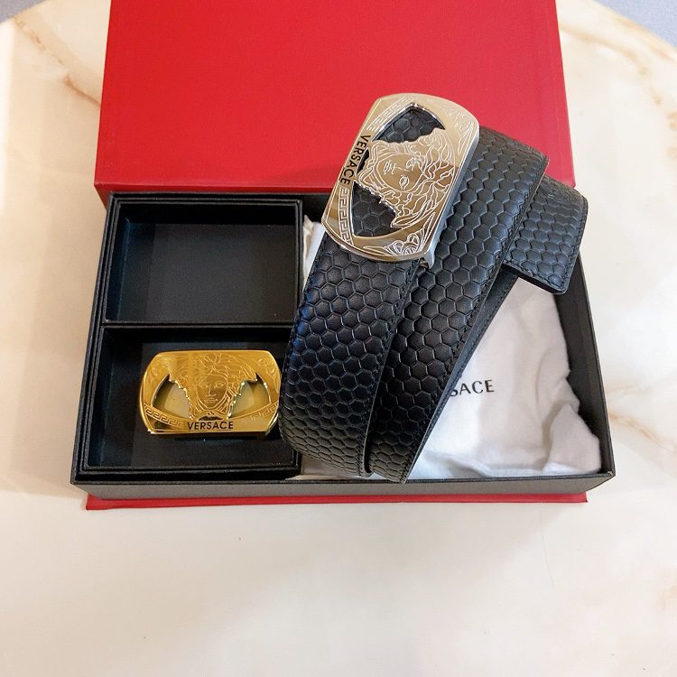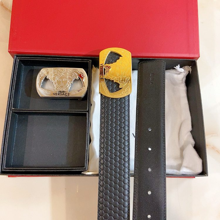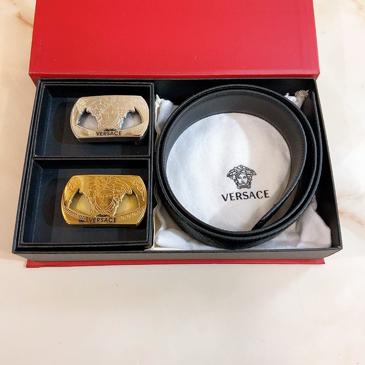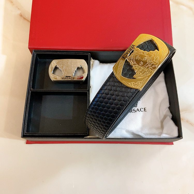 Belt Versace double buckle, high-end original single belt, available at European counters, double-sided Italian imported first-layer cowhide 3.