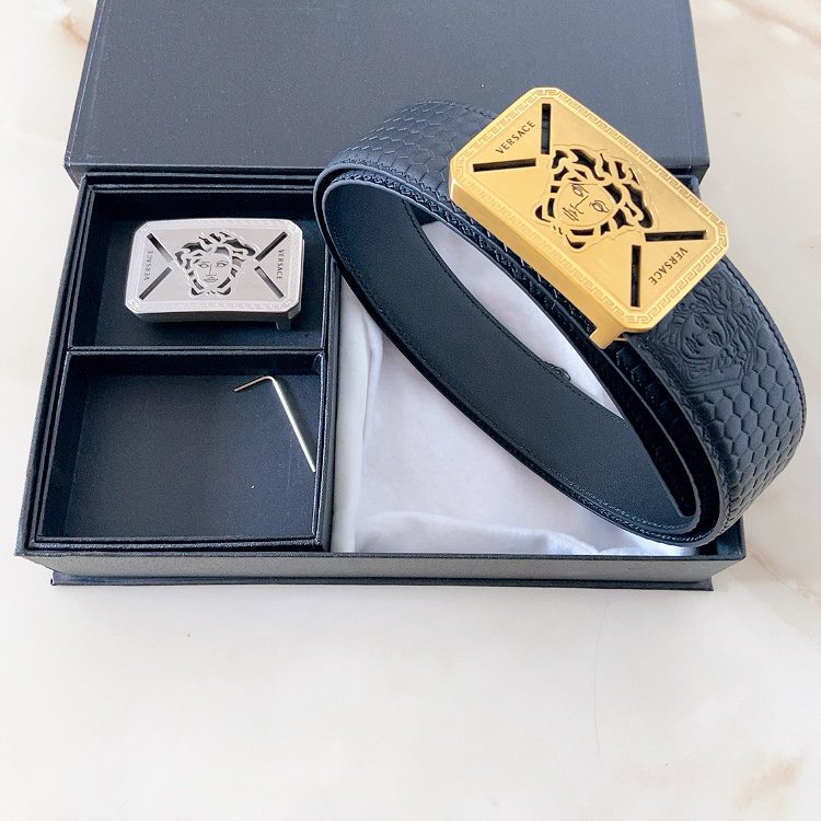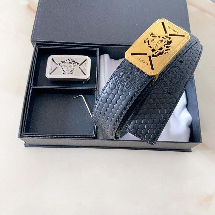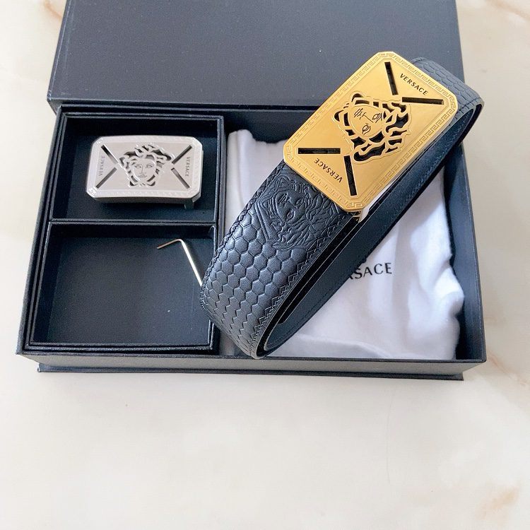 Belt Versace double buckle, high-end original single belt, available at European counters, double-sided Italian imported first-layer cowhide 3.