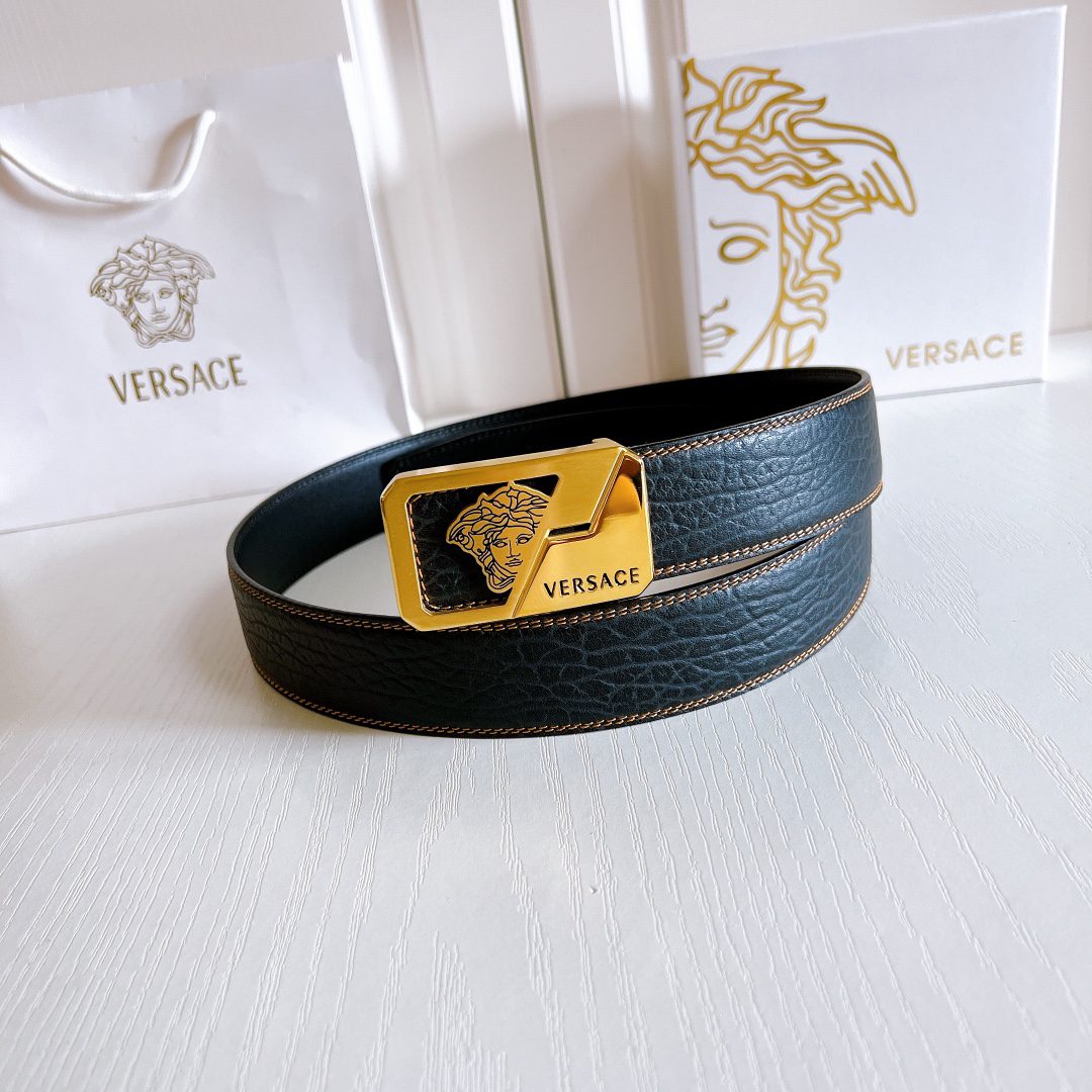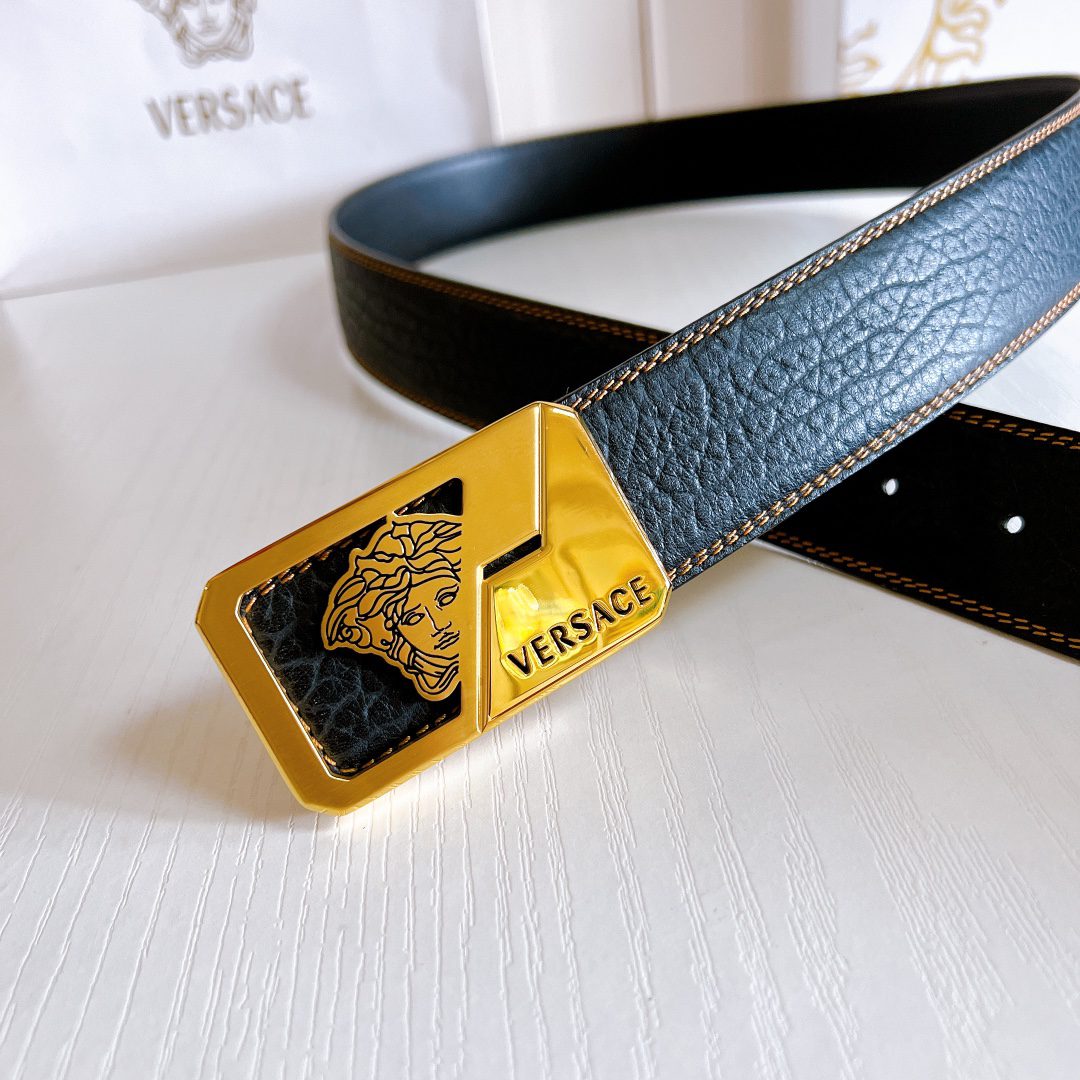 Home Belt Belt Versace steel buckle double yellow line elephant pattern leather, high-end original single belt, available at European counters, double-sided imported from Italy