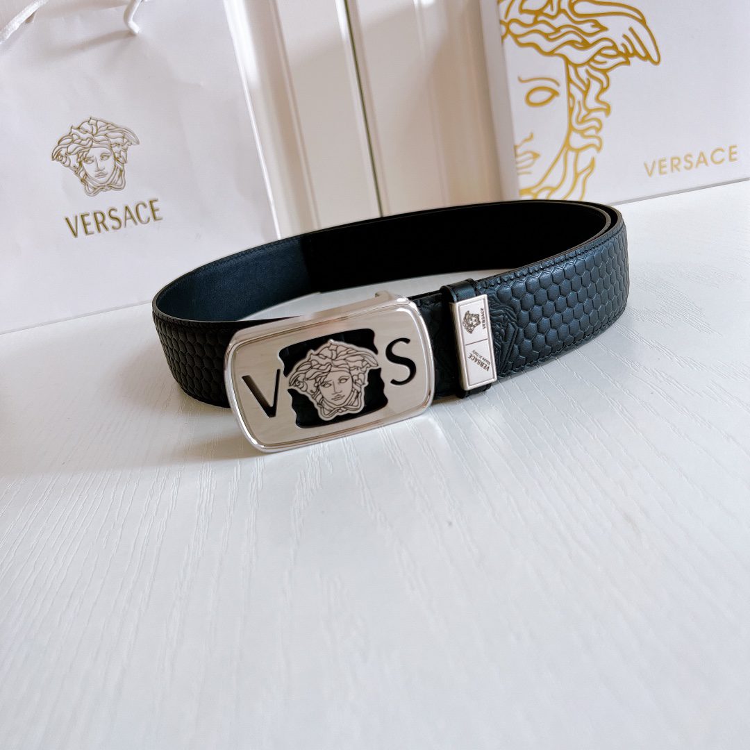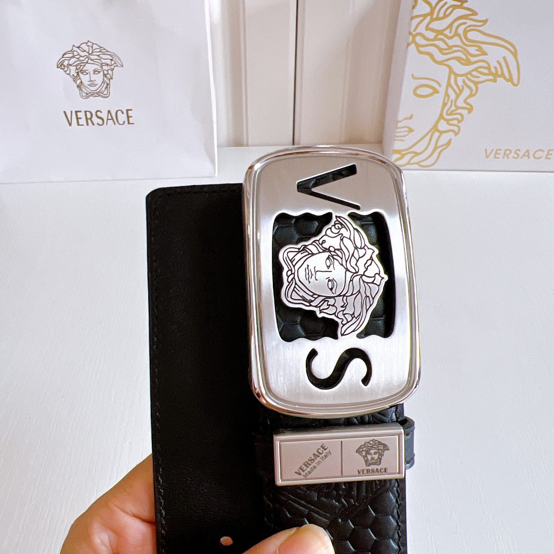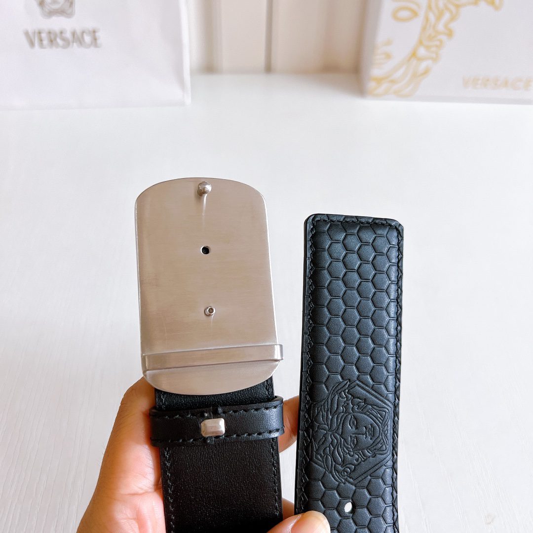 Home Belt Belt Versace steel buckle double yellow line elephant pattern leather, high-end original single belt, available at European counters, double-sided imported from Italy