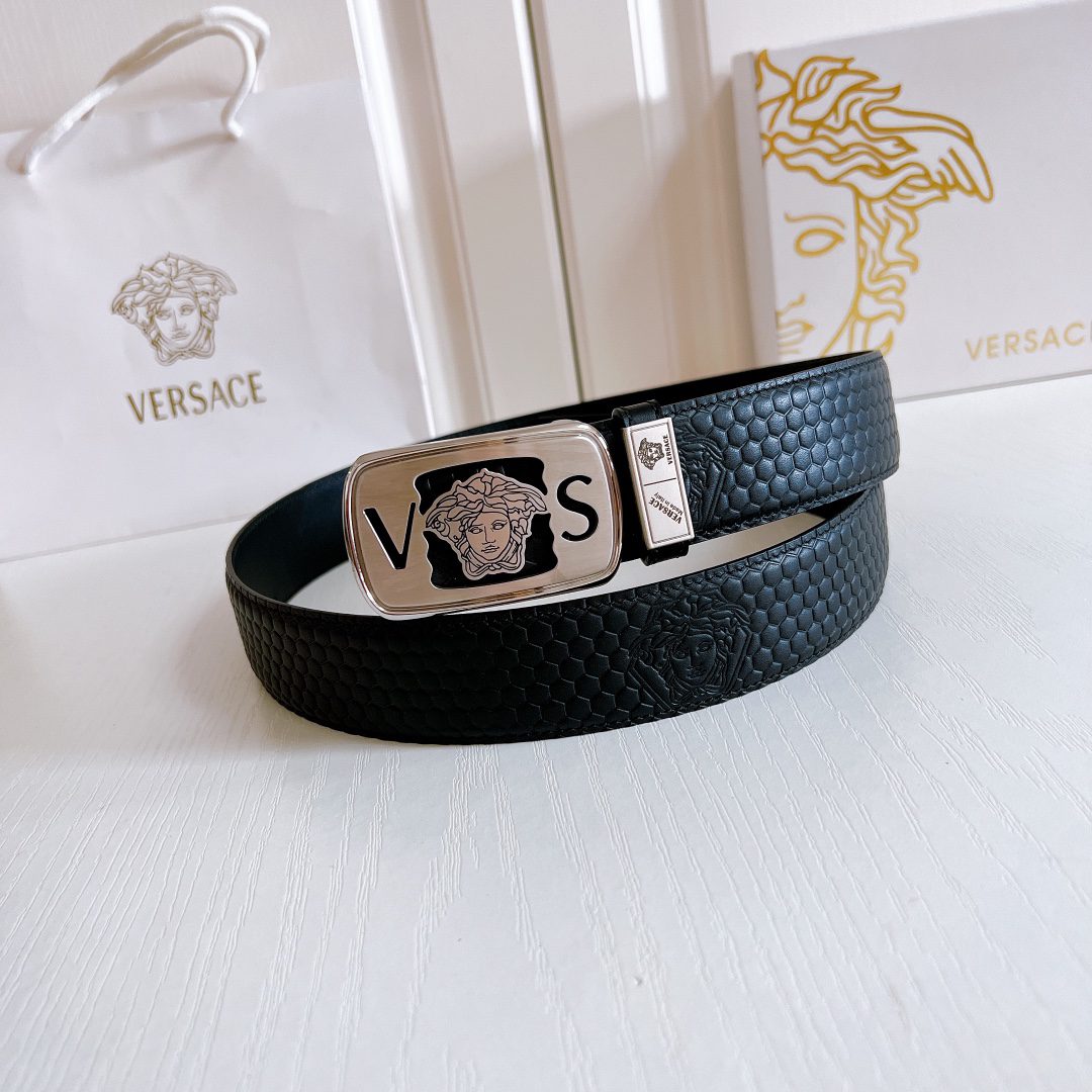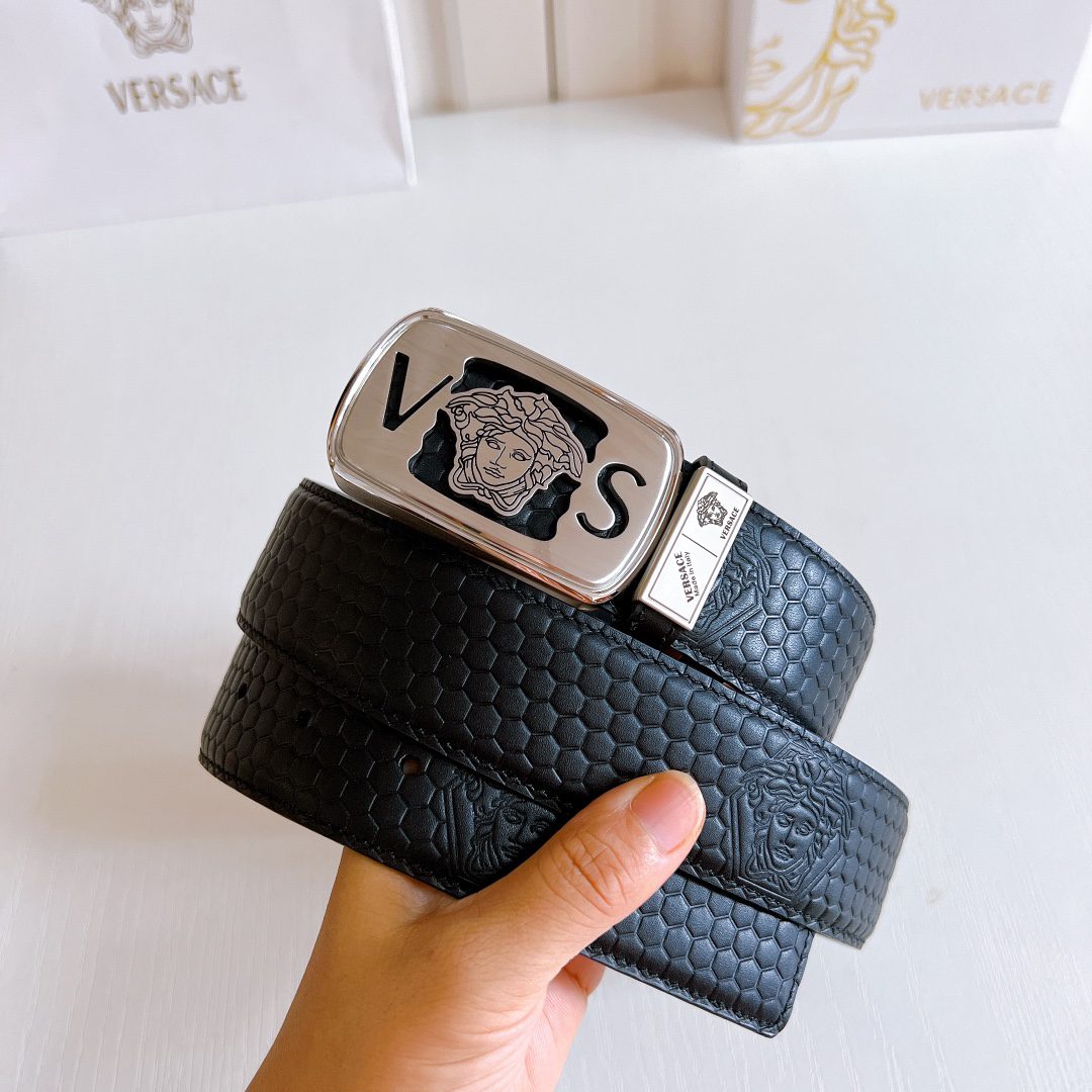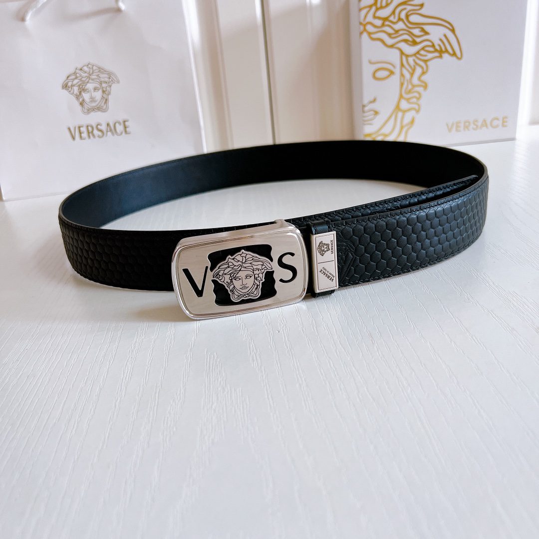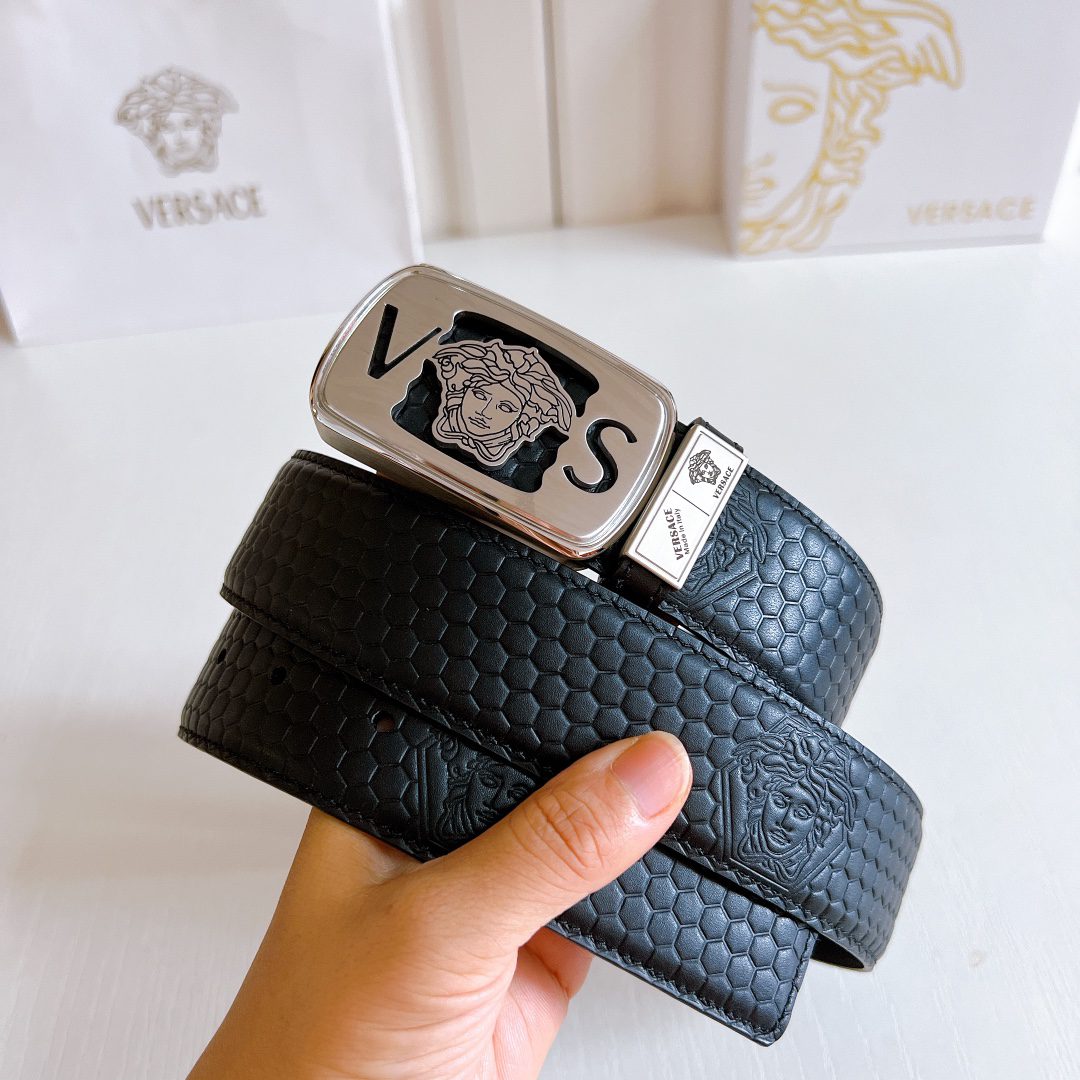 Home Belt Belt Versace steel buckle double yellow line elephant pattern leather, high-end original single belt, available at European counters, double-sided imported from Italy
